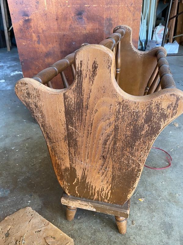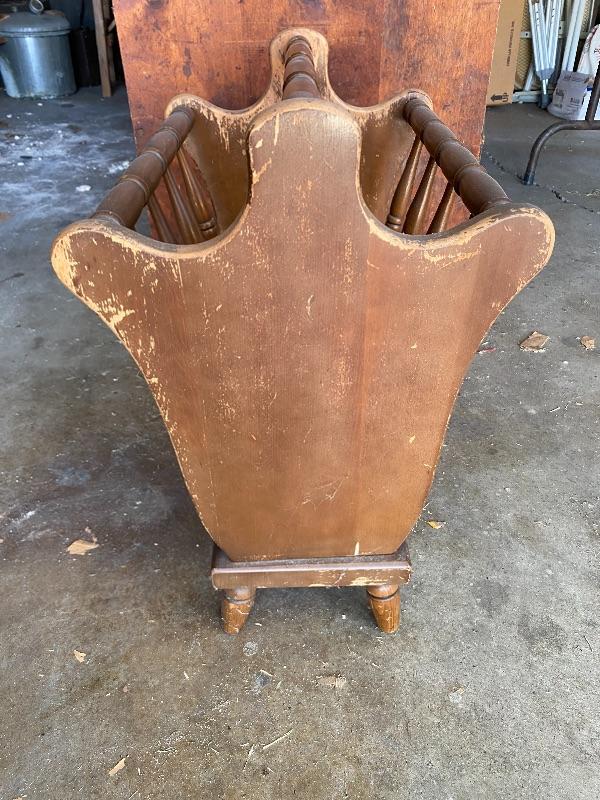 Vintage wood magazine & newspaper holder rack from Authentic Furniture Products. Sturdy rack, just needs fresh paint.