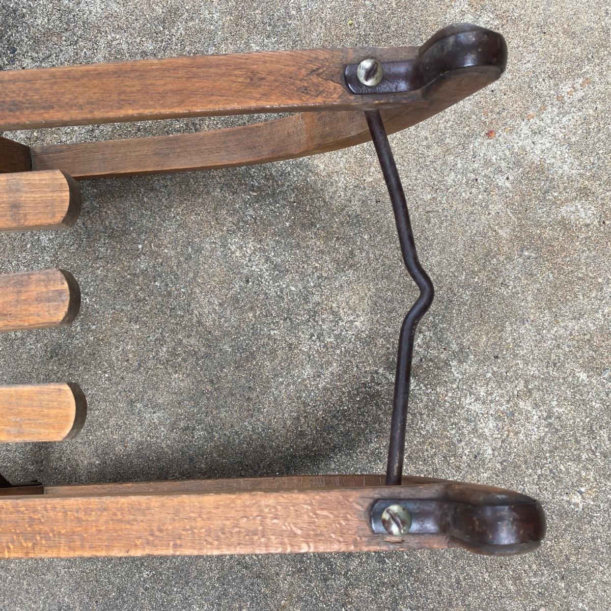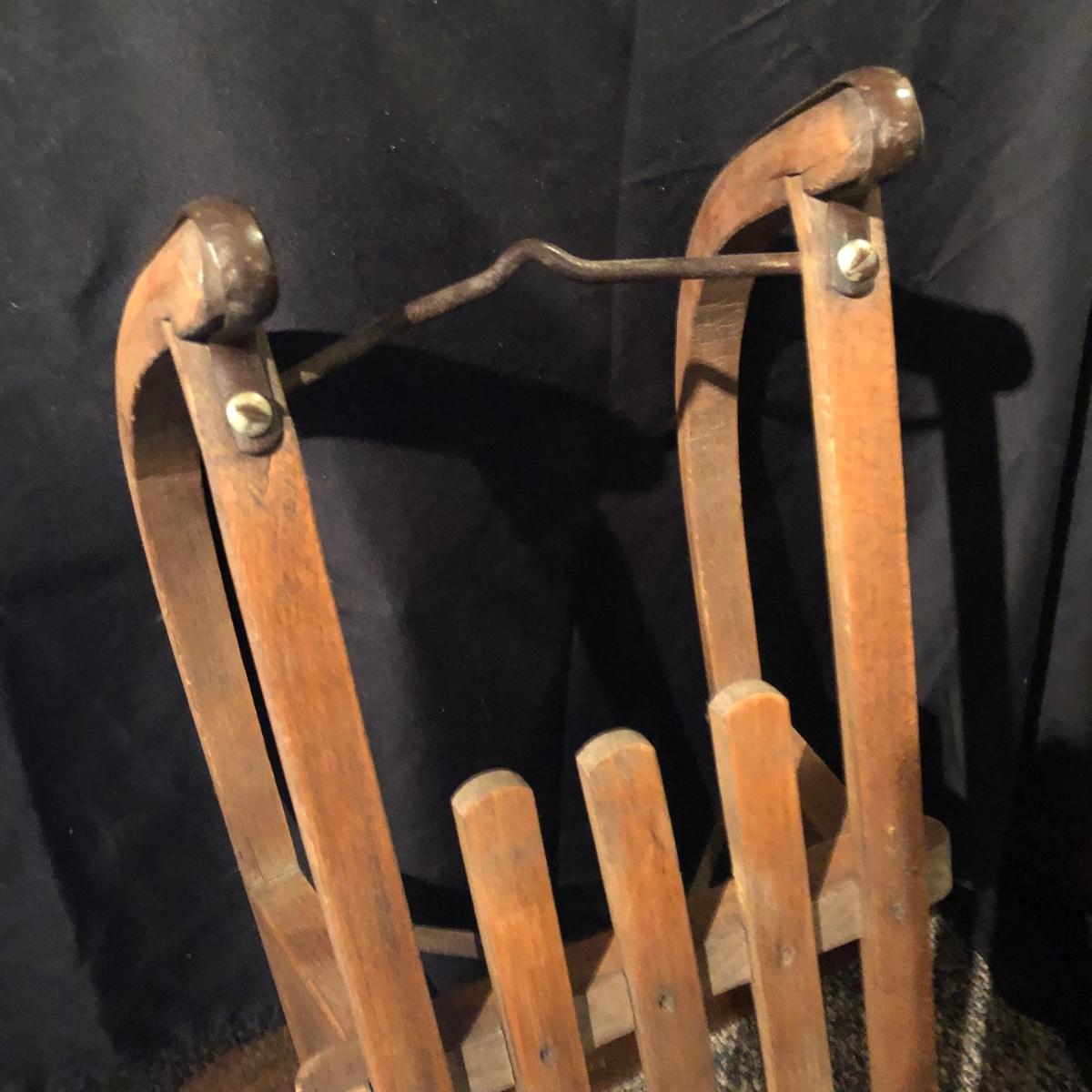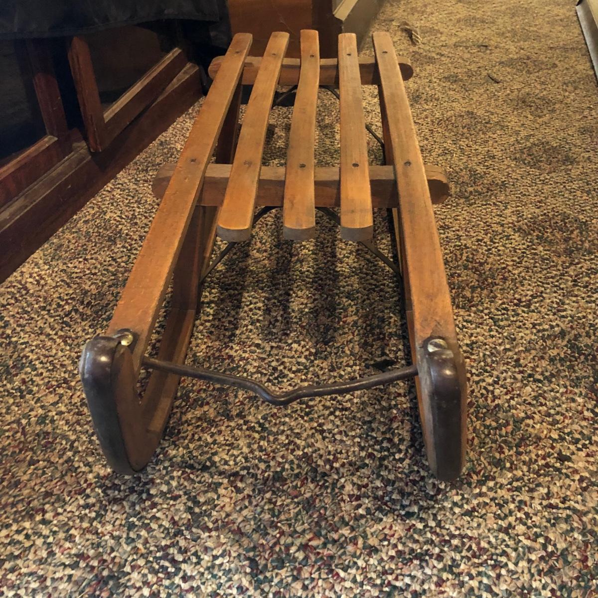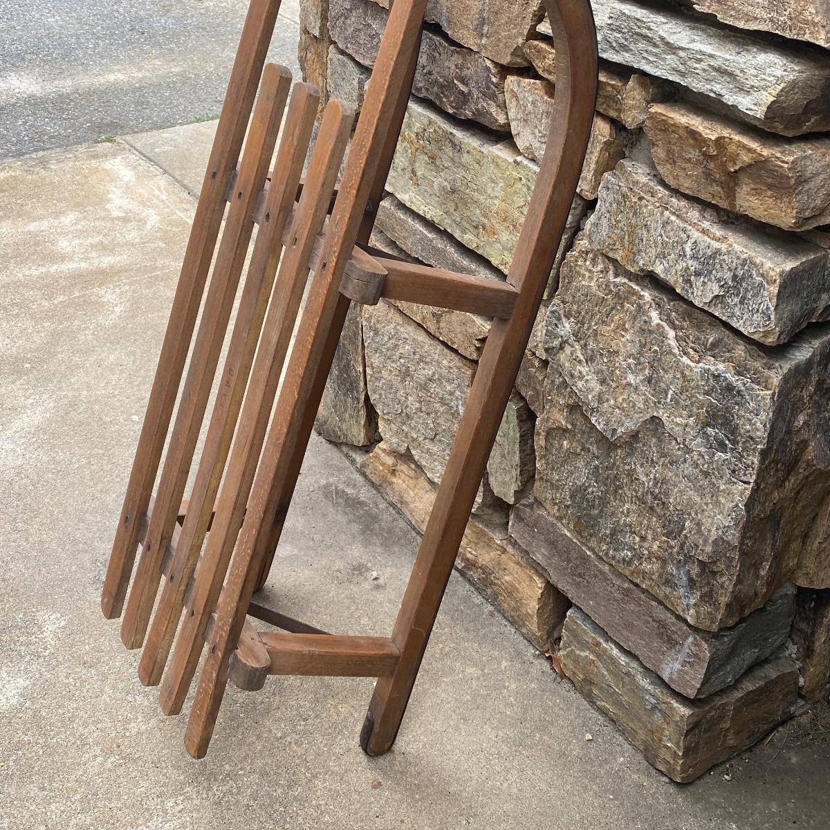 This sled is all wood with metal on the runners and metal braces underneath. In great condition. It is stamped Davos on the wood. It measures 35.5” x 11” x 9.5”. Local pick up only.