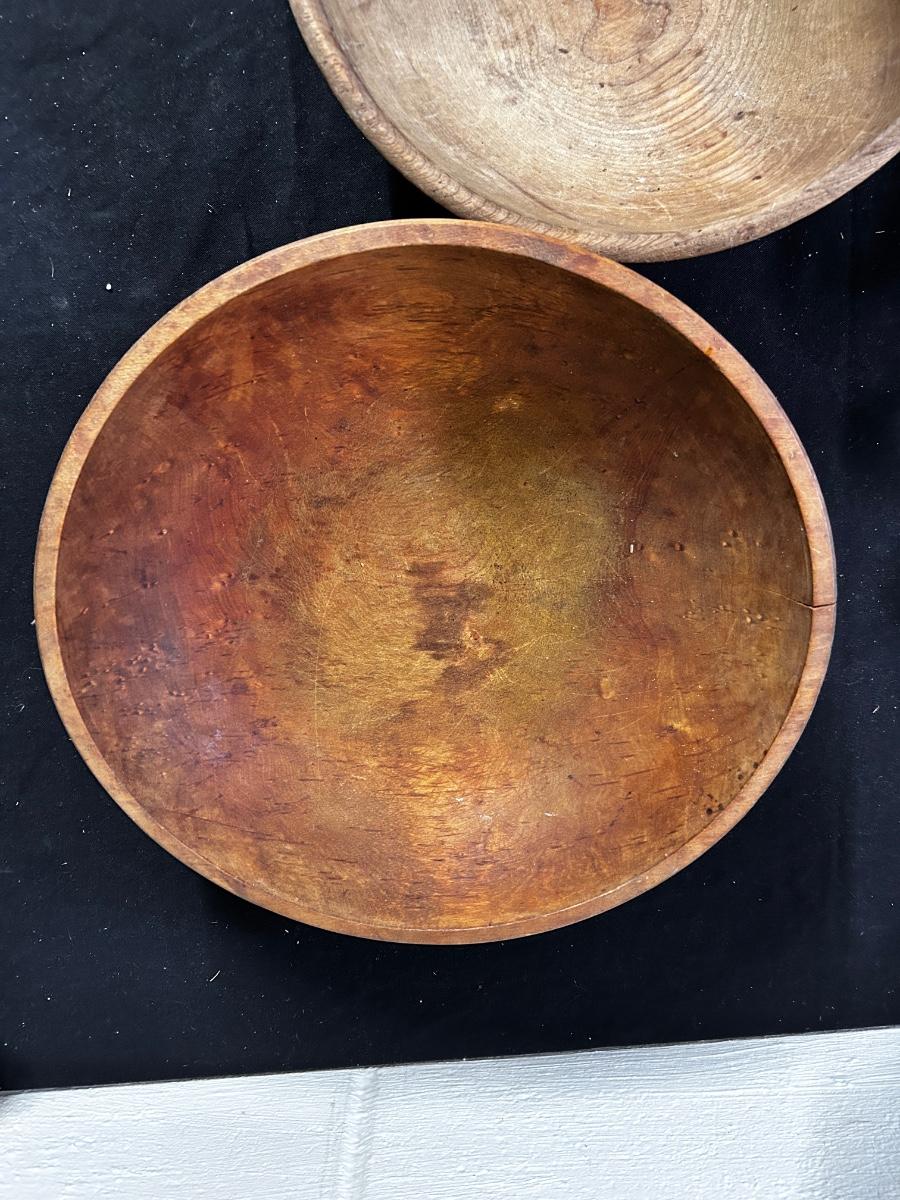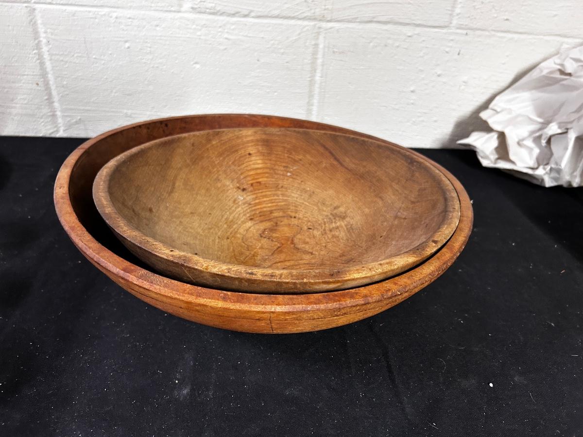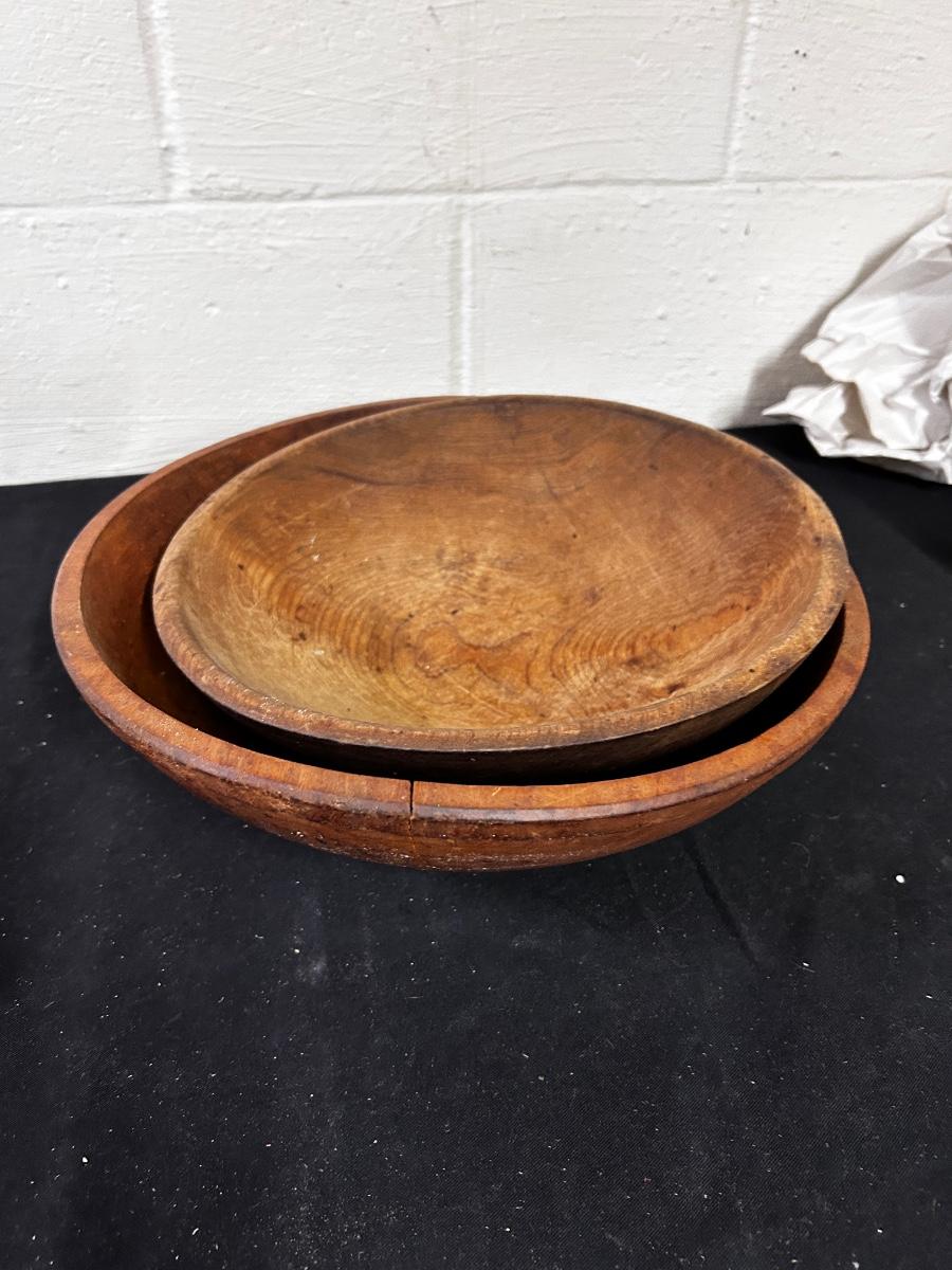 Primitive Wooden Dough Mixing Bowl Hand Turned 12" & 14" Large Vintage