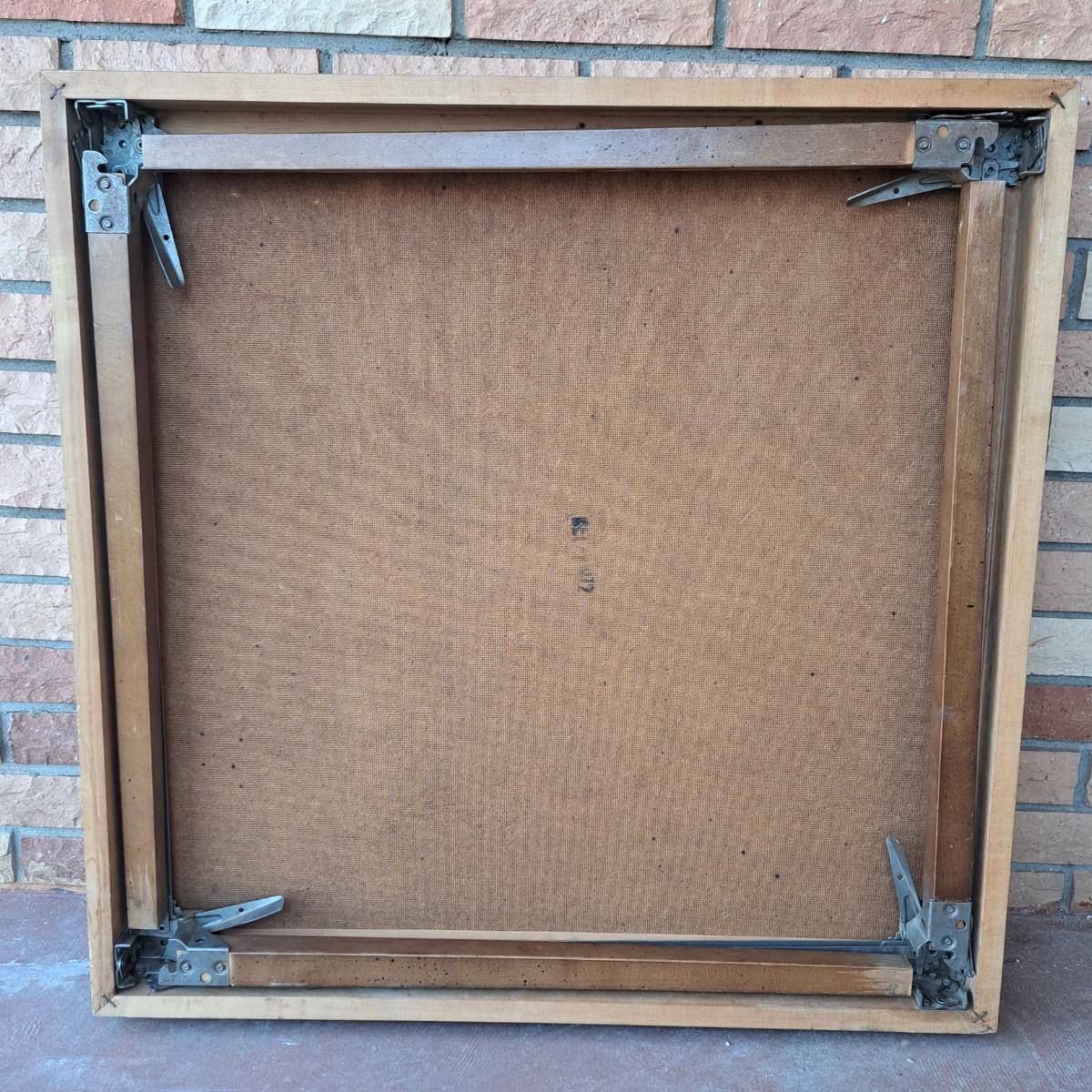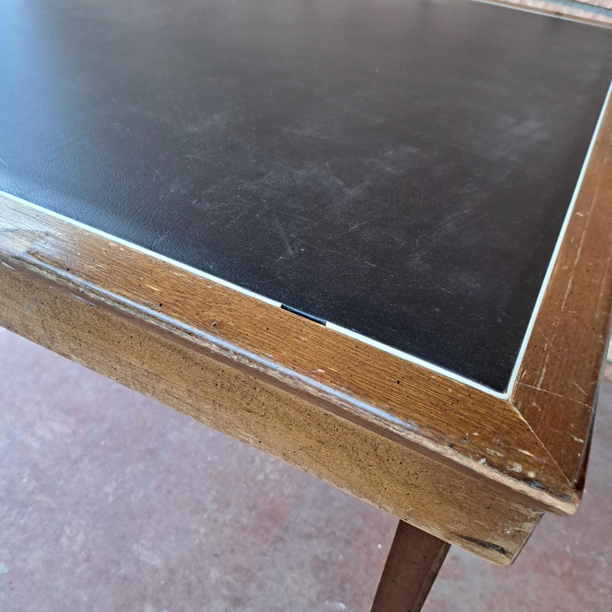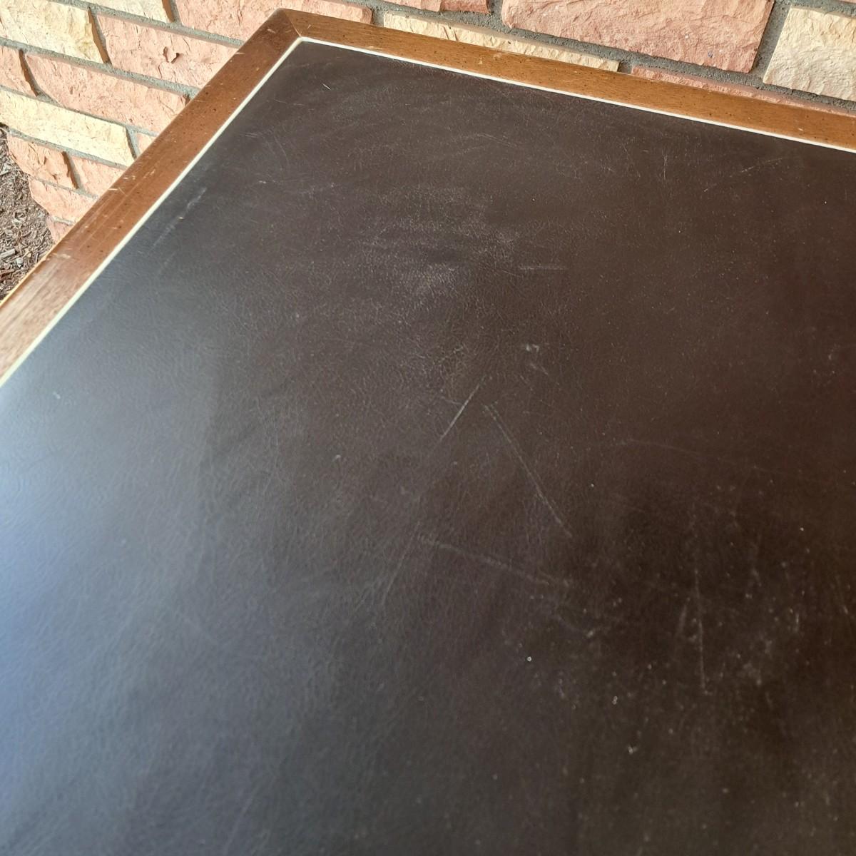 Very nice, substantial vintage card table, 32" x 32" x 27"H. Wooden frame and collapsible legs with metal toggles. It has a black naugahyde (vinyl) top. Edges of table and leg bottoms have some scuffs due to age. Easy fold up/out with a pull on one of the four metal toggles in each corner! Please see photos for details. Local pickup only.