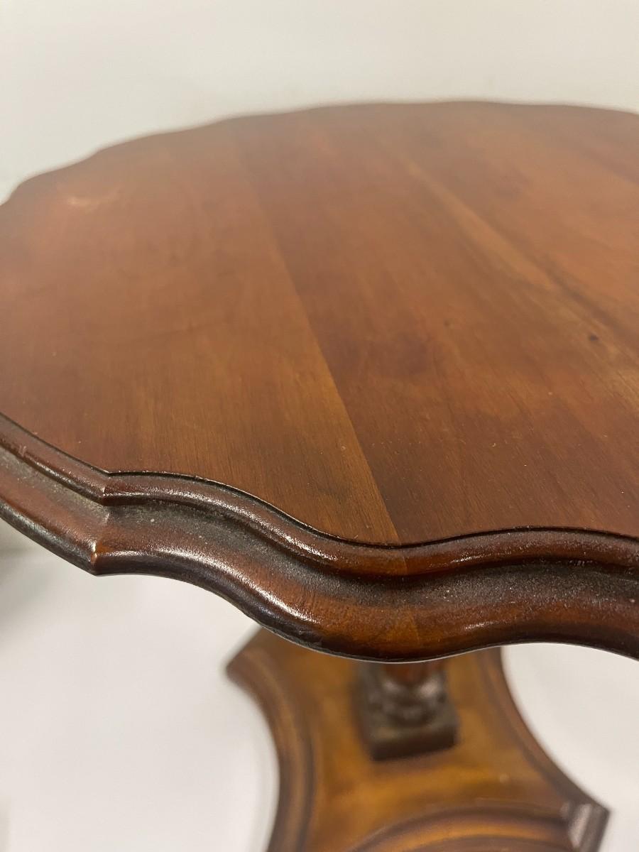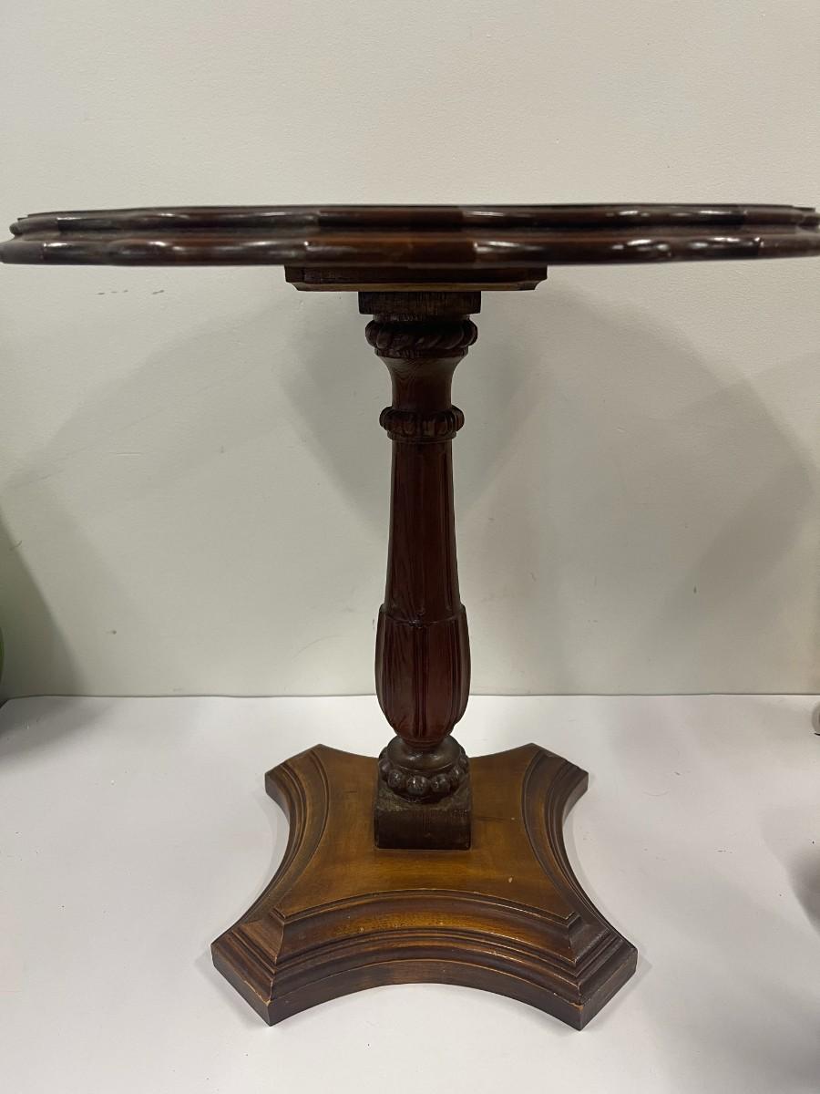 Vintage wood pedestal accent table. Excellent condition. 17" diameter x 18" high.