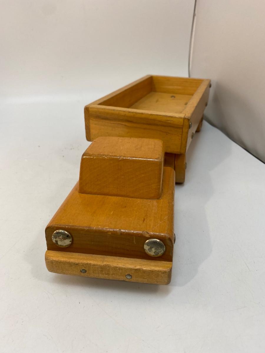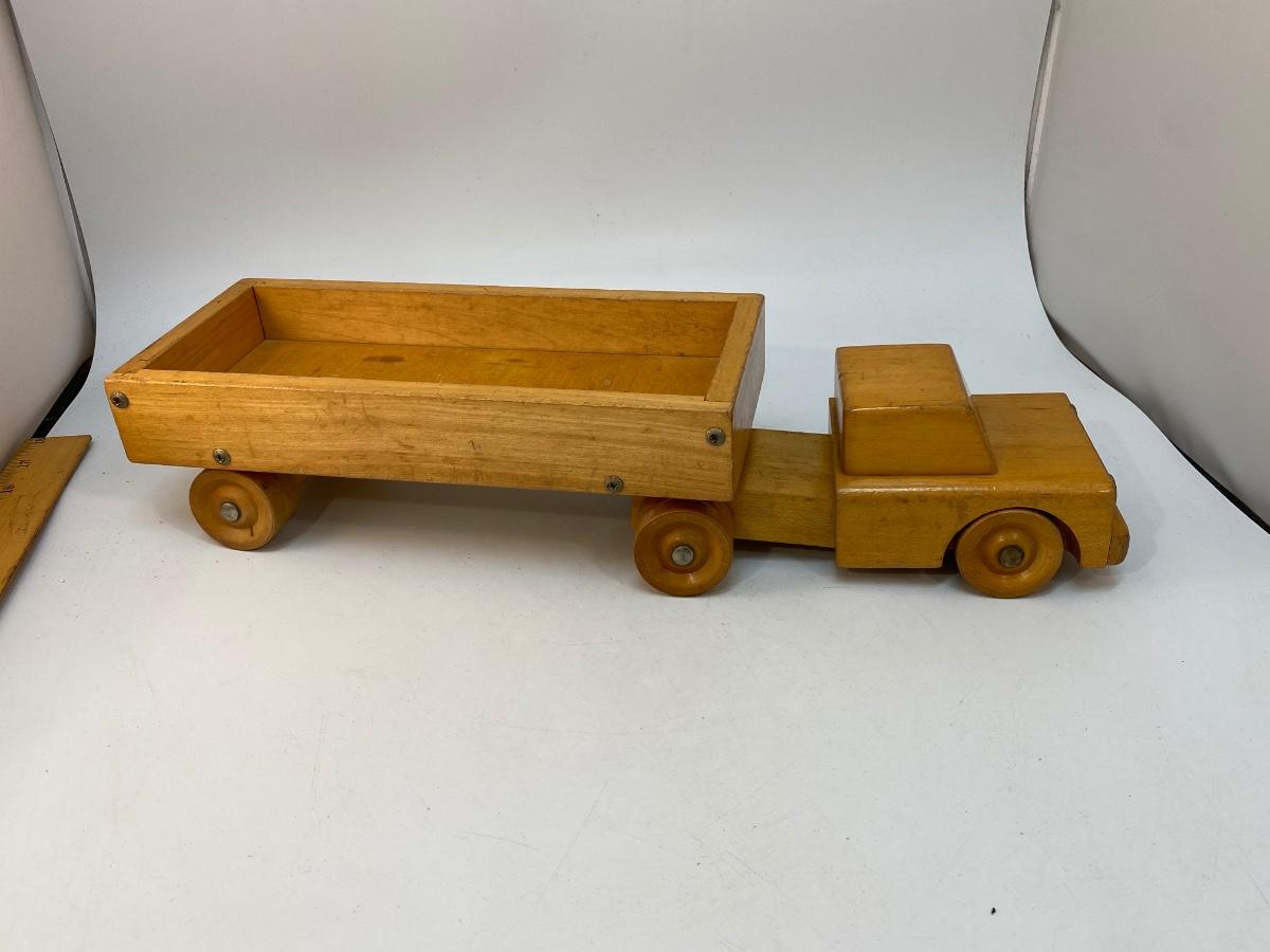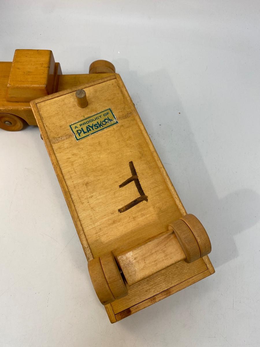 Vintage Wood Playskool Truck & Trailer. May have come with wood blocks originally. Other than the "F" written underneath it is in good condition.