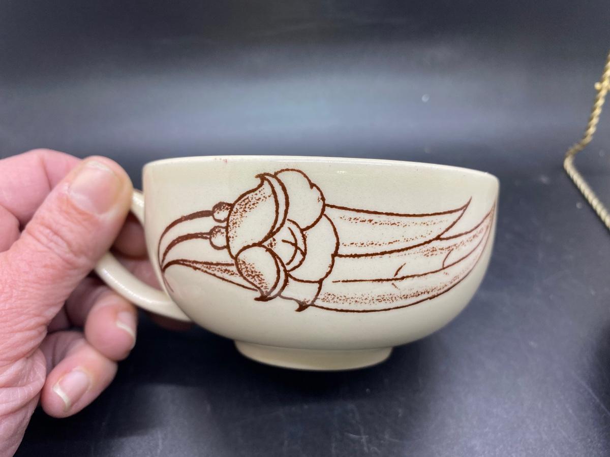 Vintage Wood Rose California Pottery Cup and Floral Pattern Ashtray