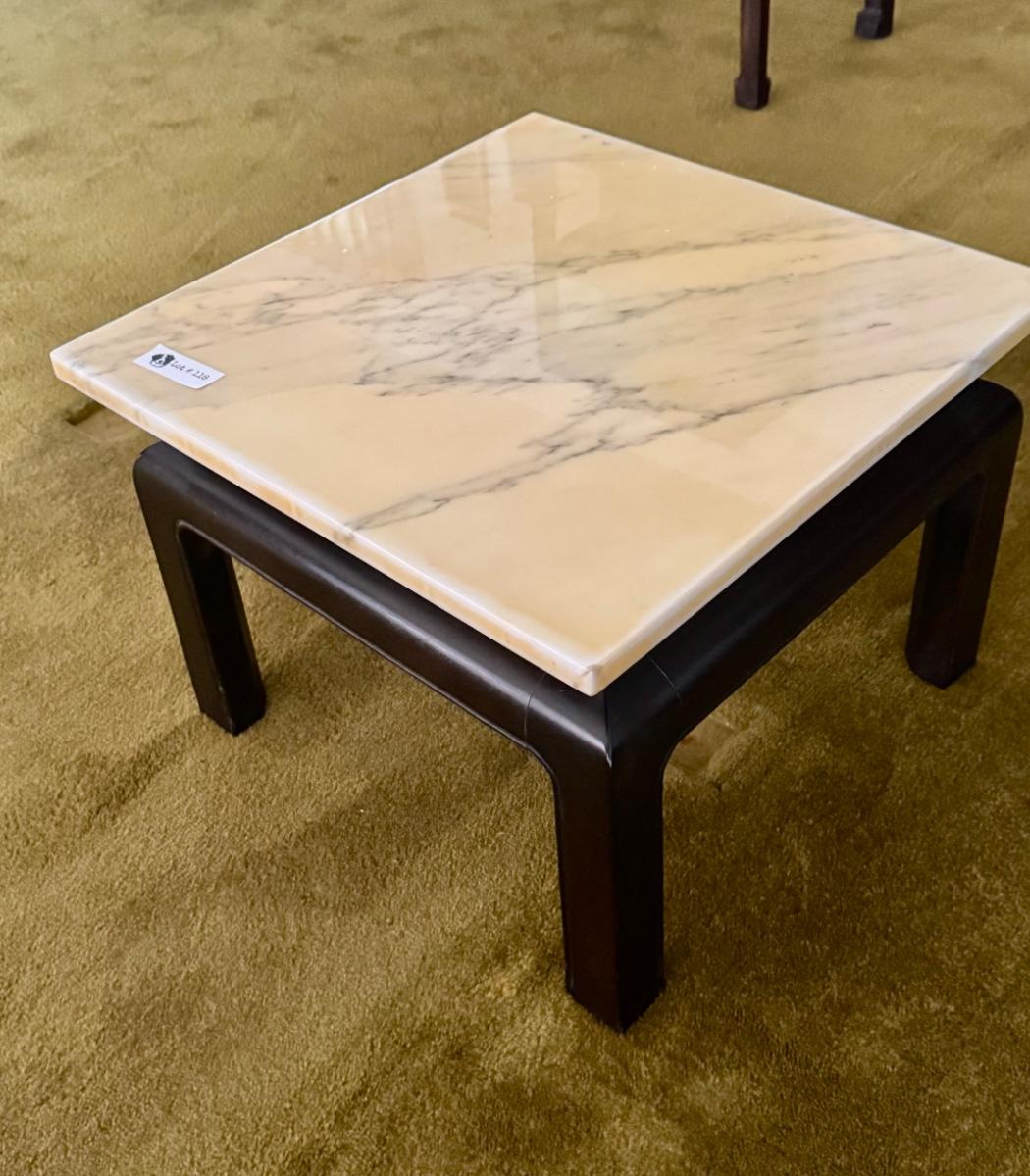 Vintage Wood Side Table with Marble Top 20" x 20"