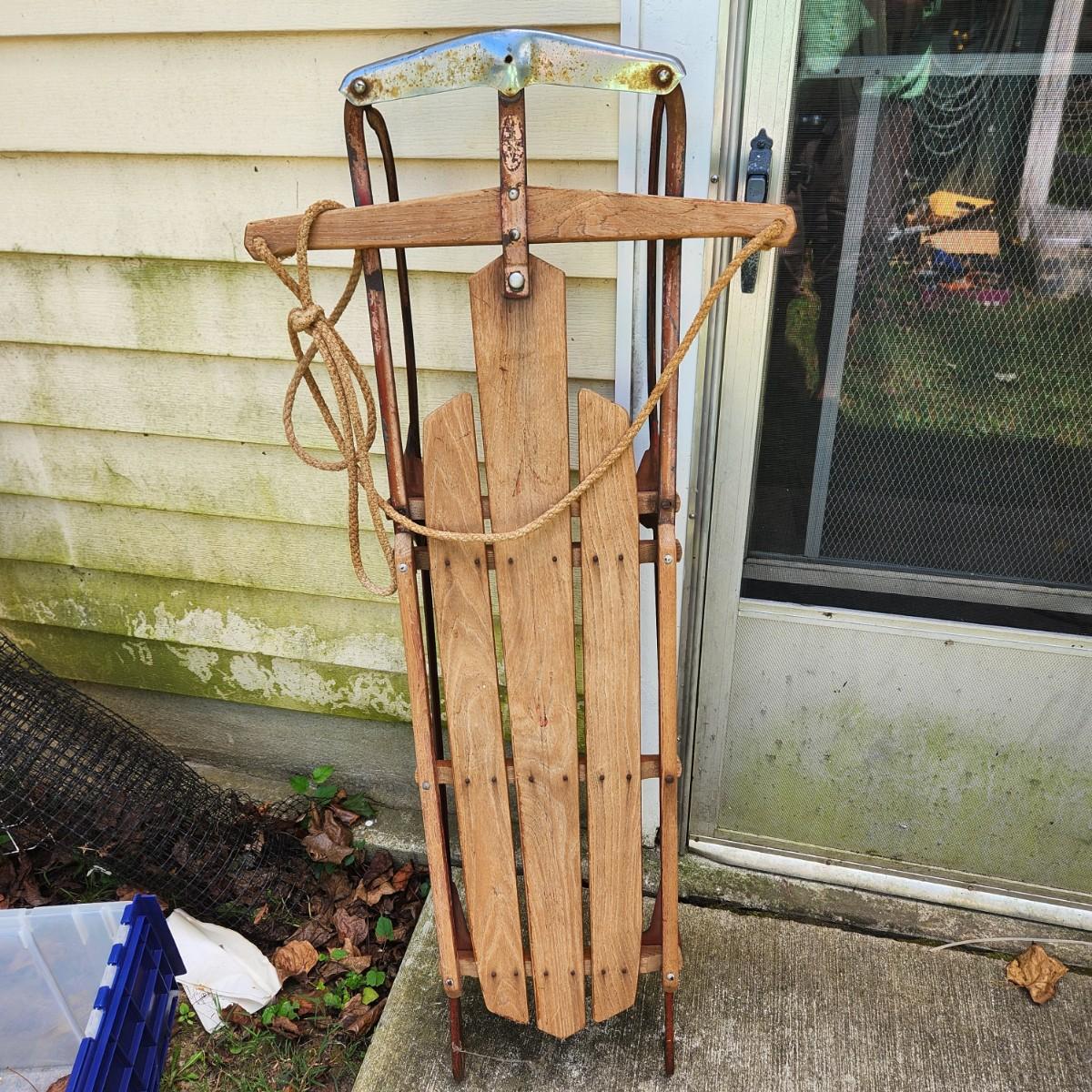 Vintage Wood Snow Sled Seasonal Fall Winter Decor