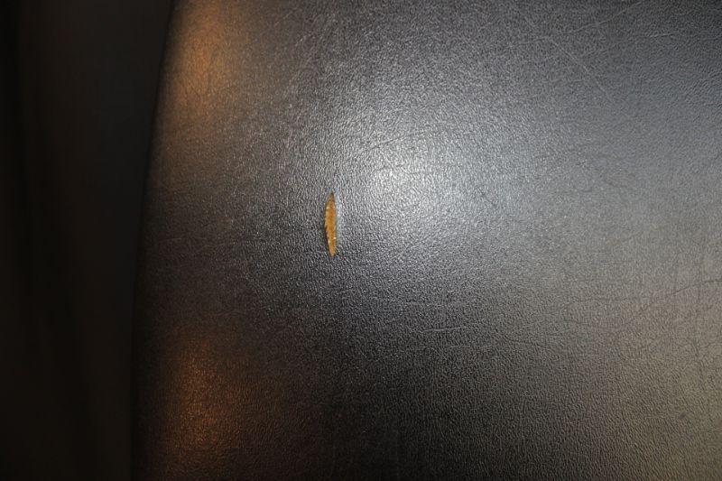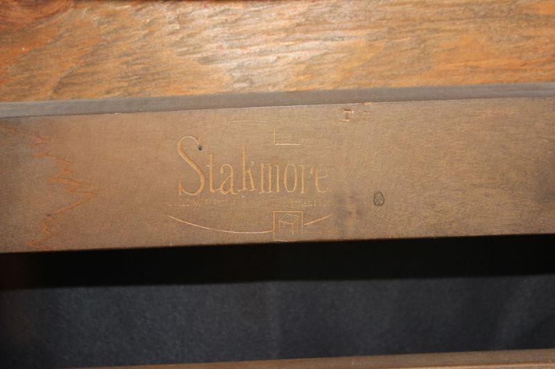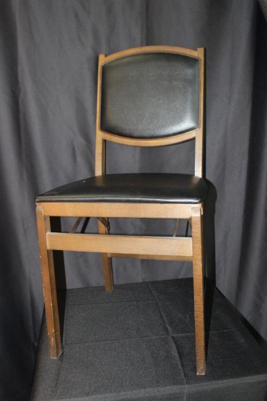 Wood Stakmore folding chair. Folds nicely, has 2 small rips in the seat.