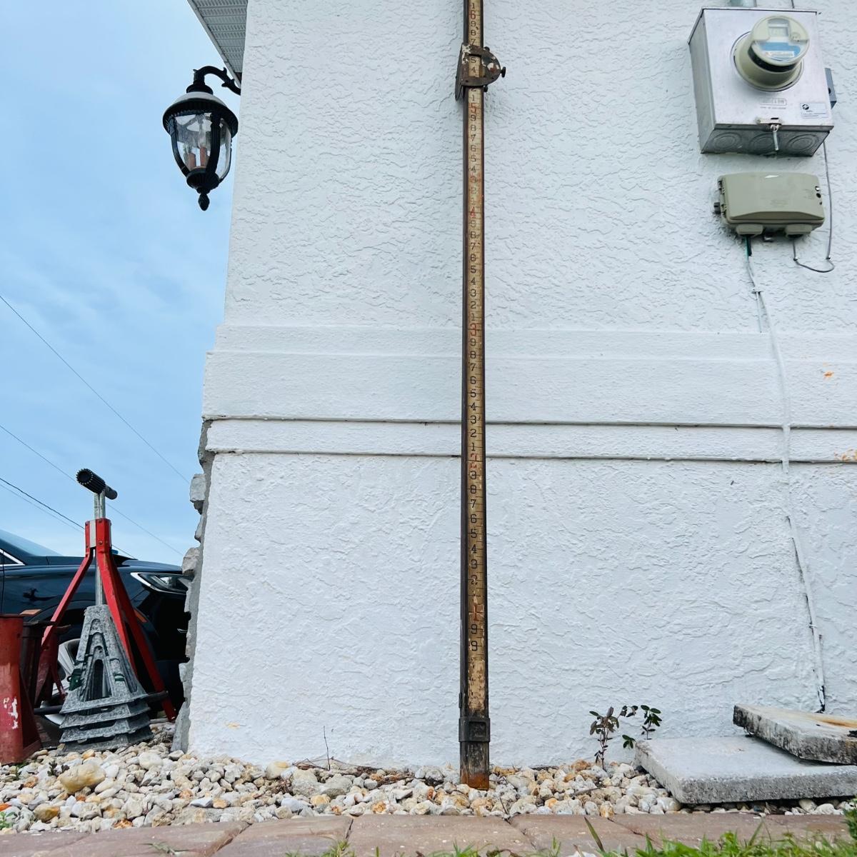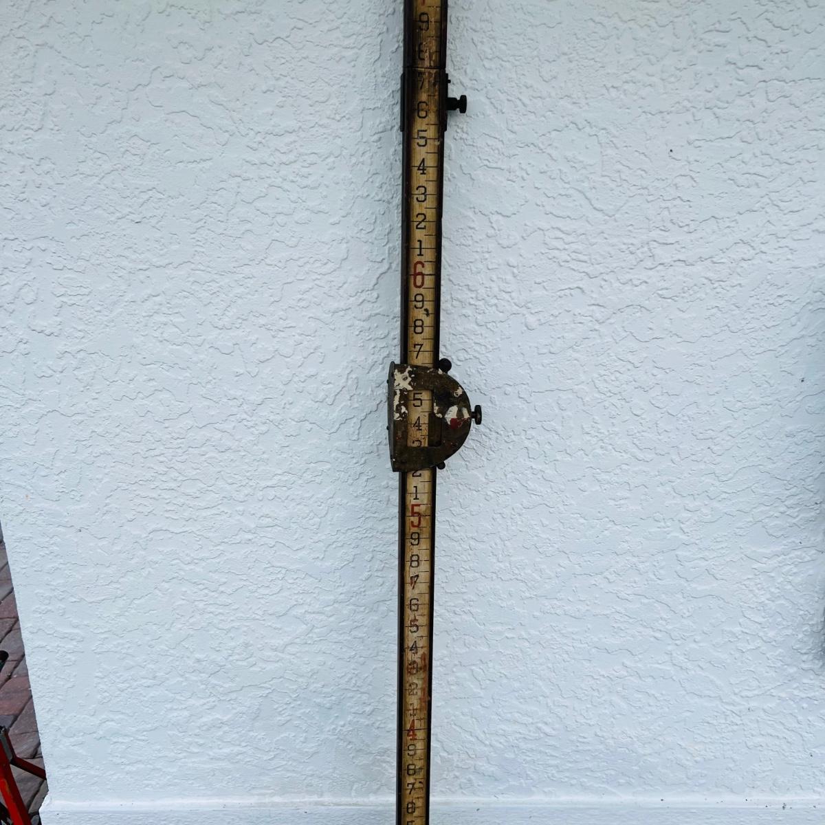 Long wood surveyor’s measuring ruler. 10’-12’L.