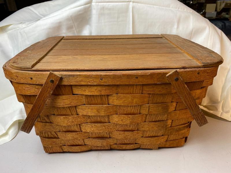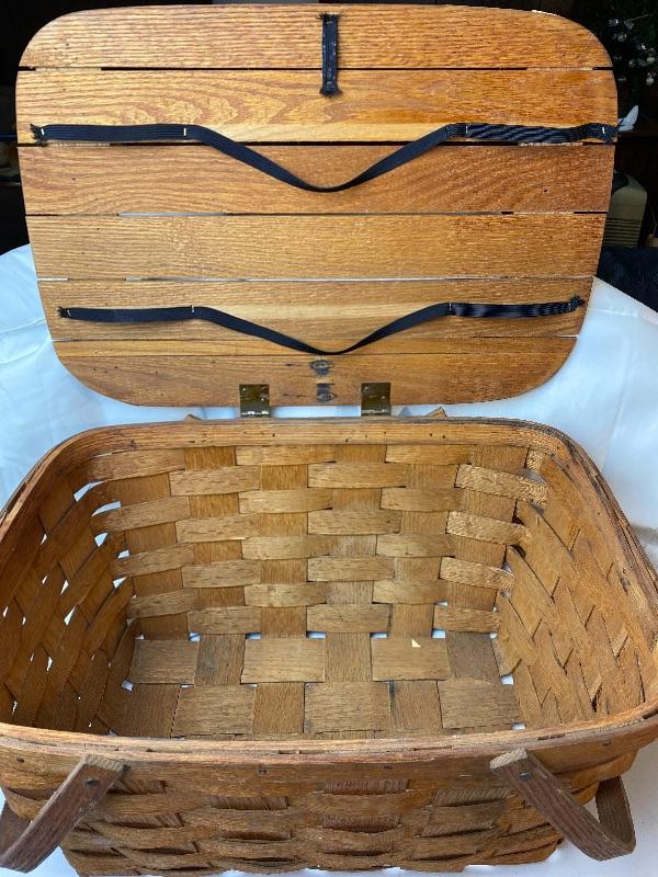 Vintage Wood Top Picnic Basket
