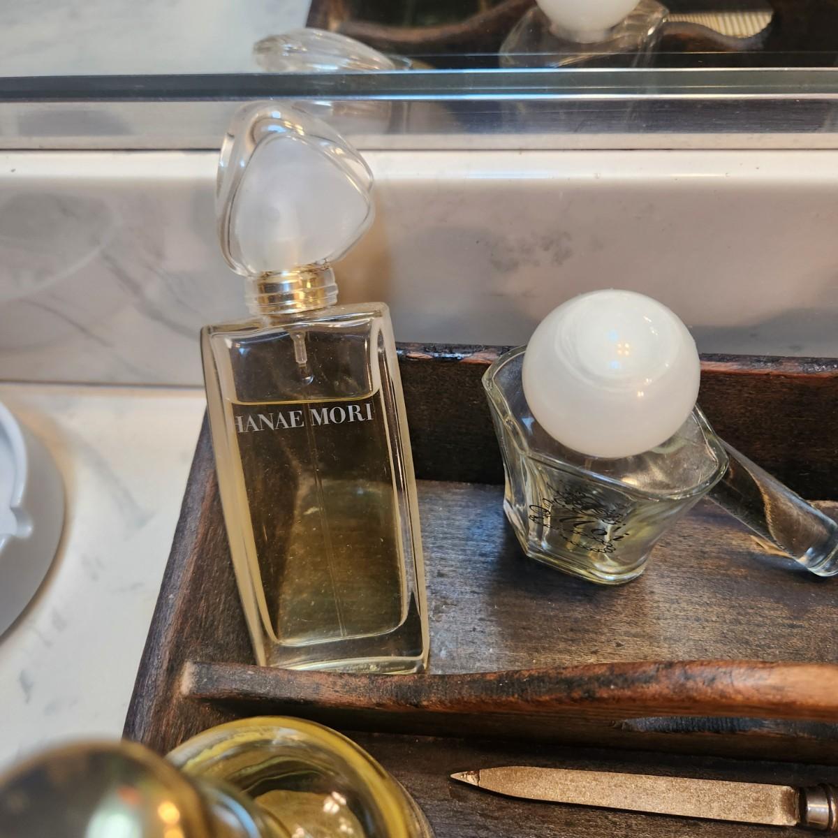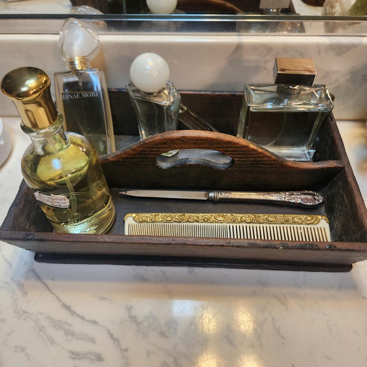 Vintage Wood Tray with Perfume Bottles Hanae Mori Ralph lauren Romance