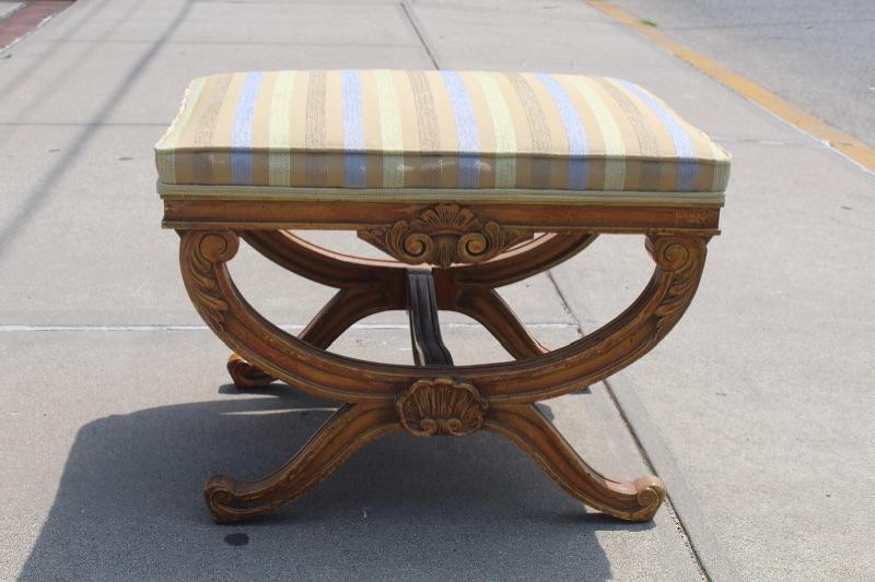 Antique Wood Upholstered Bench Seat