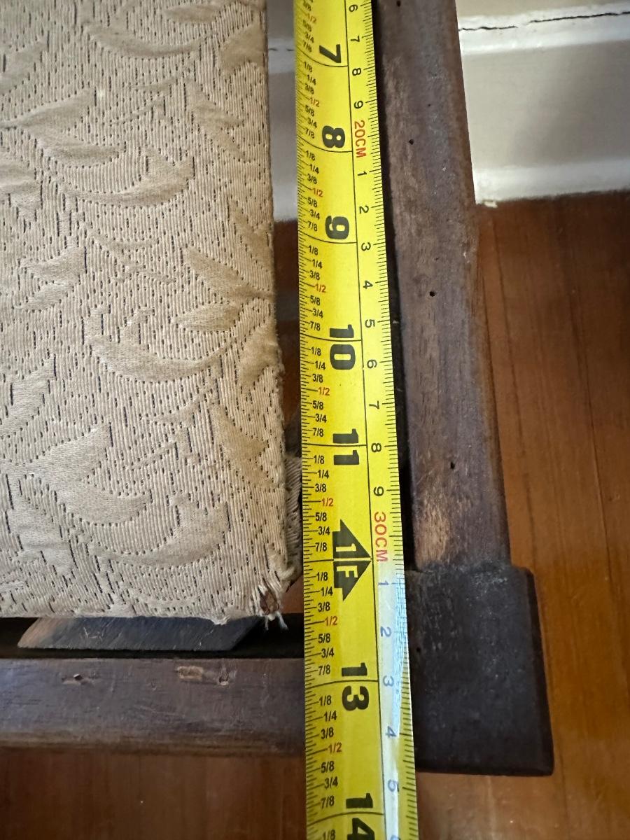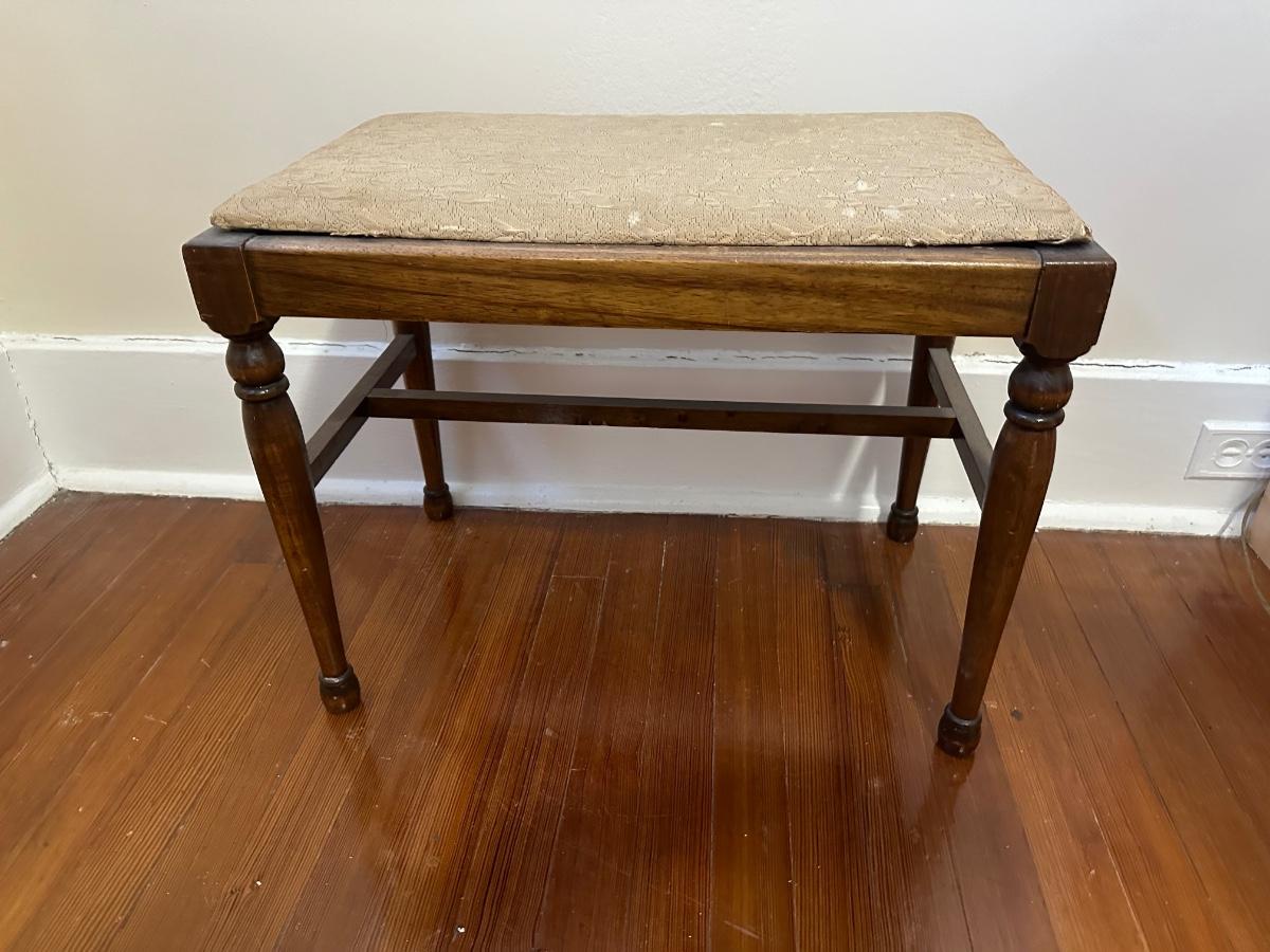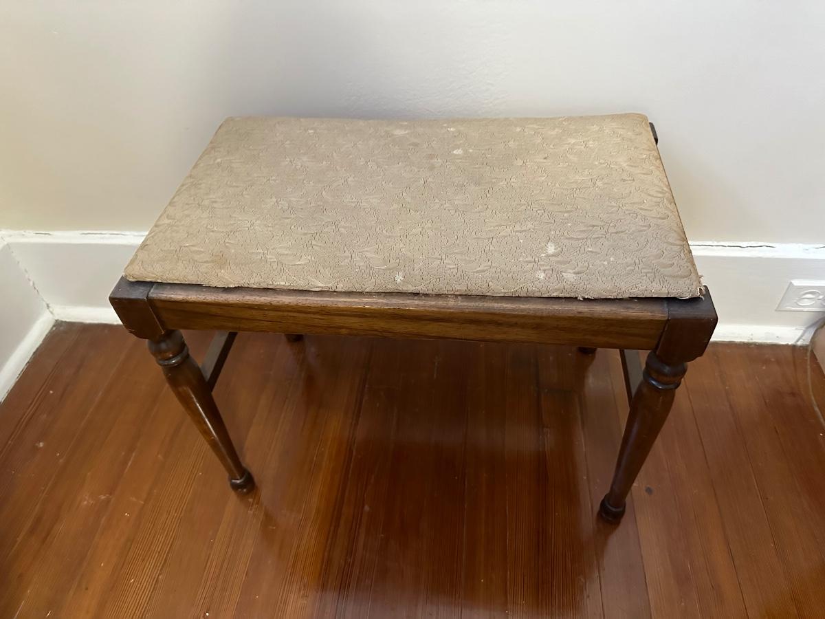 Bench top is not connected. Ready for new upholstery before connecting it. Wood is in good condition!