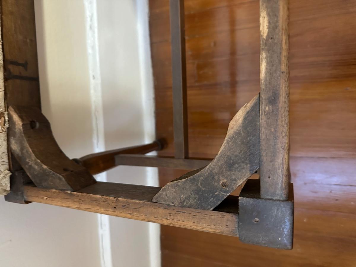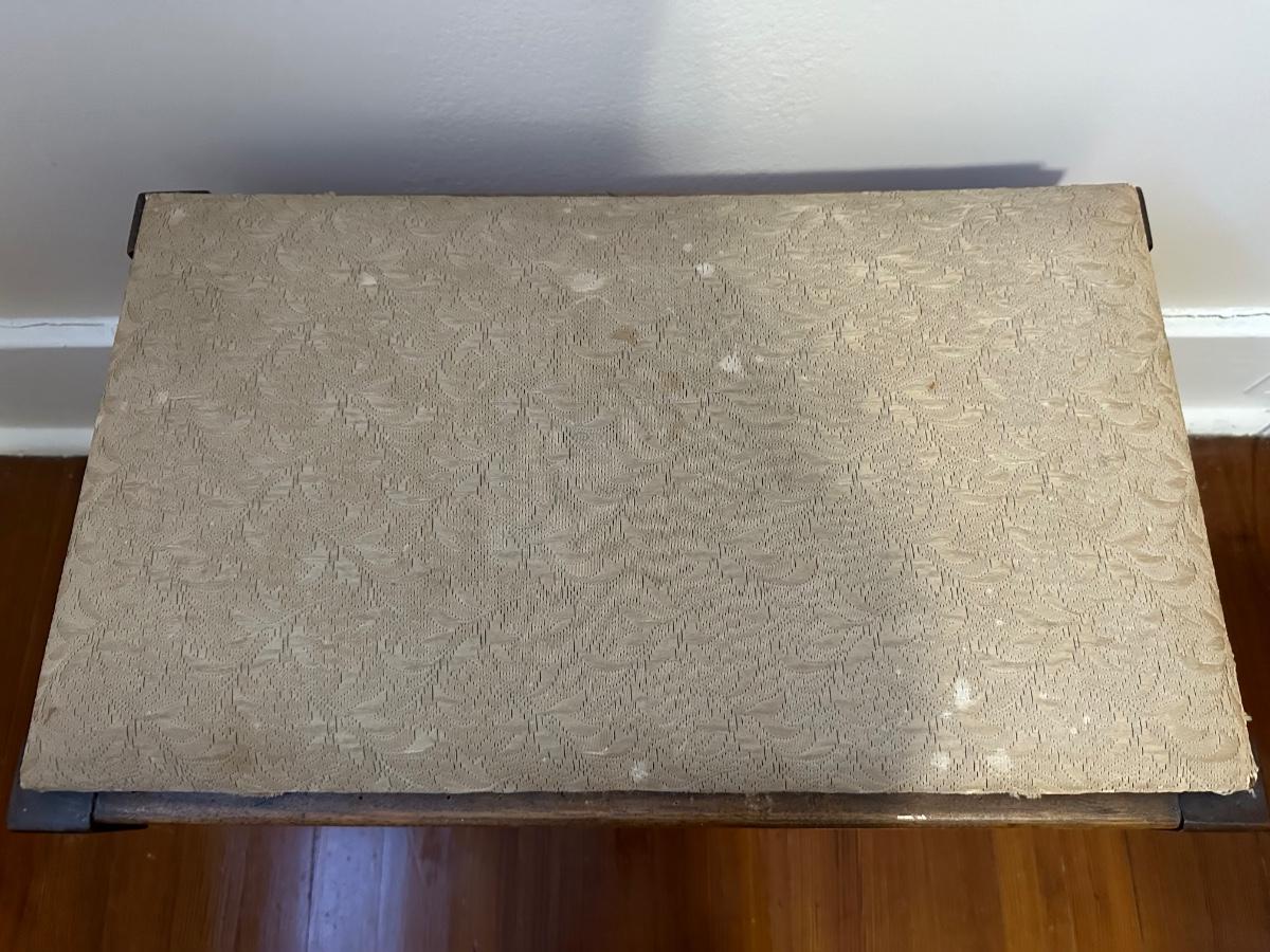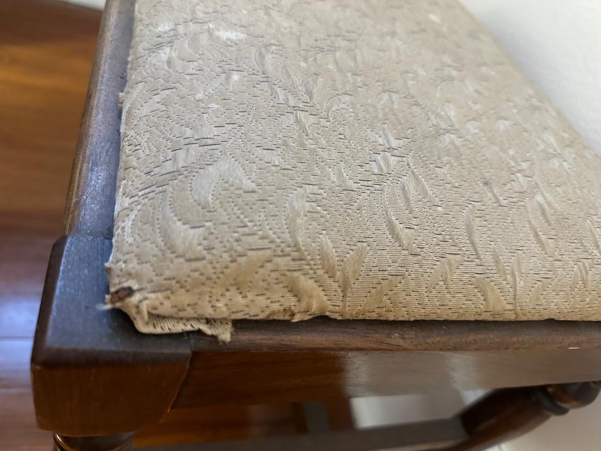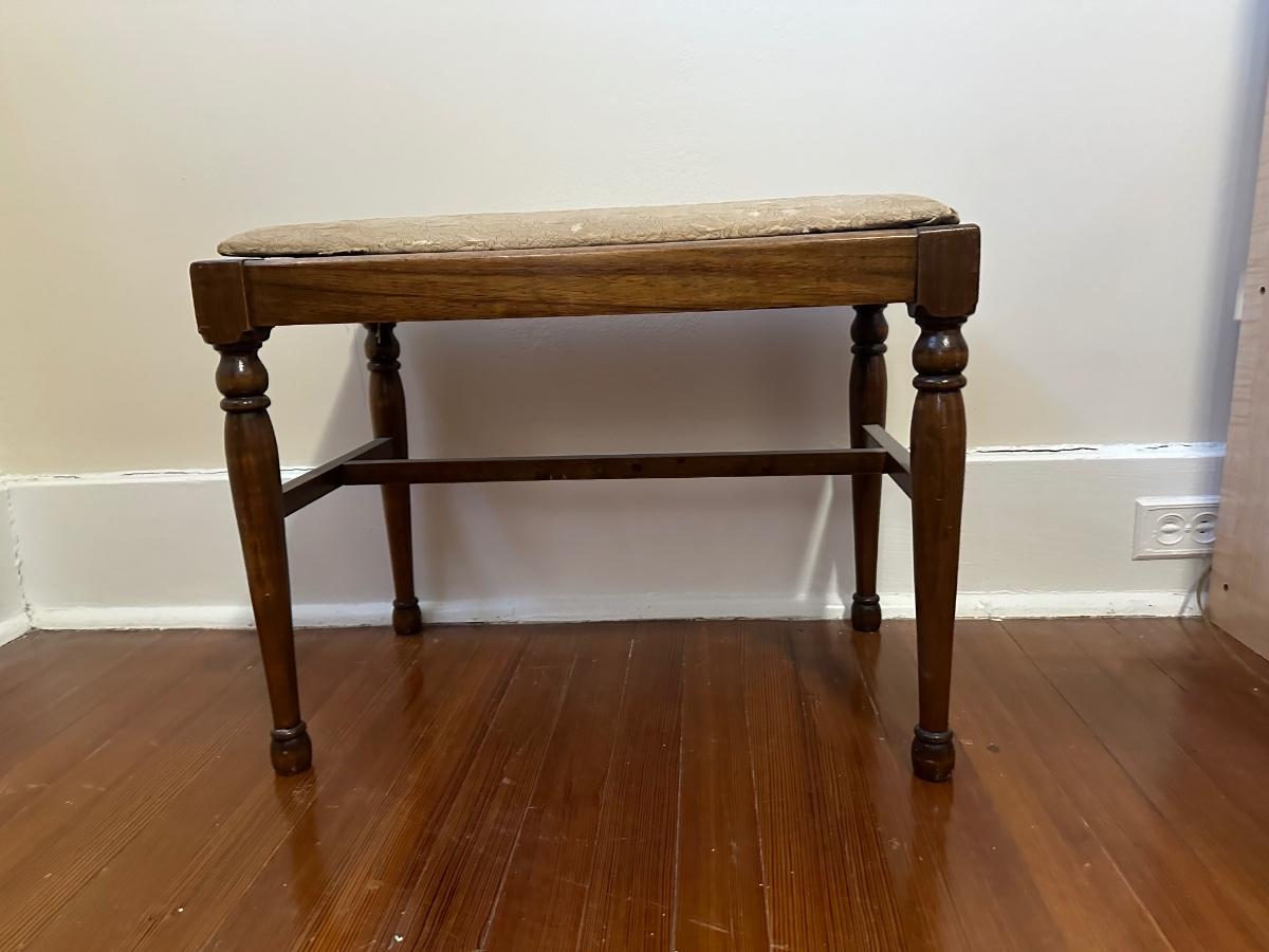 Bench top is not connected. Ready for new upholstery before connecting it. Wood is in good condition!