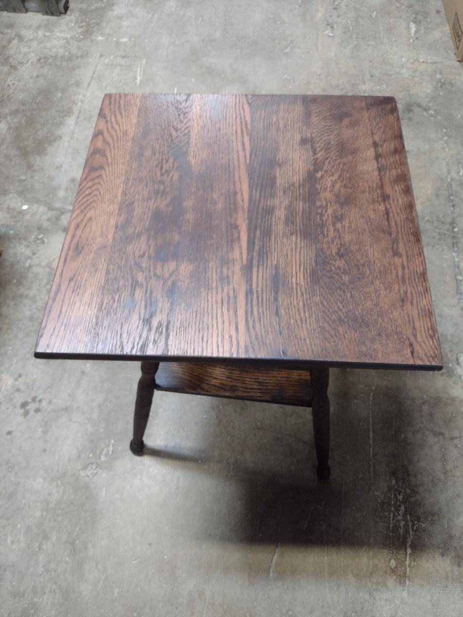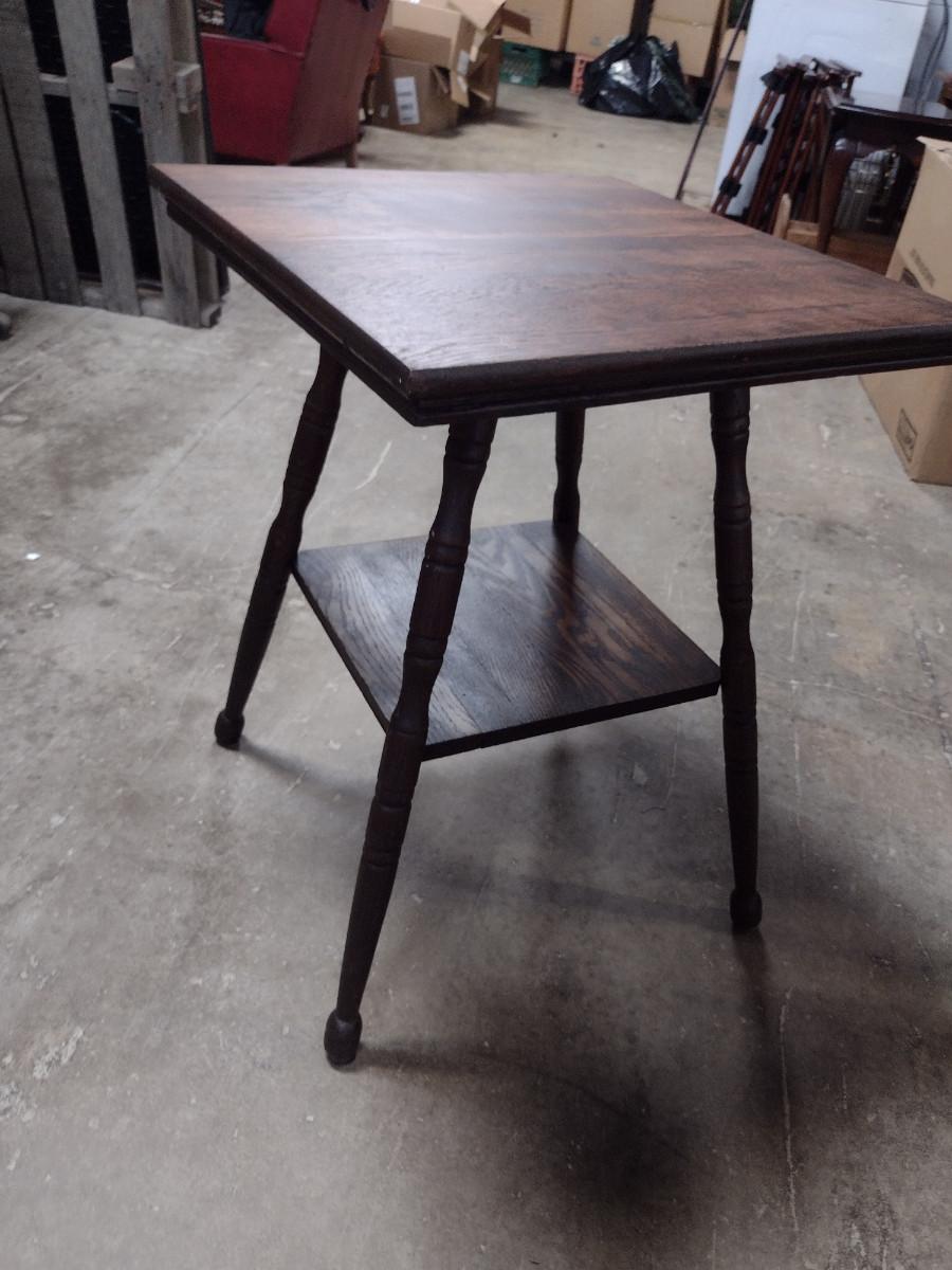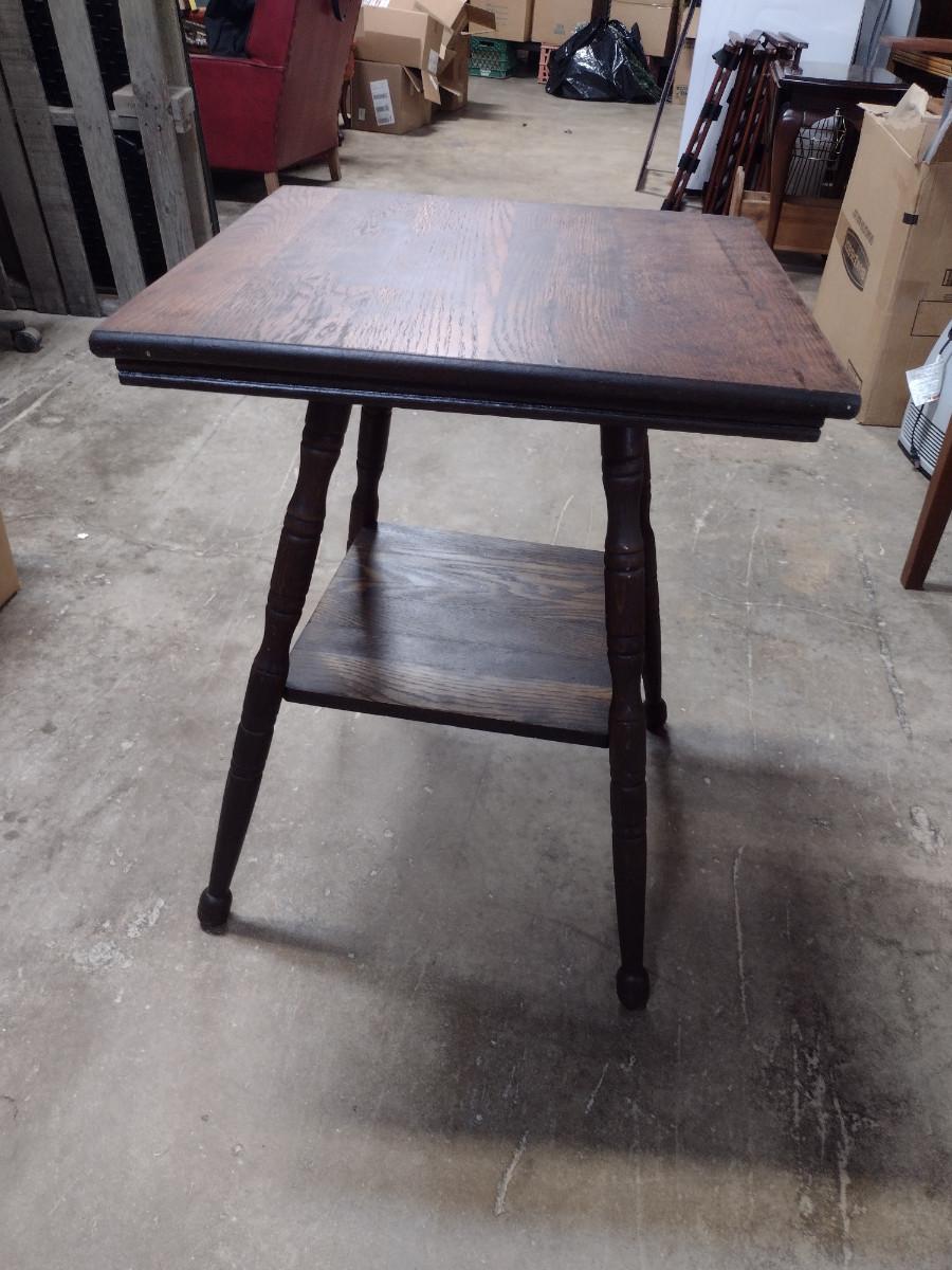 Vintage Wooden Accent Table with Stretcher Shelf. Approx 20" square, 26 1/2" tall.