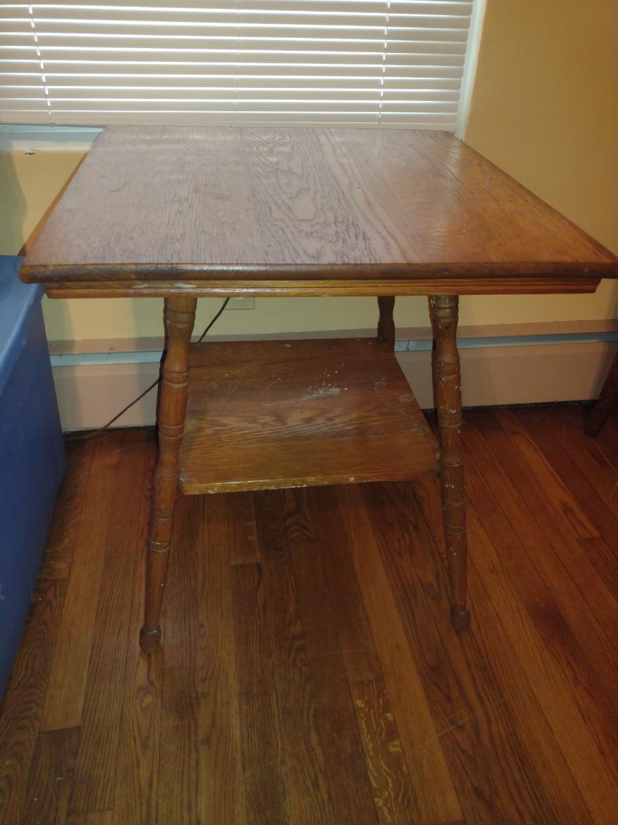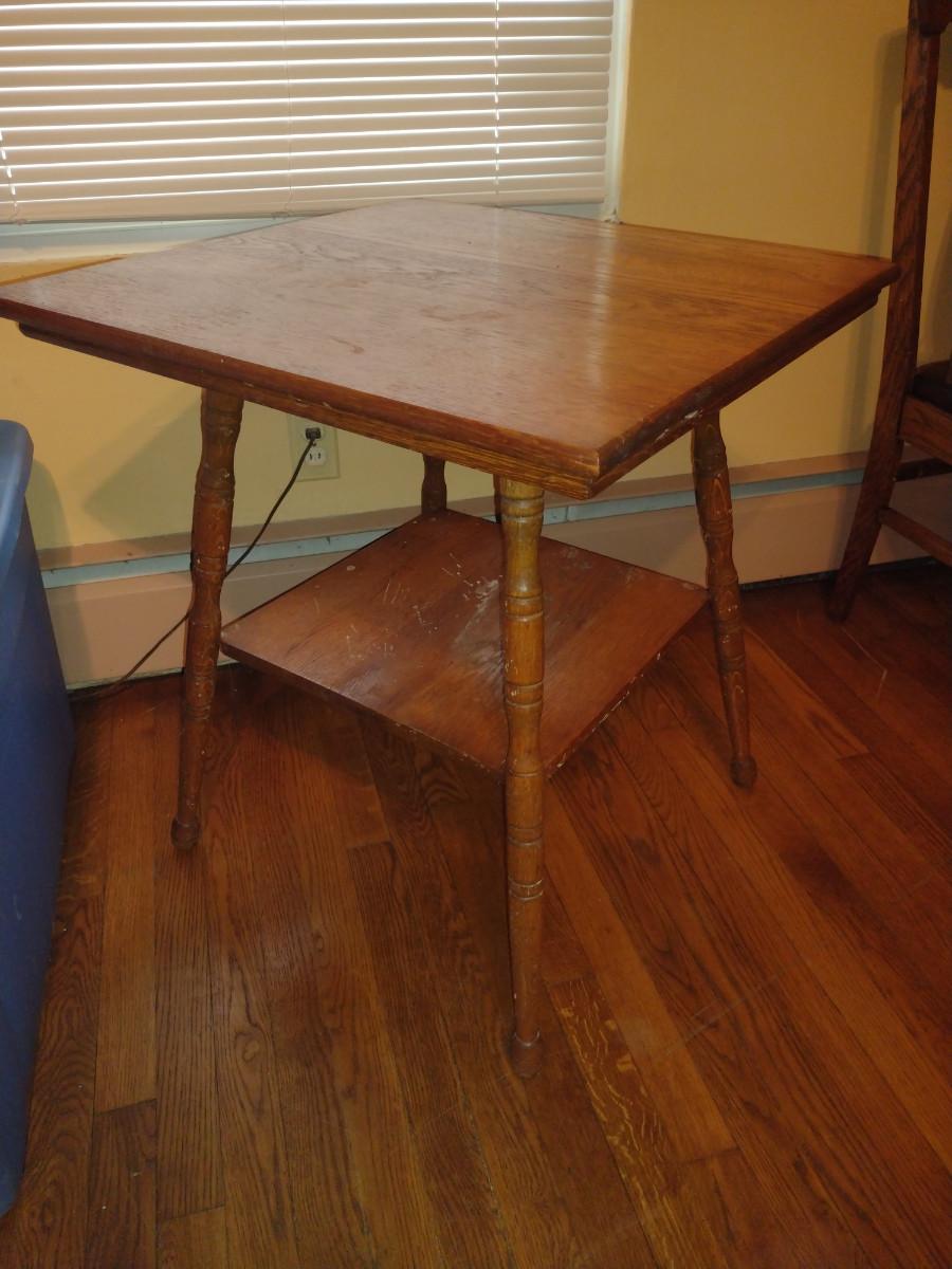 Vintage Wooden Accent Table with Stretcher Shelf- Approx 24" Square, 27" Tall