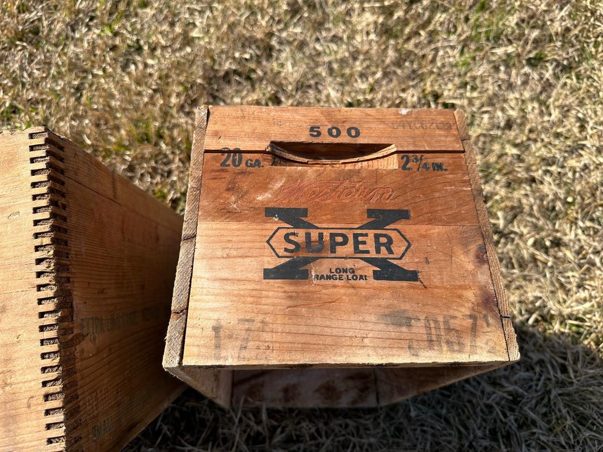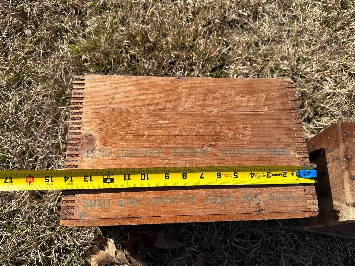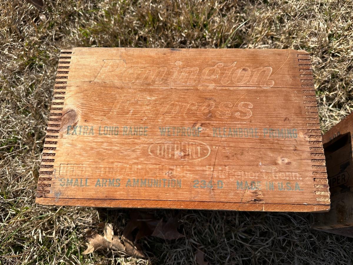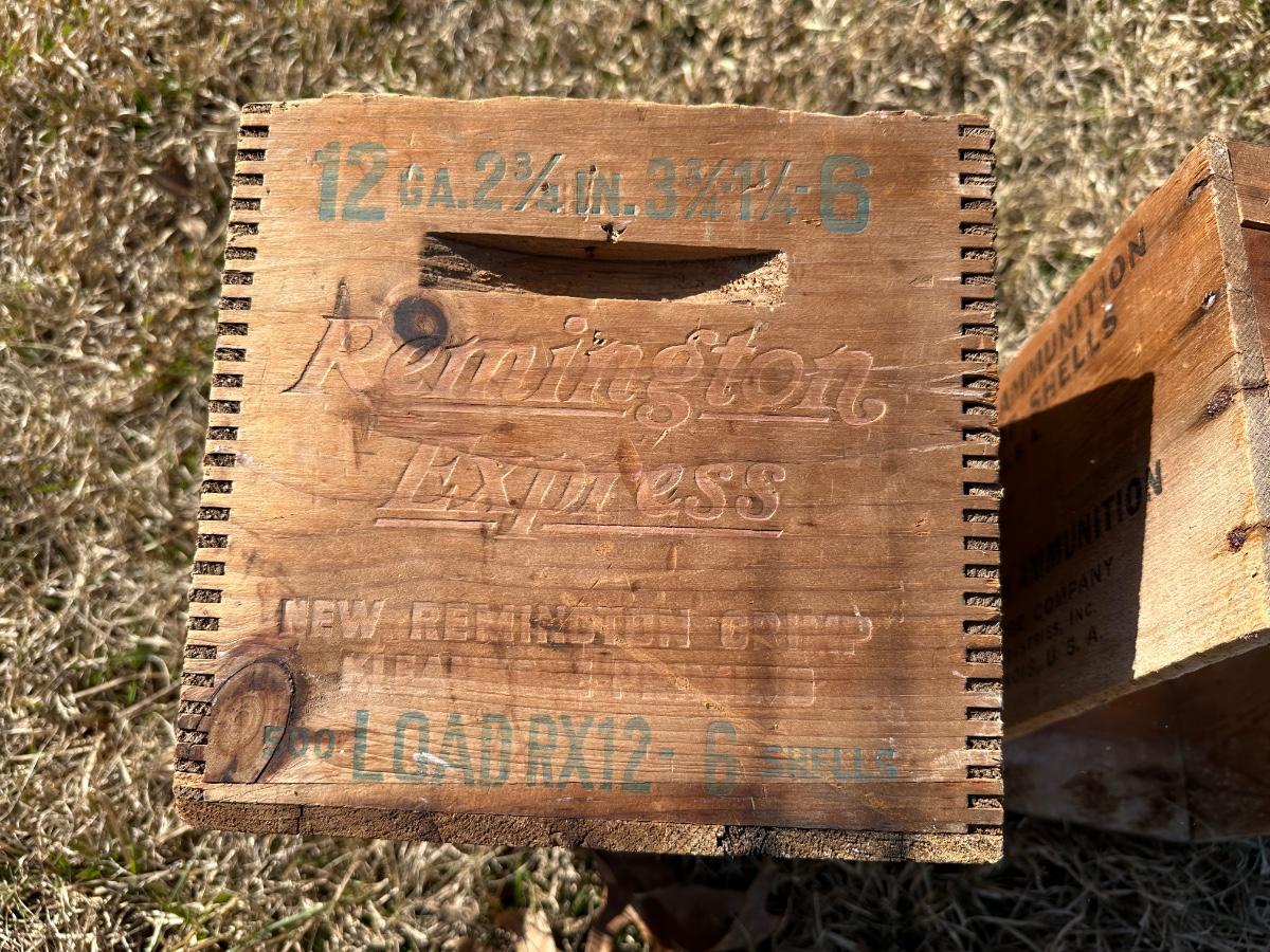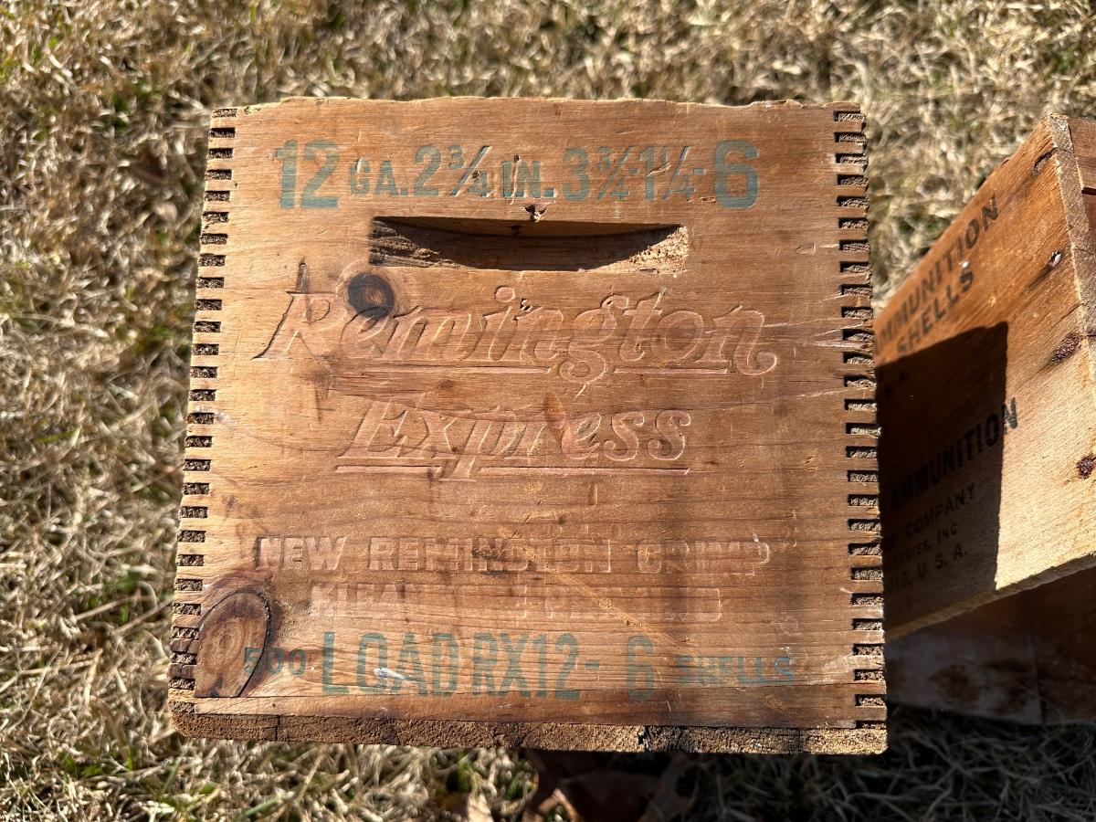 Vintage Wooden Ammunition Crates – Remington Express & Super-X Shot Shell Boxes (2)