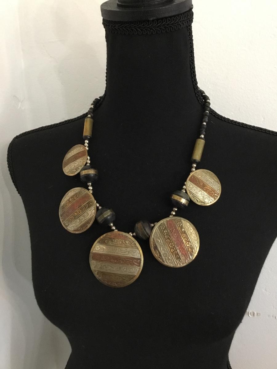 Vintage wooden beaded statement necklace