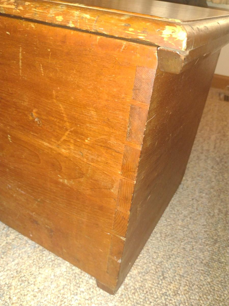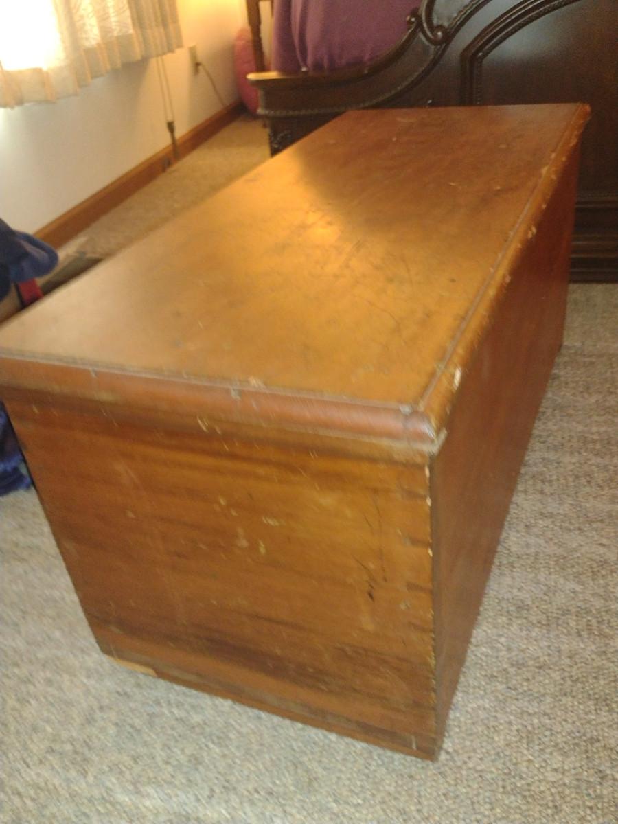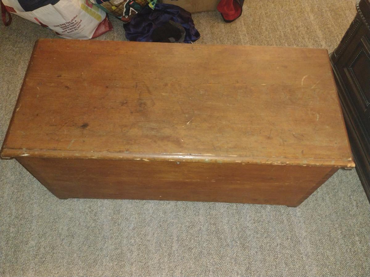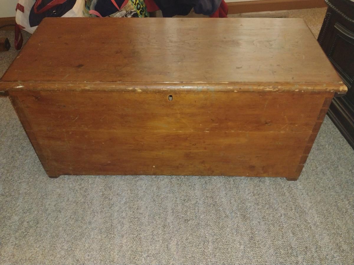 Vintage Wooden Blanket Storage Trunk. Measures approx 37" long, 16 3/4" wide, 17 1/4" tall. Item has no lock.