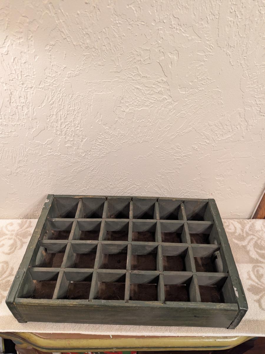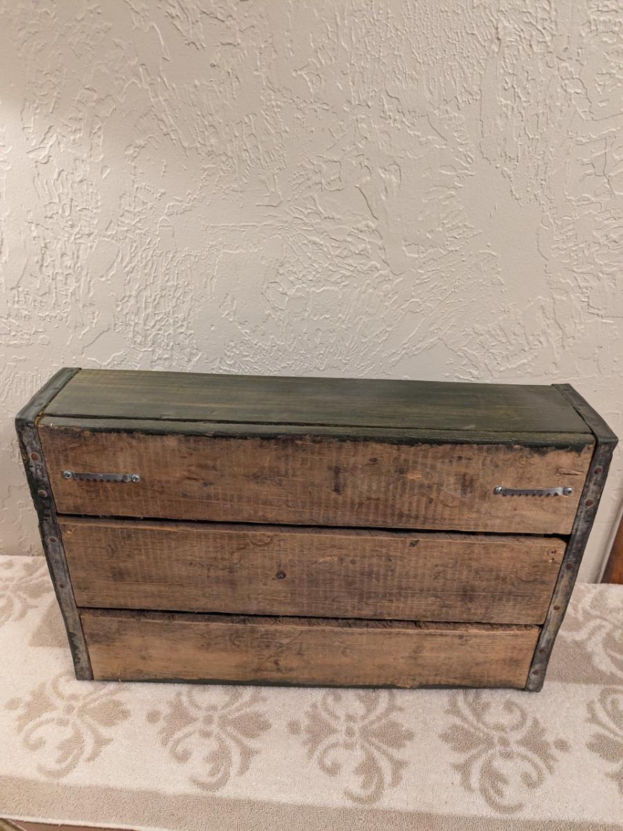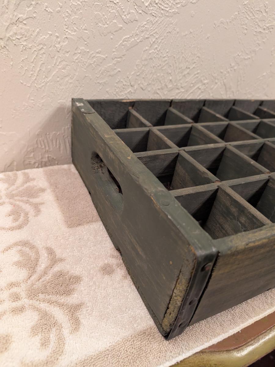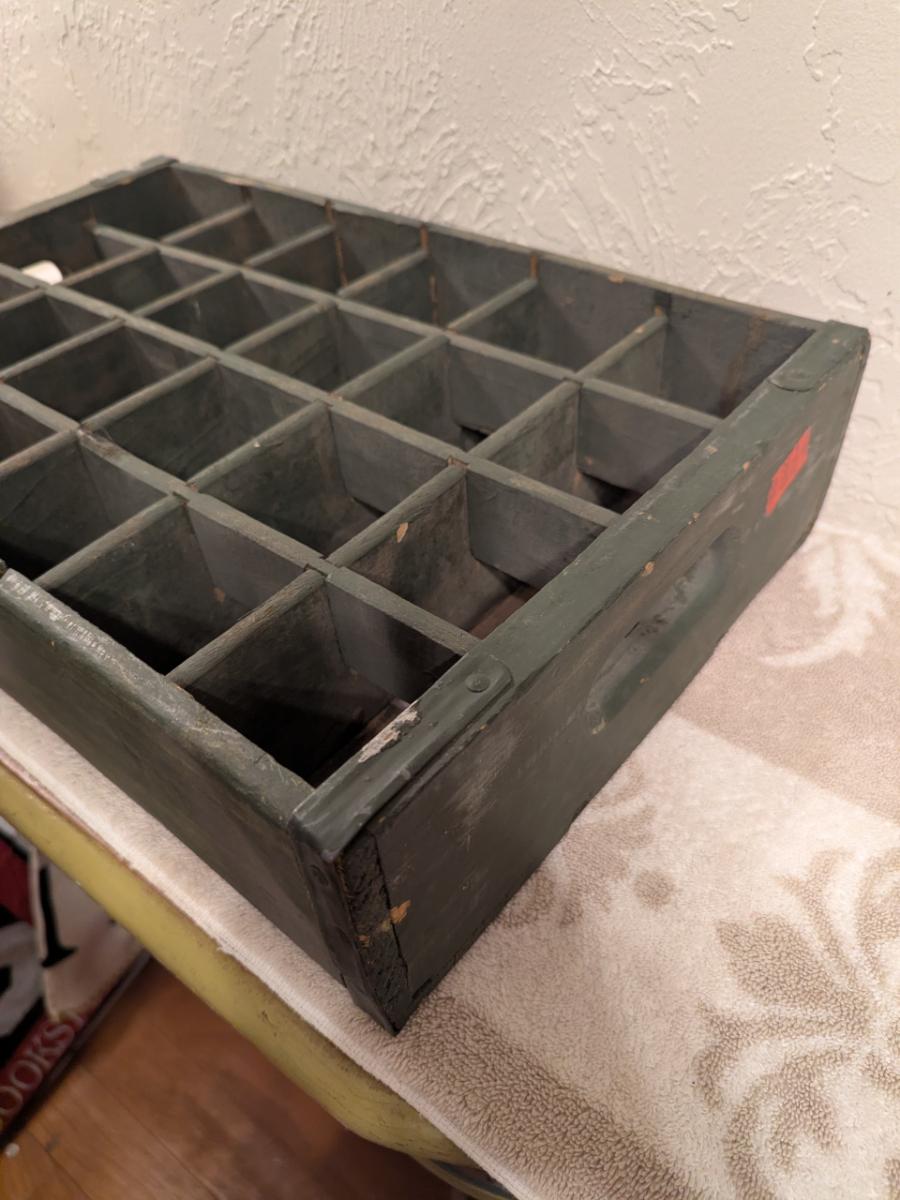 vintage wooden bottle crate, likely used for soda or beer, no brand on side