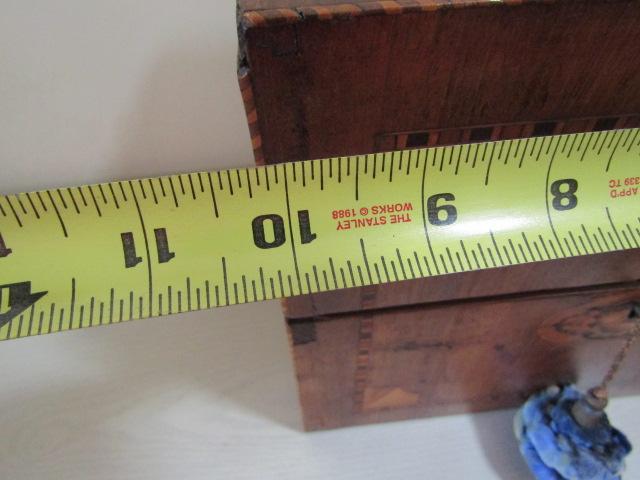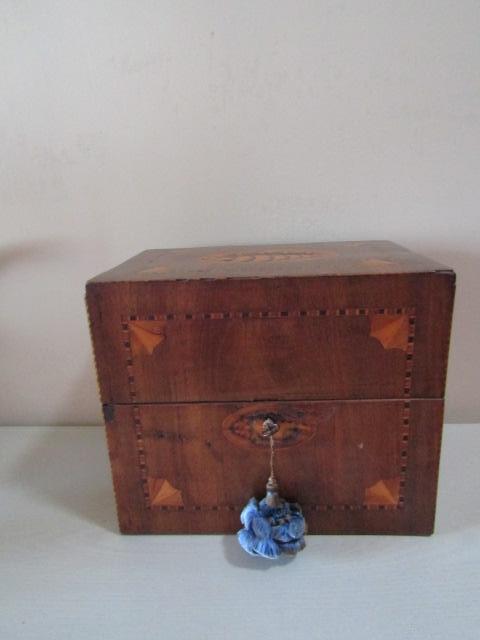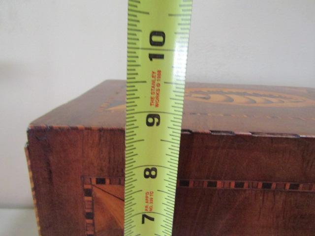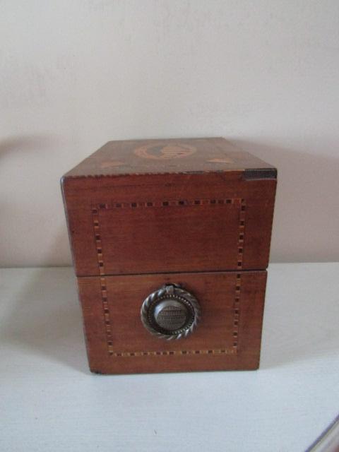 Vintage Wooden Box with Glass Decanters and 'Winston Churchill' Drinking Buddy. Please see all pictures- some work and reattachment is needed on one hinge.