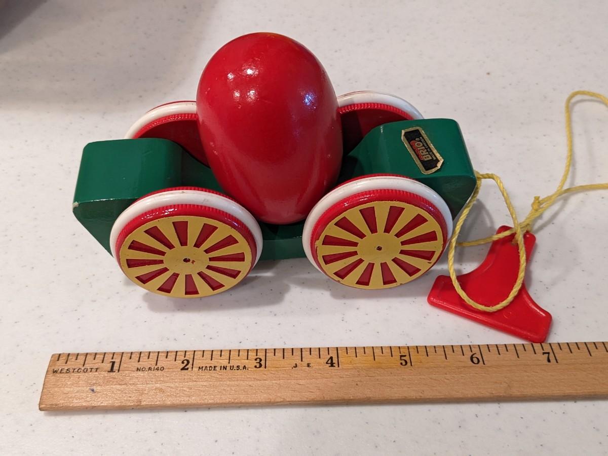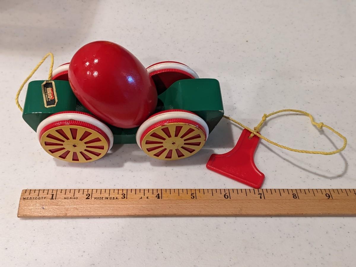 Vintage Wooden BRIO Pull Toy Wagon with Egg