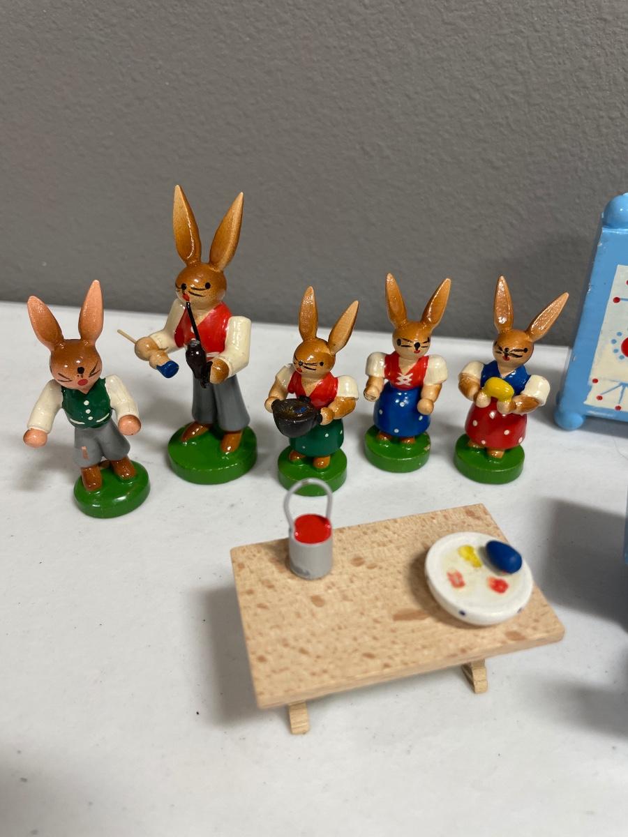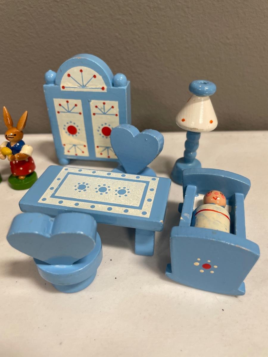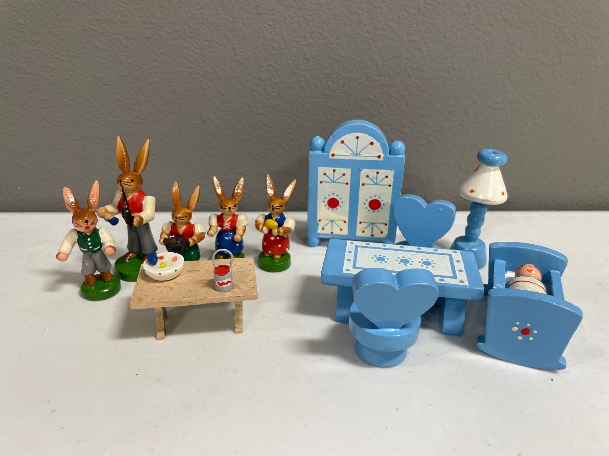 Vintage wooden bunnies and furniture