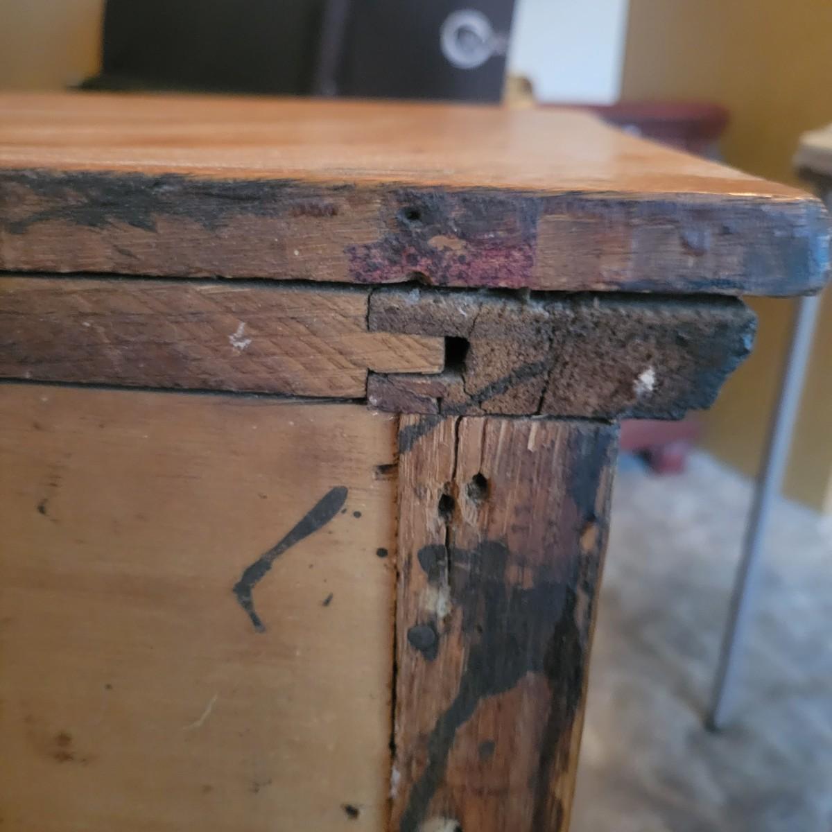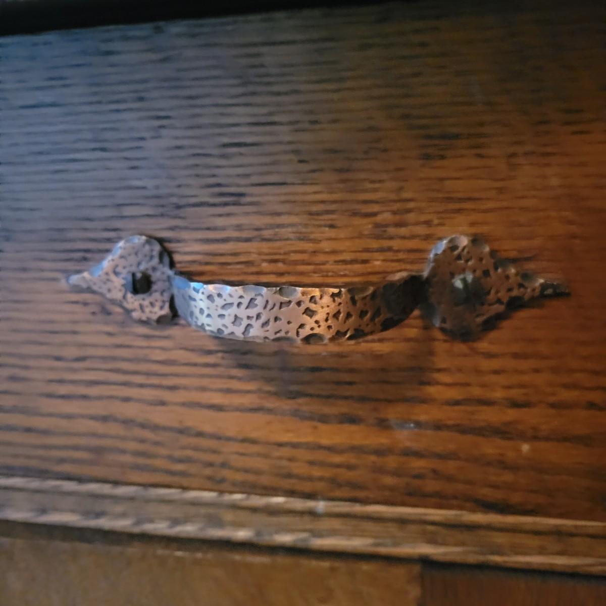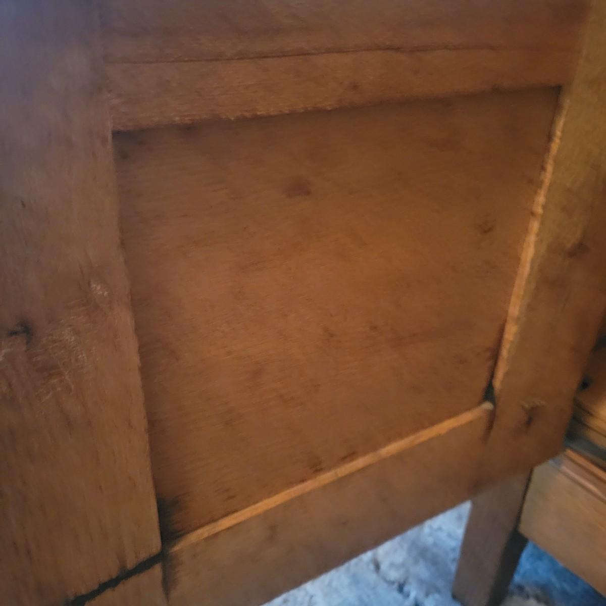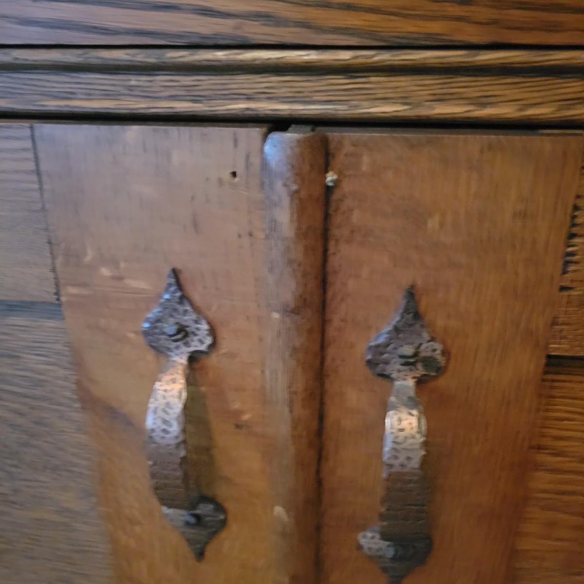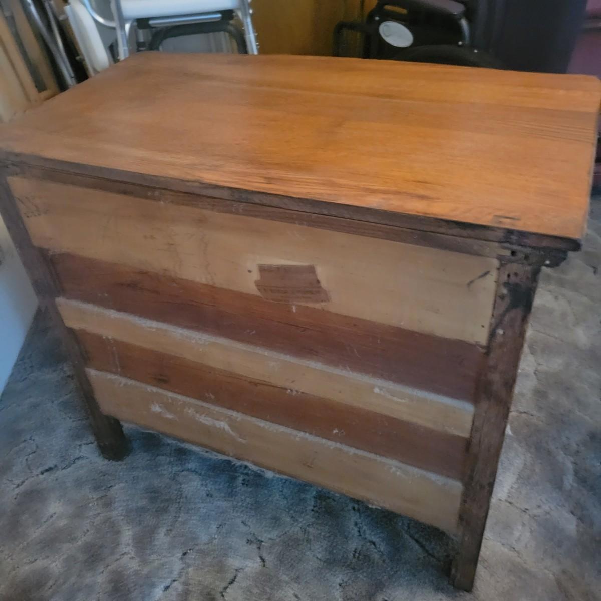 A small antique, solid wood cabinet with one drawer in good condition with no notable damage. Cabinet features dovetailed drawers and copper looking hardware. Made by Waynesville Furniture Co. Cabinet doors don't secure completely. Measures approximately 33" x 19" x 28" Local pickup only