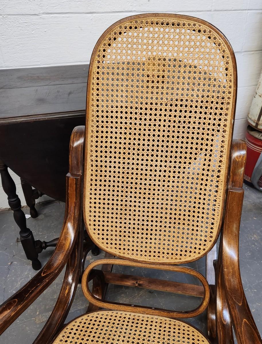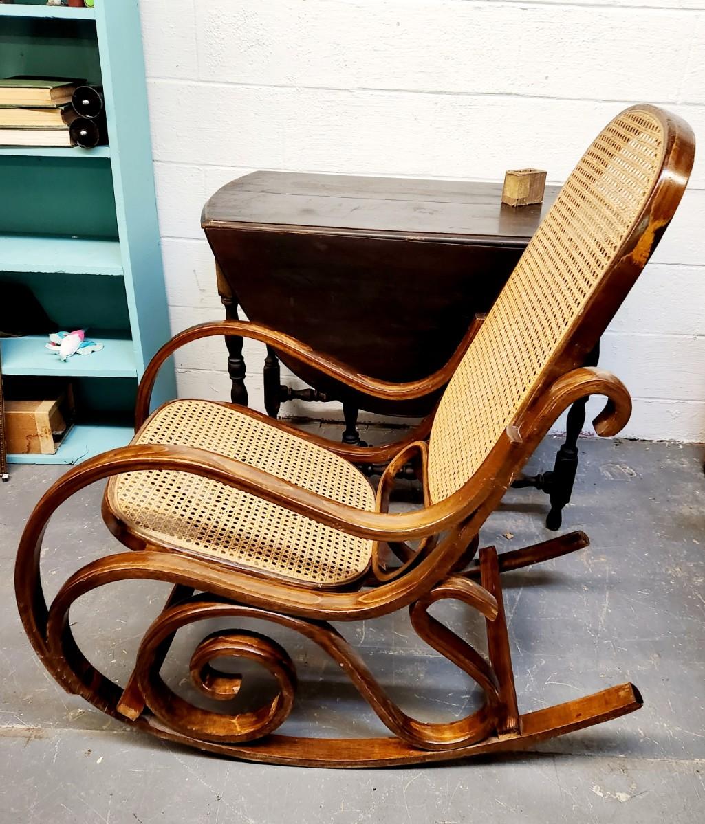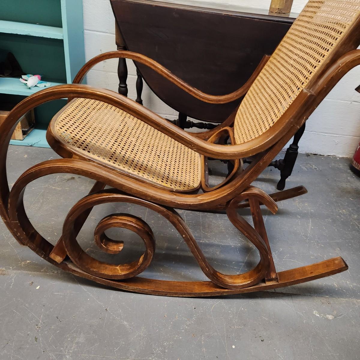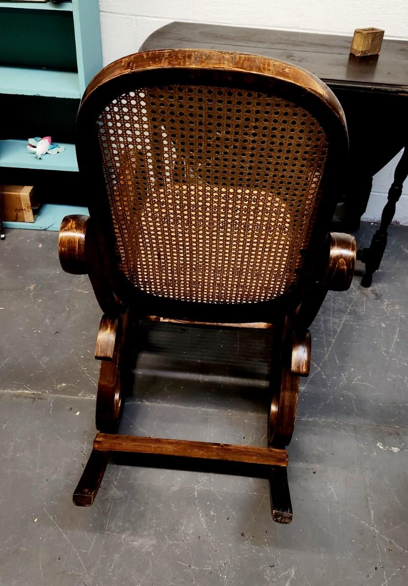 VINTAGE WOODEN CANED SWIRLED SIDES ROCKING CHAIR