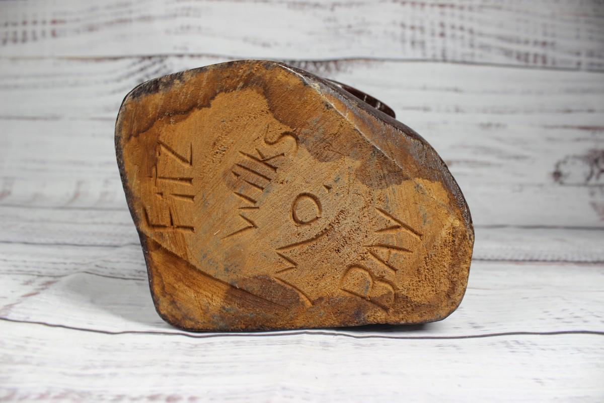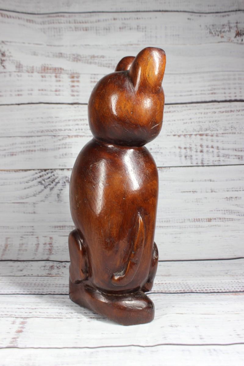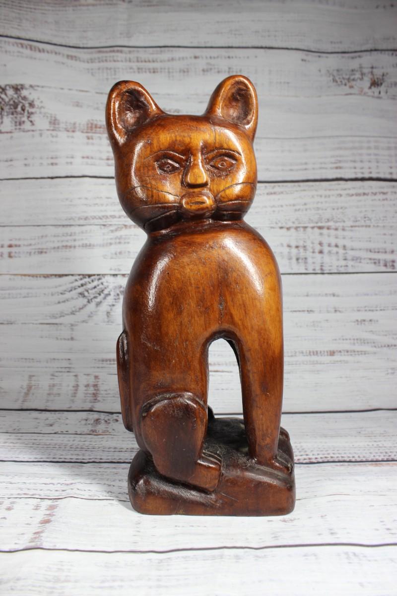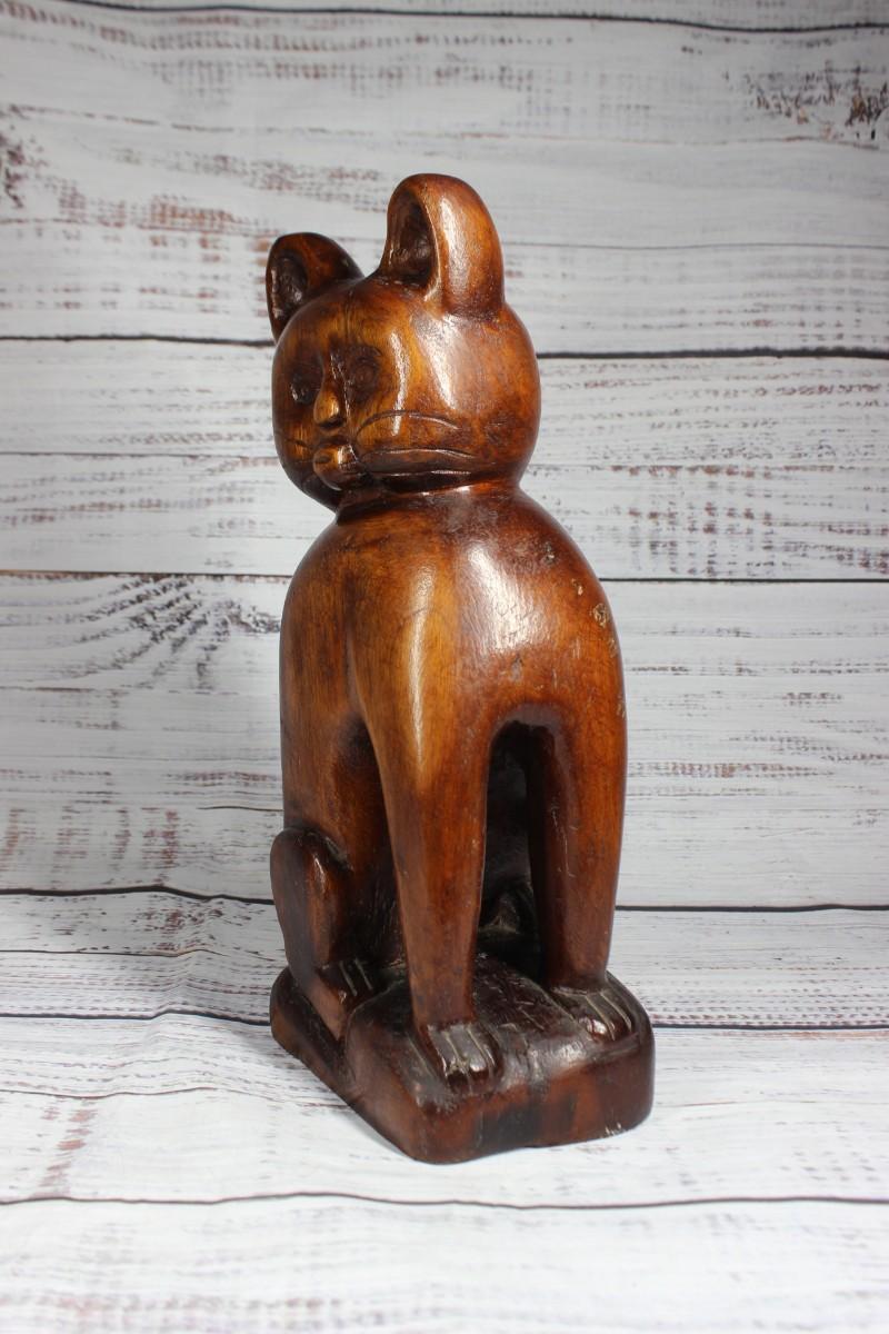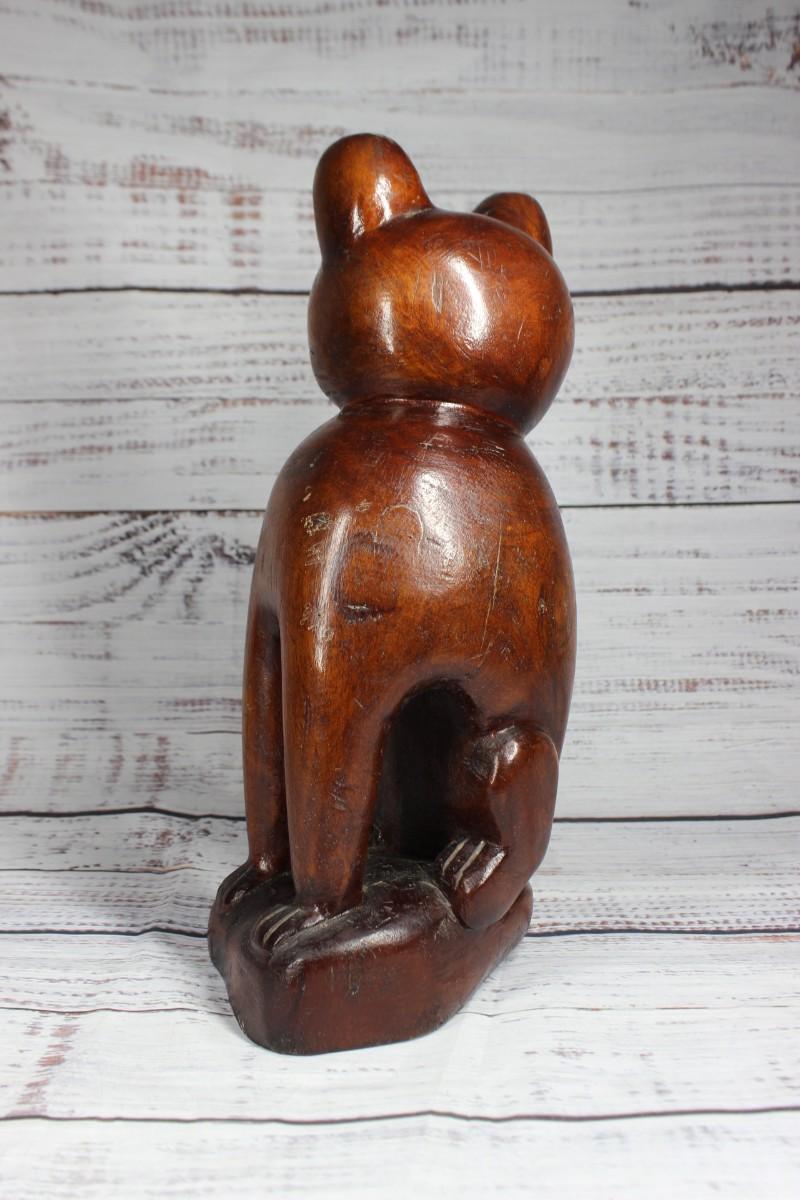 13" vintage wooden cat statue, this piece has some scratches around the body. Signed on the bottom by artist Fitz Wilks, Mo. Bay.