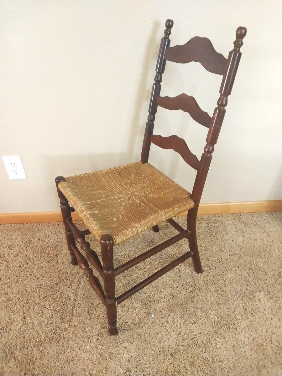 VINTAGE WOODEN CHAIR WITH WICKER SEAT