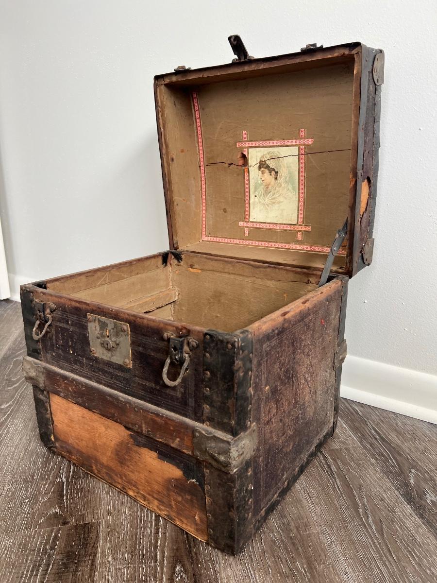 As you can tell, this piece is old! It has a lot of character please see pictures for condition measures 15 inches tall 16 inches wide 14 inches deep.