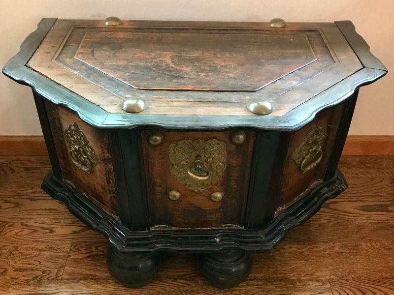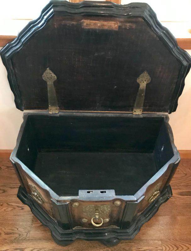 Vintage Wooden Chest With Brass Trim