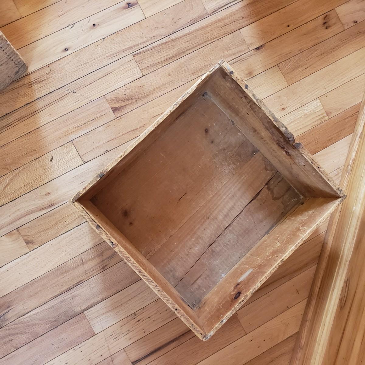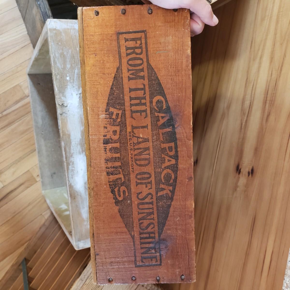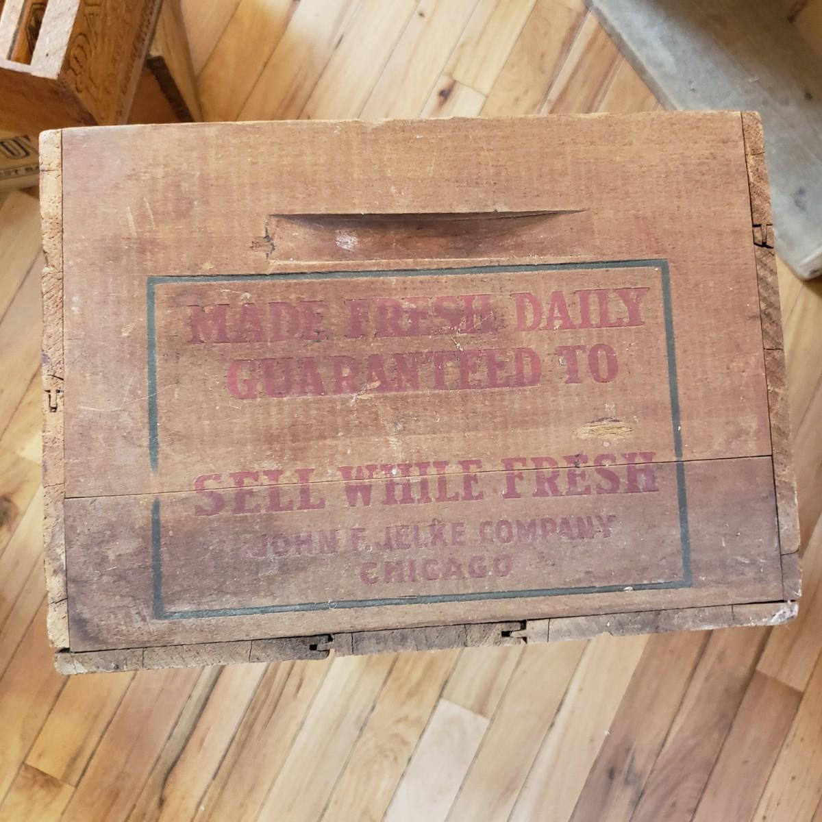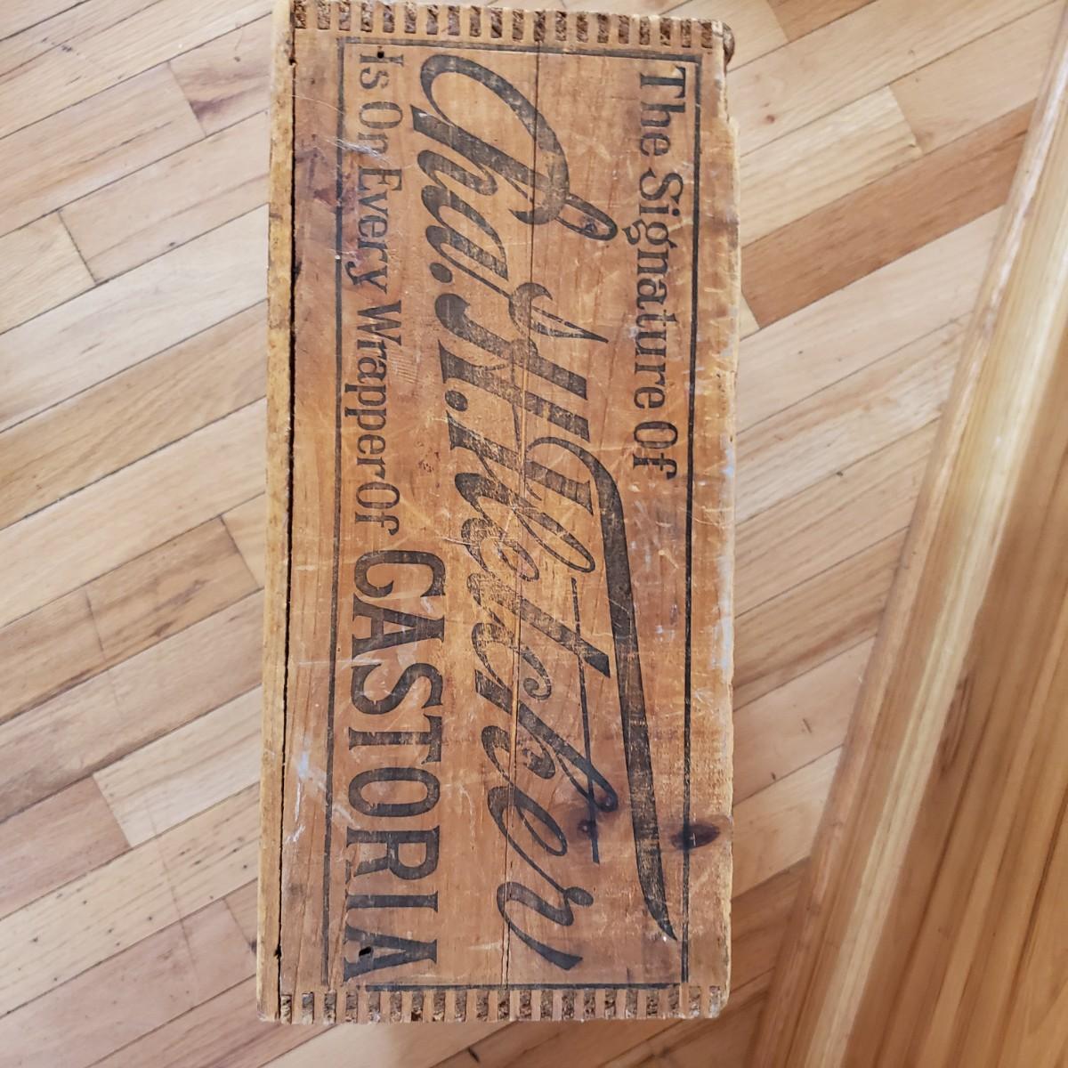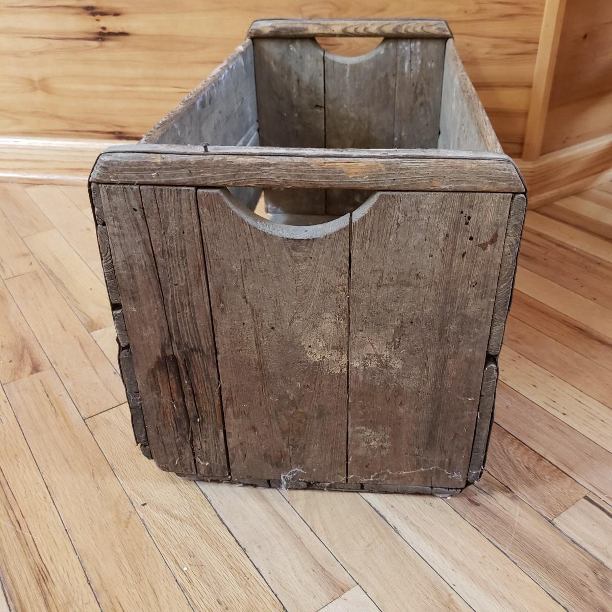 This lot features 13 wooden crates, most are stamped with their company name and product. The Table Talk crate with dividers/shelves measures 22" x 21" x 10" H. The Castoria crate is 14" x 15" x 7" H. See pictures for brands and products.