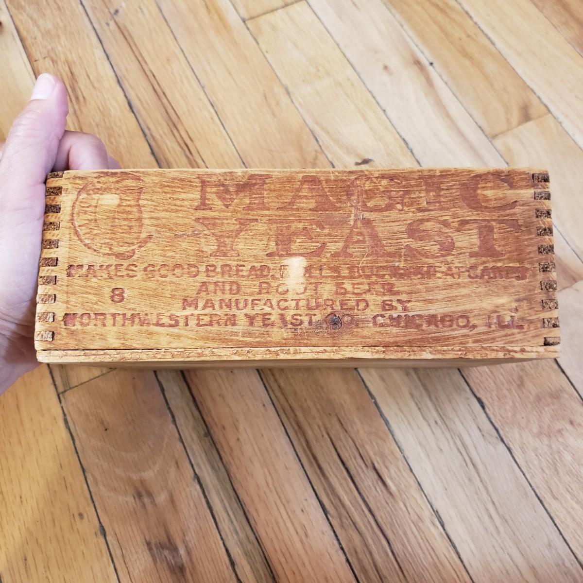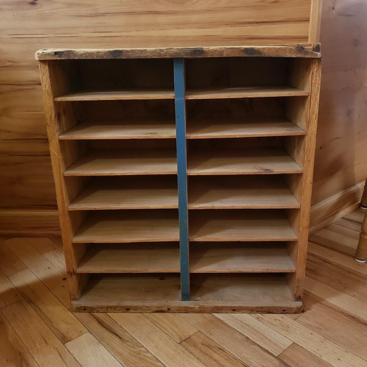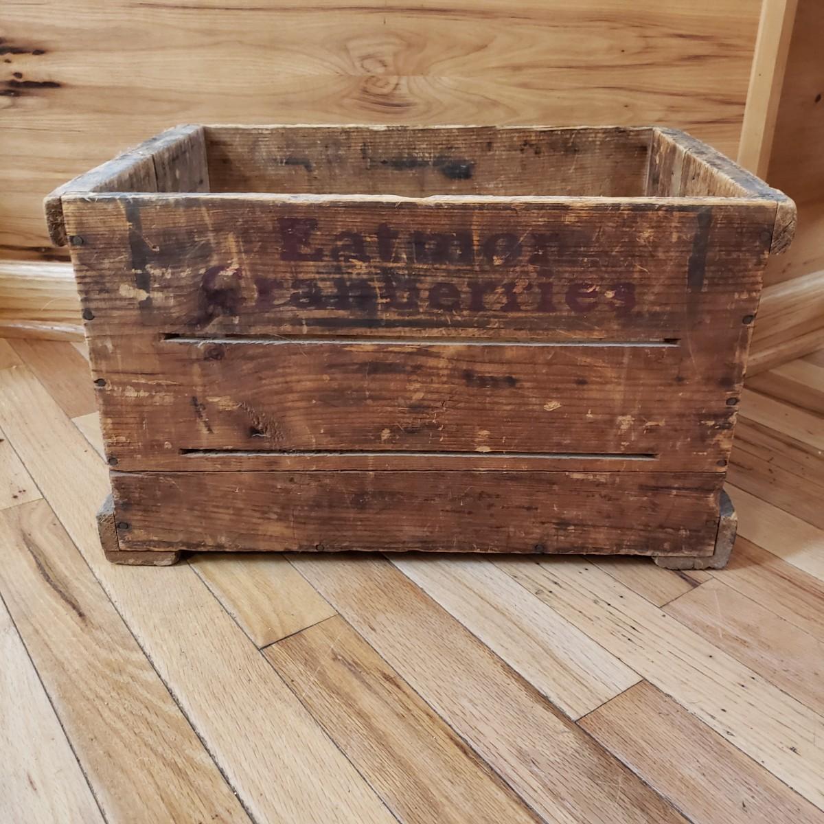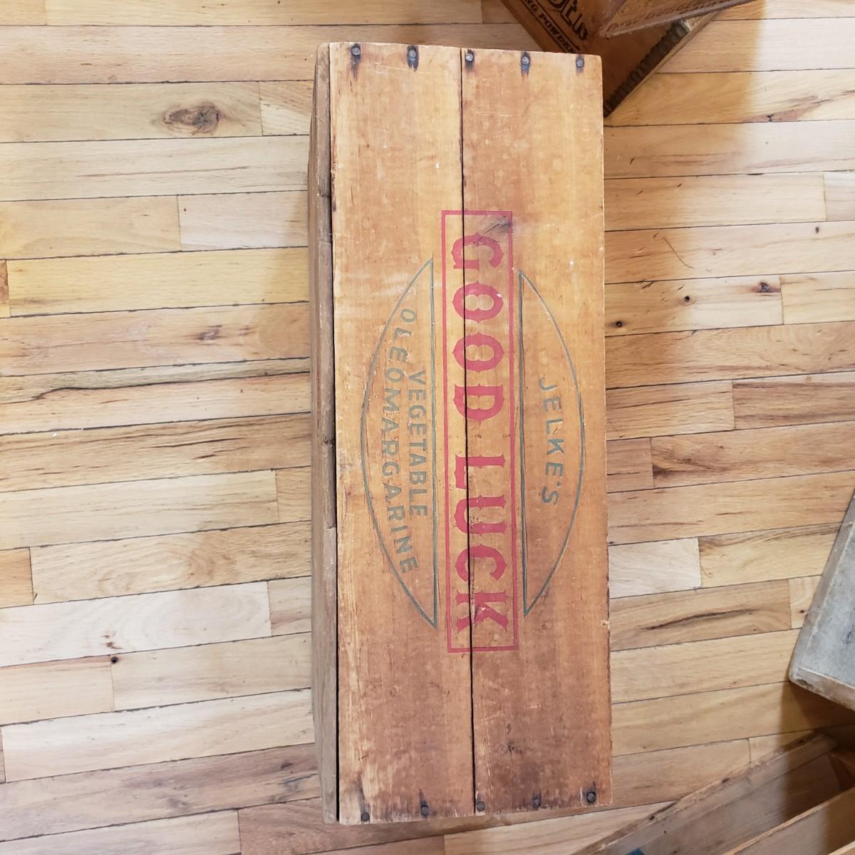 This lot features 13 wooden crates, most are stamped with their company name and product. The Table Talk crate with dividers/shelves measures 22" x 21" x 10" H. The Castoria crate is 14" x 15" x 7" H. See pictures for brands and products.