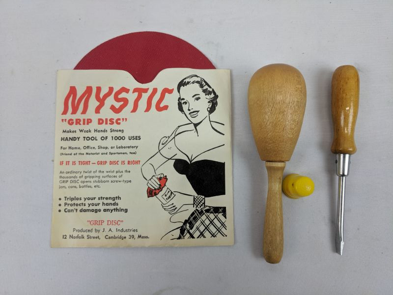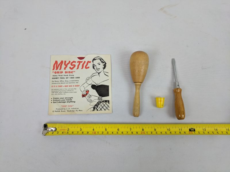 Vintage Wooden Darning Egg, Sewing Tool W/ Thimble, Mystic Grip Disc