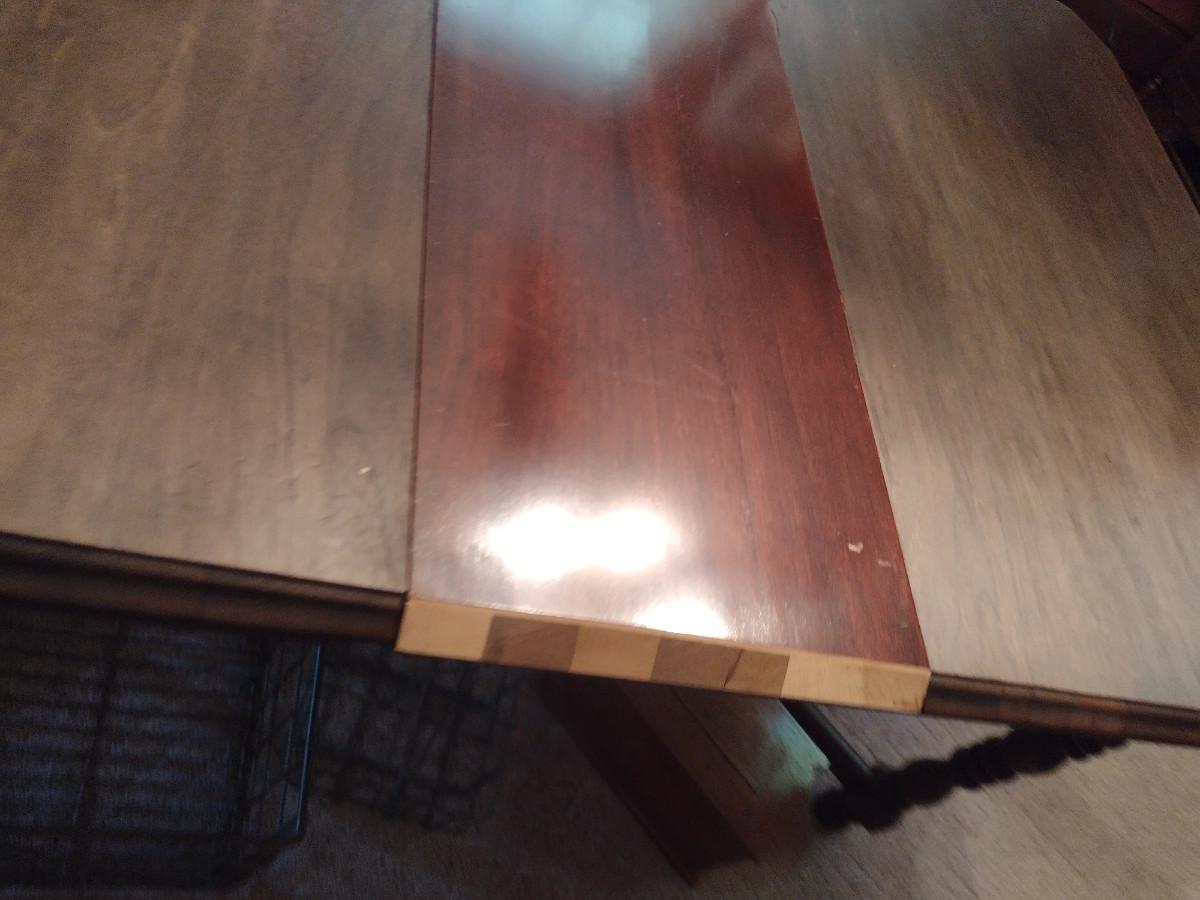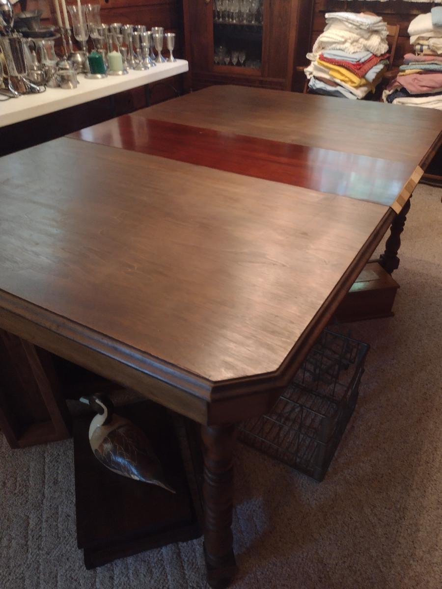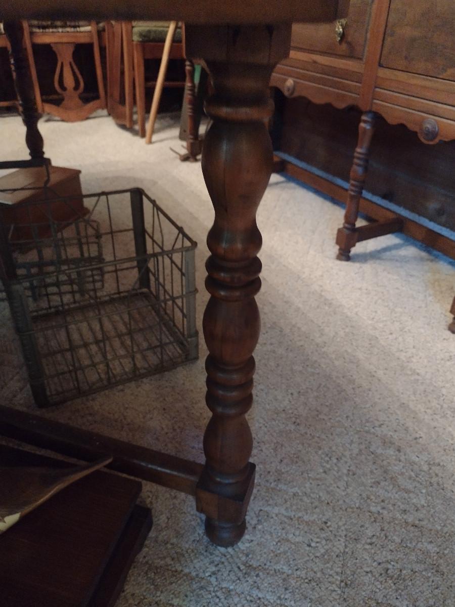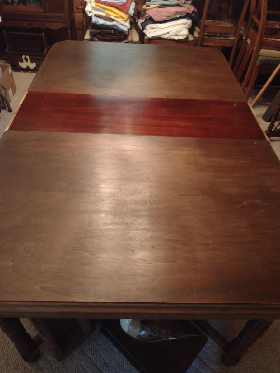 Vintage Wooden Dining Table- Approx 66" x 42". Item has mismatched leaf- please see all pictures. Padded cover is included.