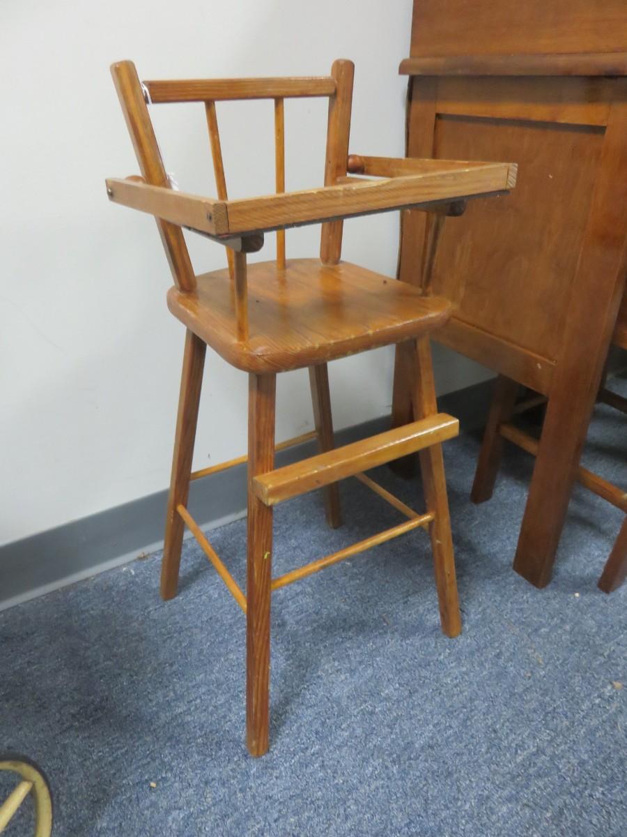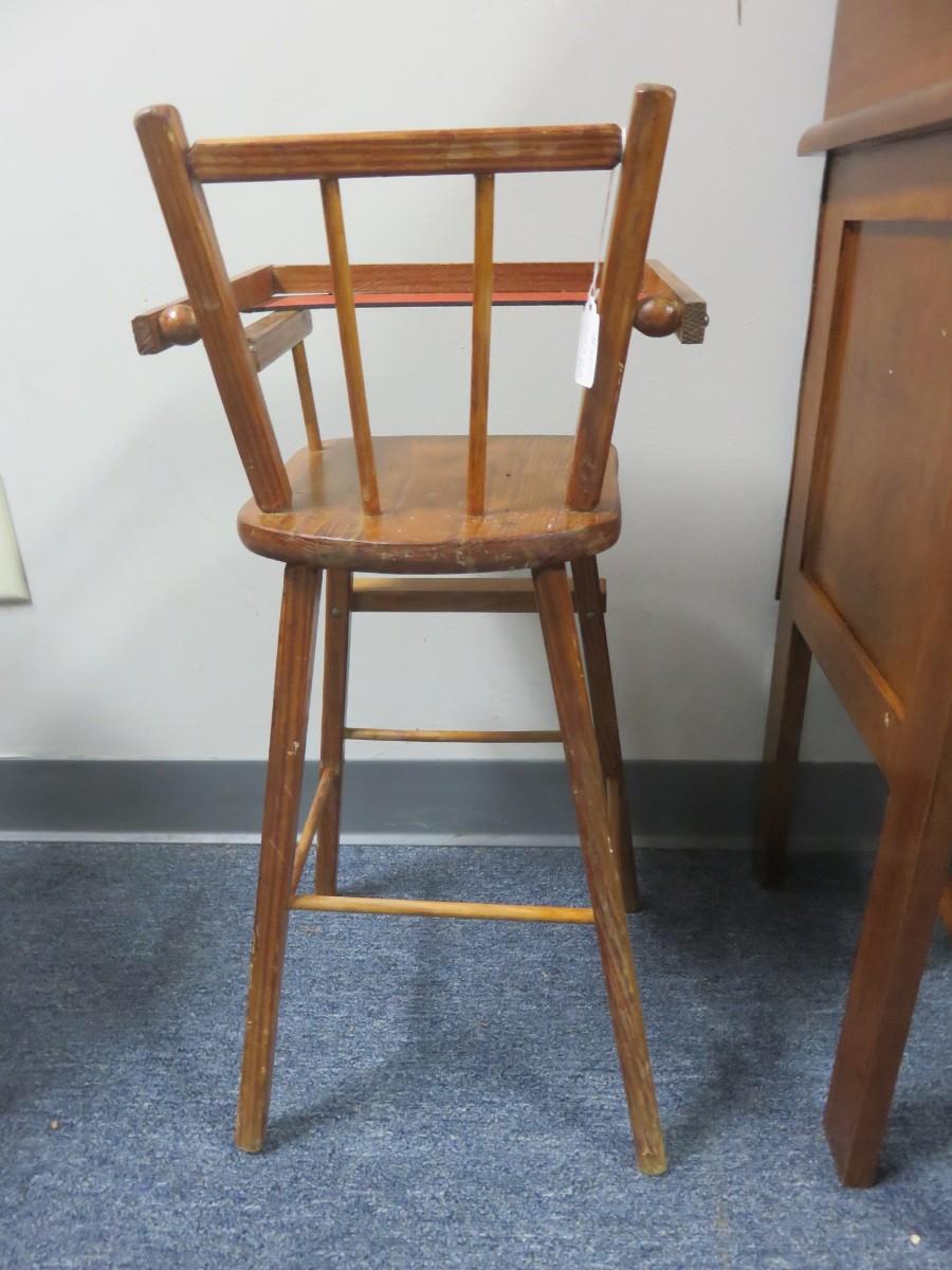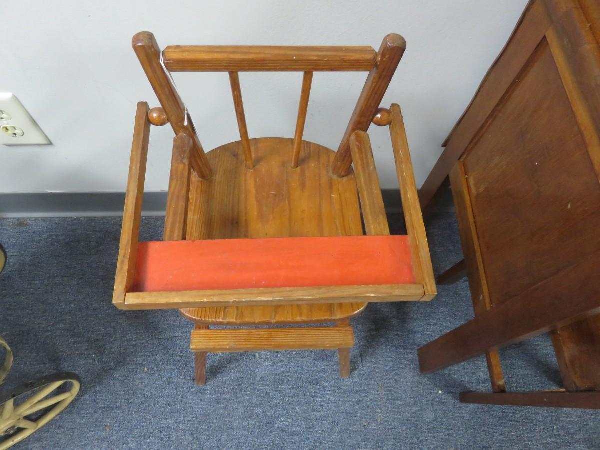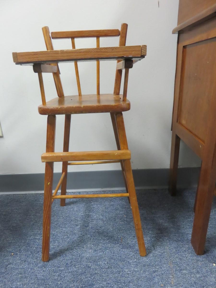 Vintage Wooden Doll High Chair - Seat measures 10 x 9 inches - 26 inches tall