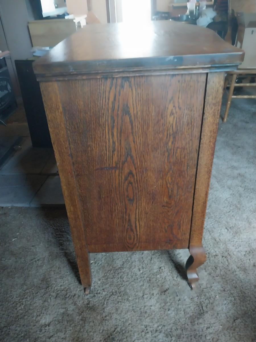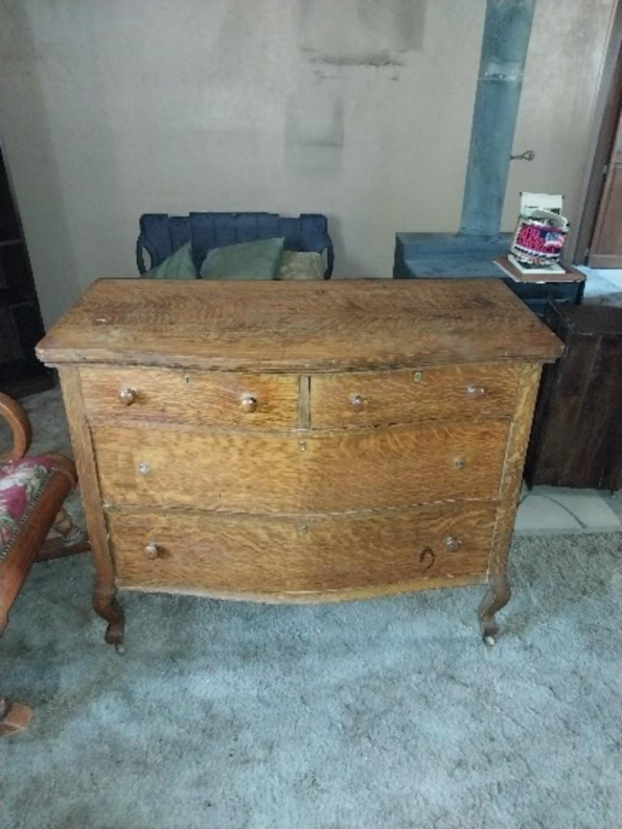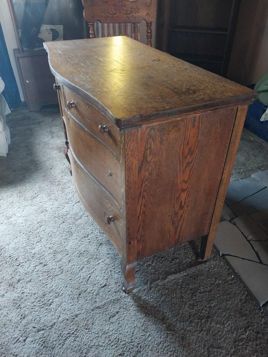 NEEDS A LITTLE TLC- SANDED AND RESTAINED, 2 MISSING HANDLES....42X21X35