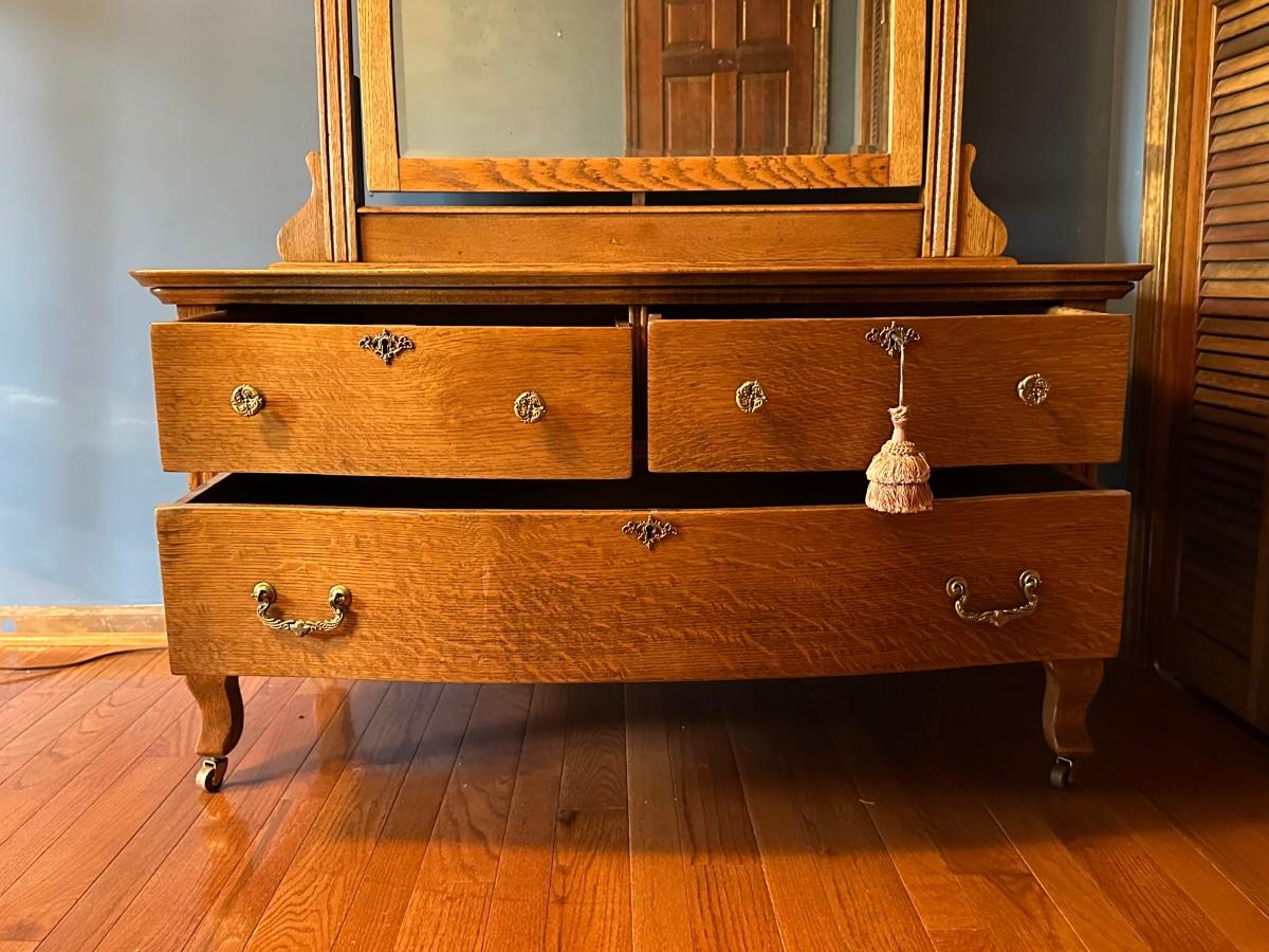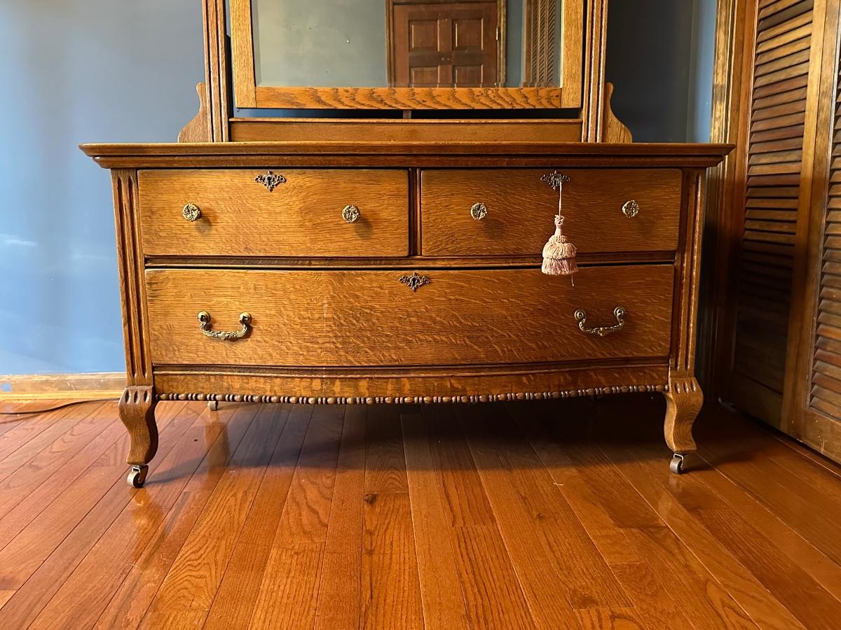 Vintage Wooden Dresser with Mirror