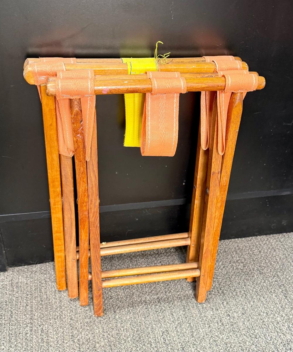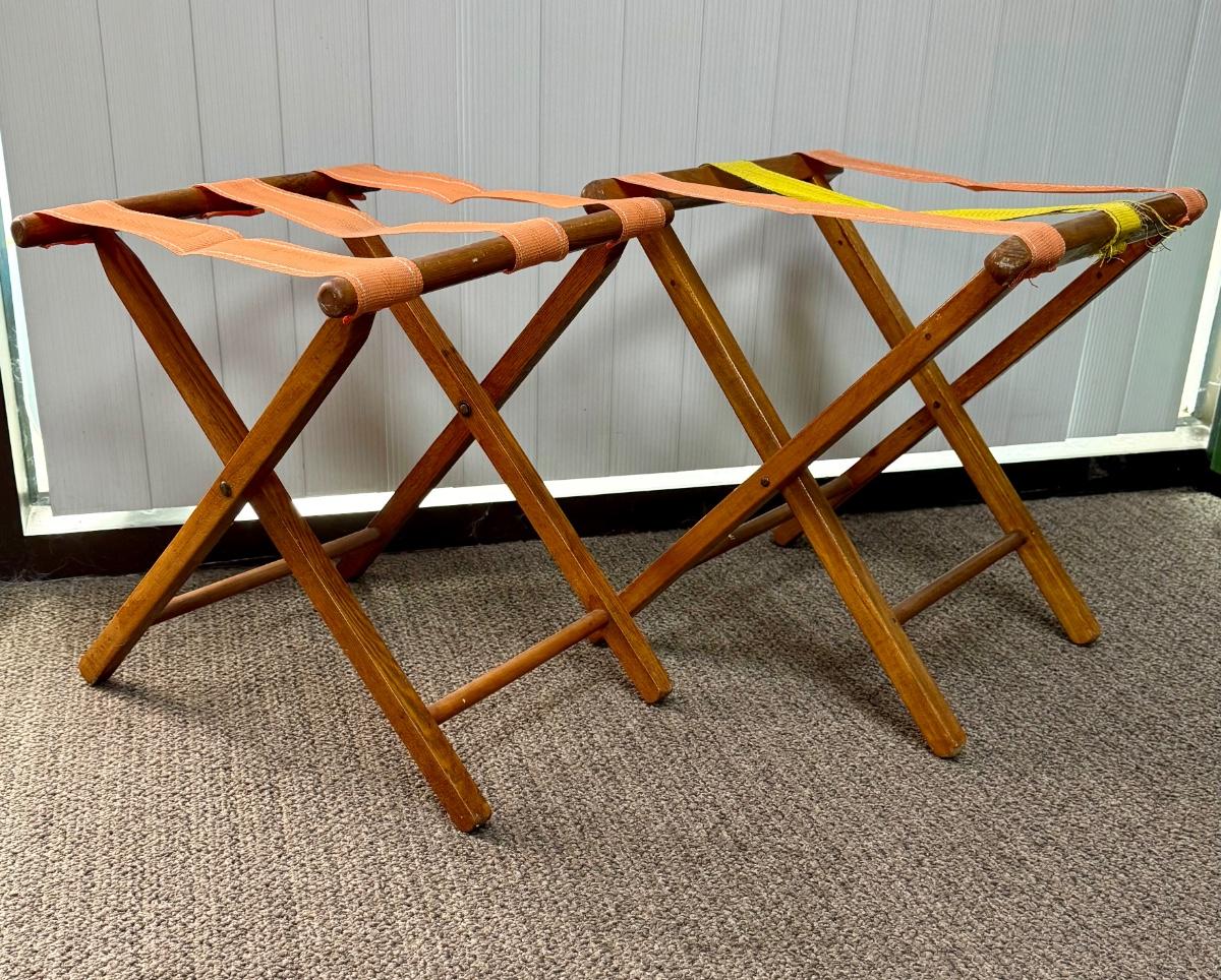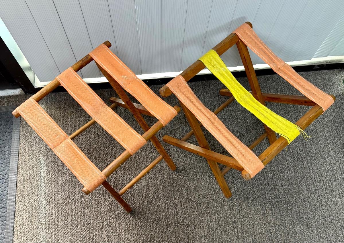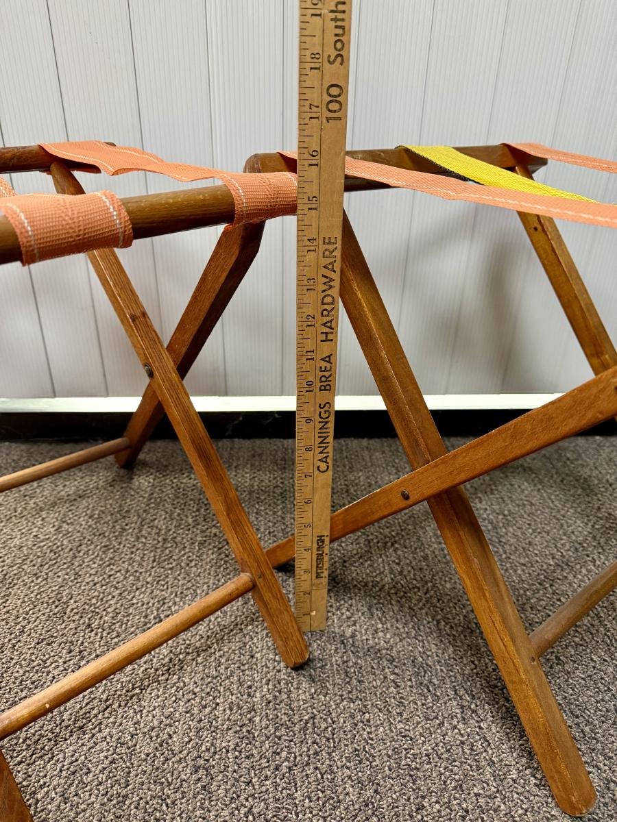 Frames are in good condition, webbing is old and may need to be replaced. Approx. 16" high seating height.