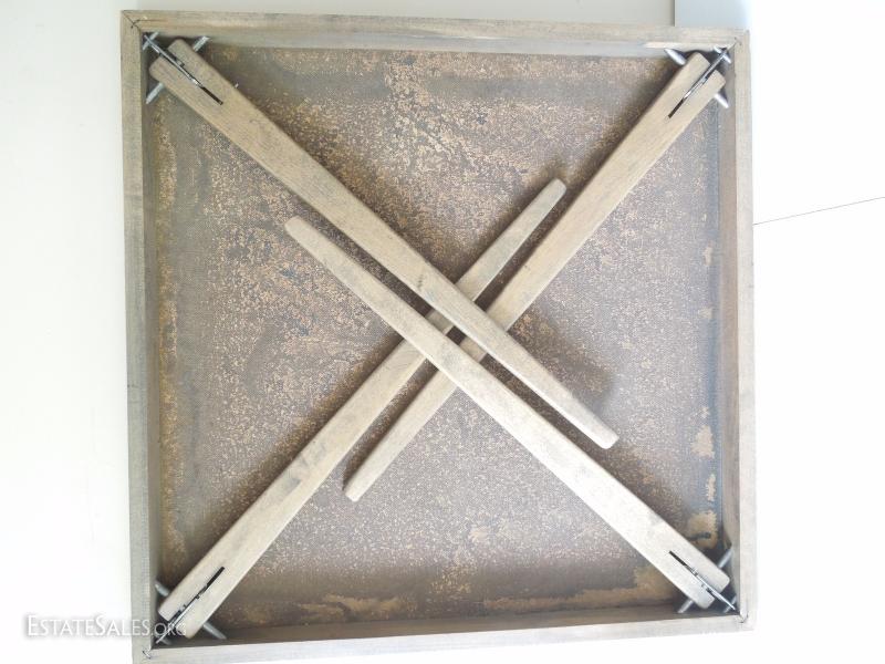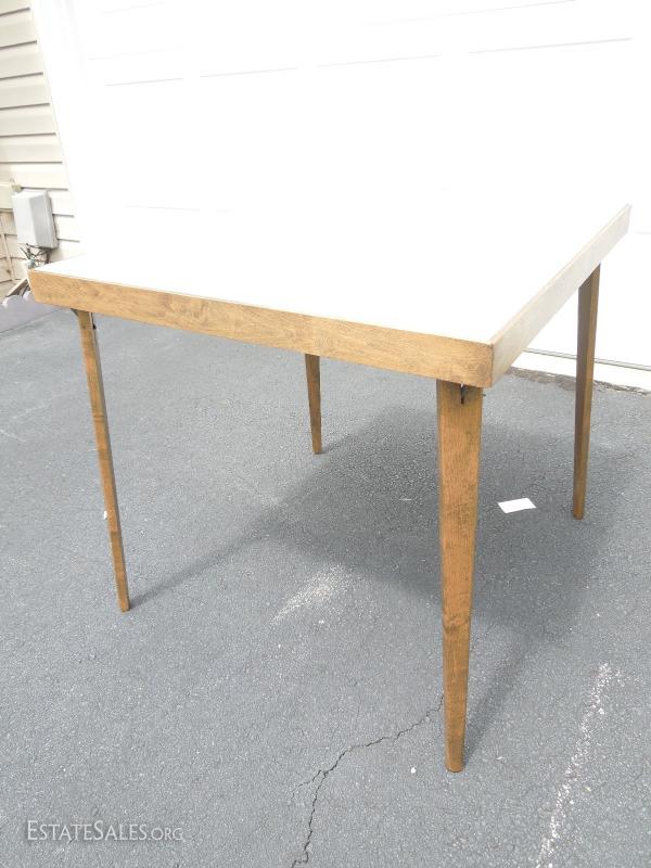 Very well constructed card table with folding legs. Padded vinyl table top. slightly soiled. No nicks or bruises. 30x30x30