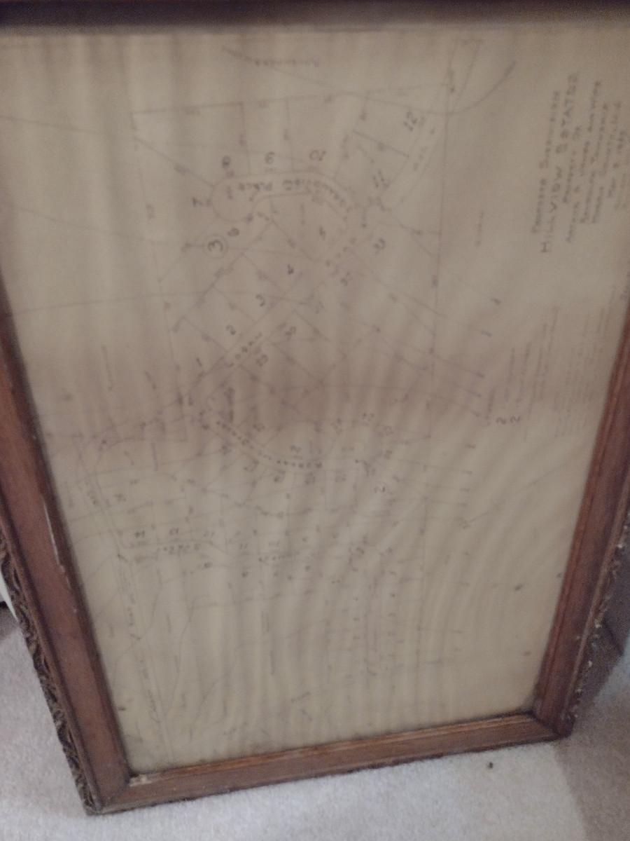 Vintage Wooden Frame with Property/Subdivision Map. Approx 20" x 31".