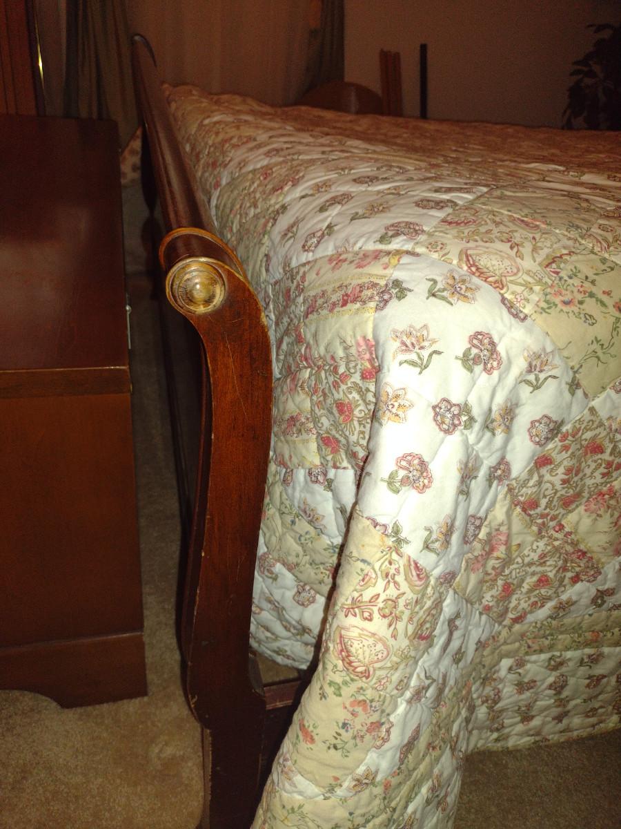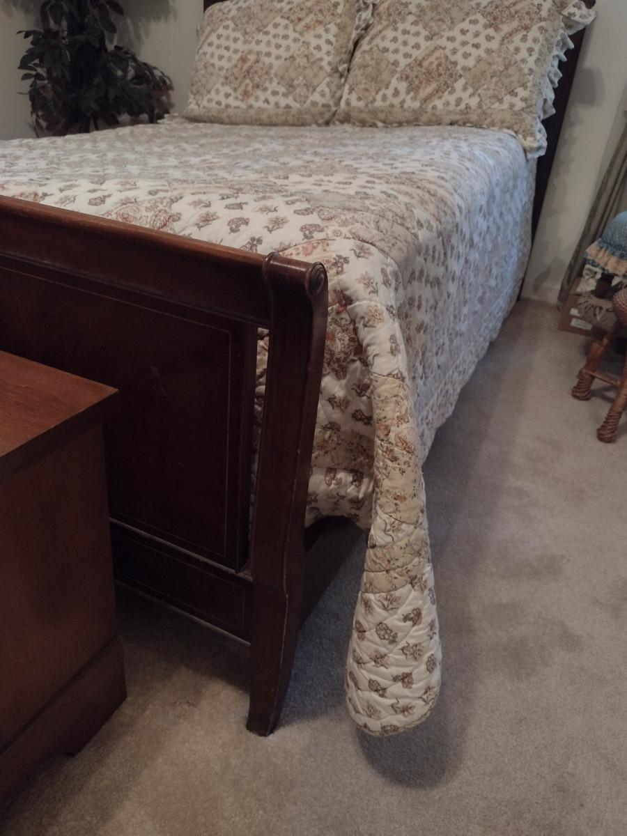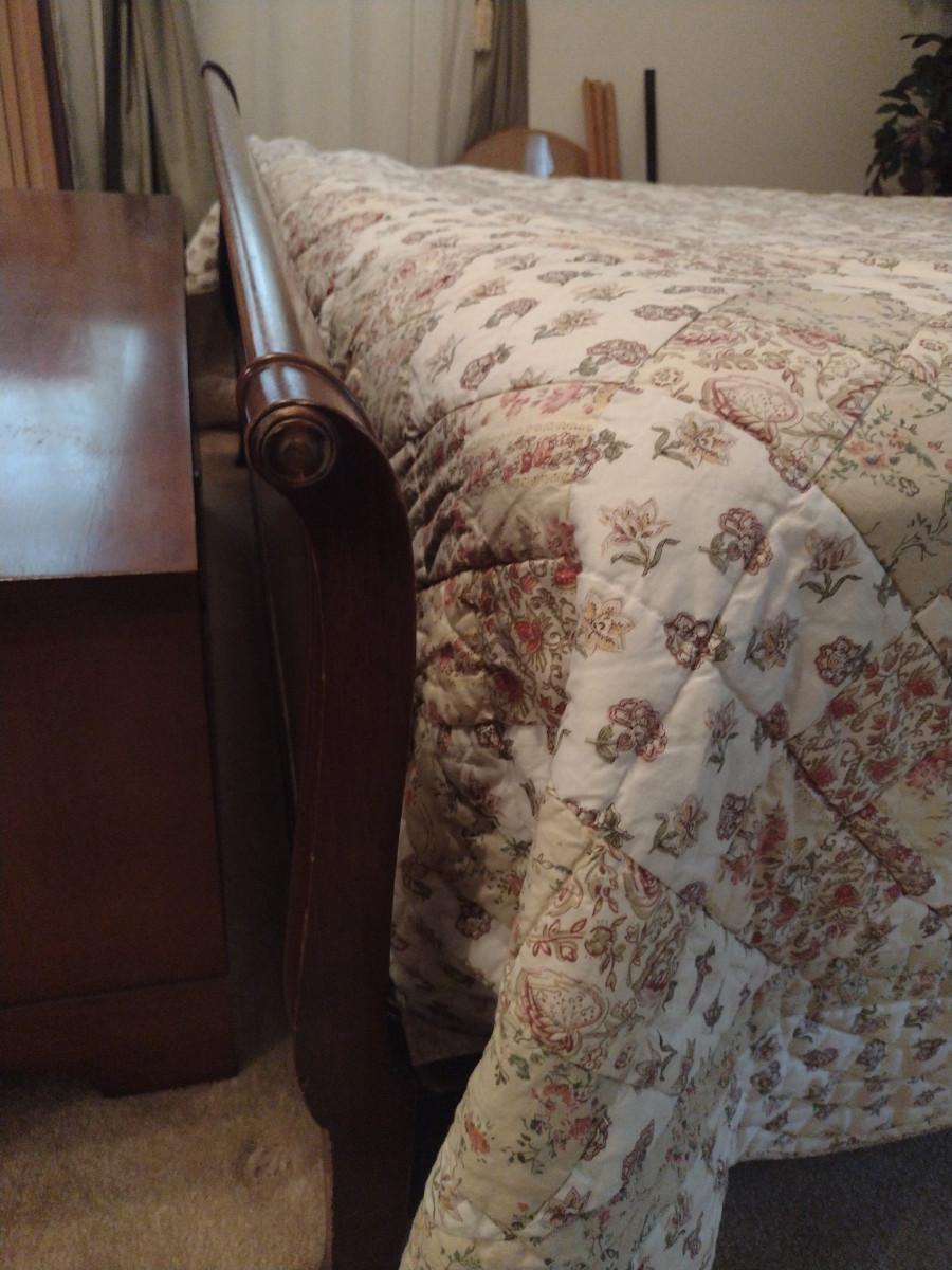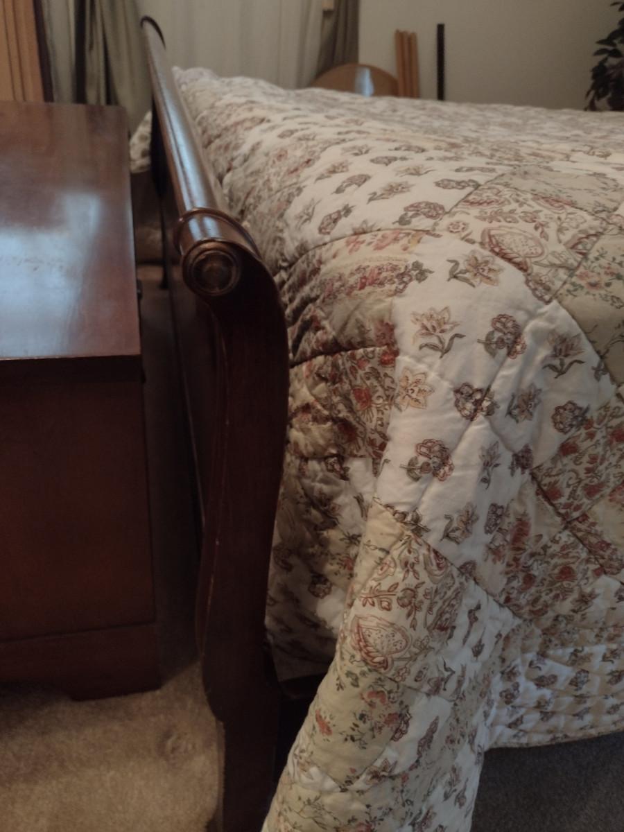 Vintage Wooden Full Size Sleigh Bed with Mattress- Approx 56" x 80" (Bedding Not Included). May need support slats.