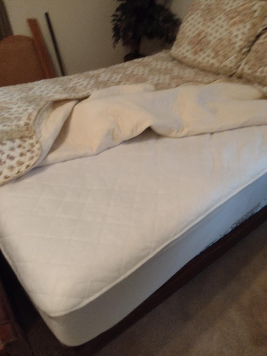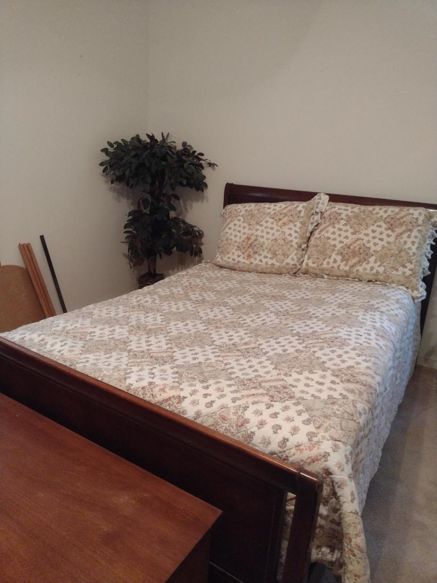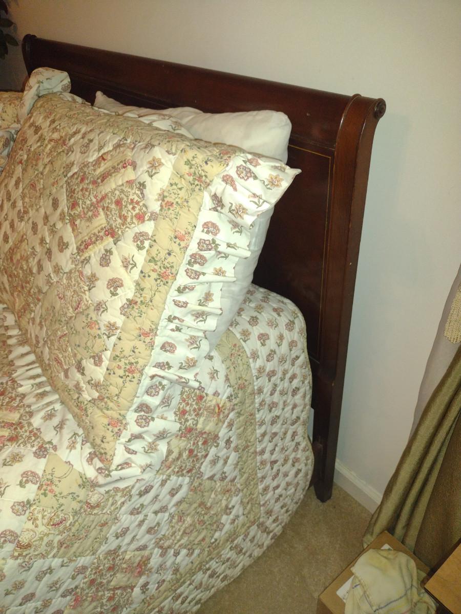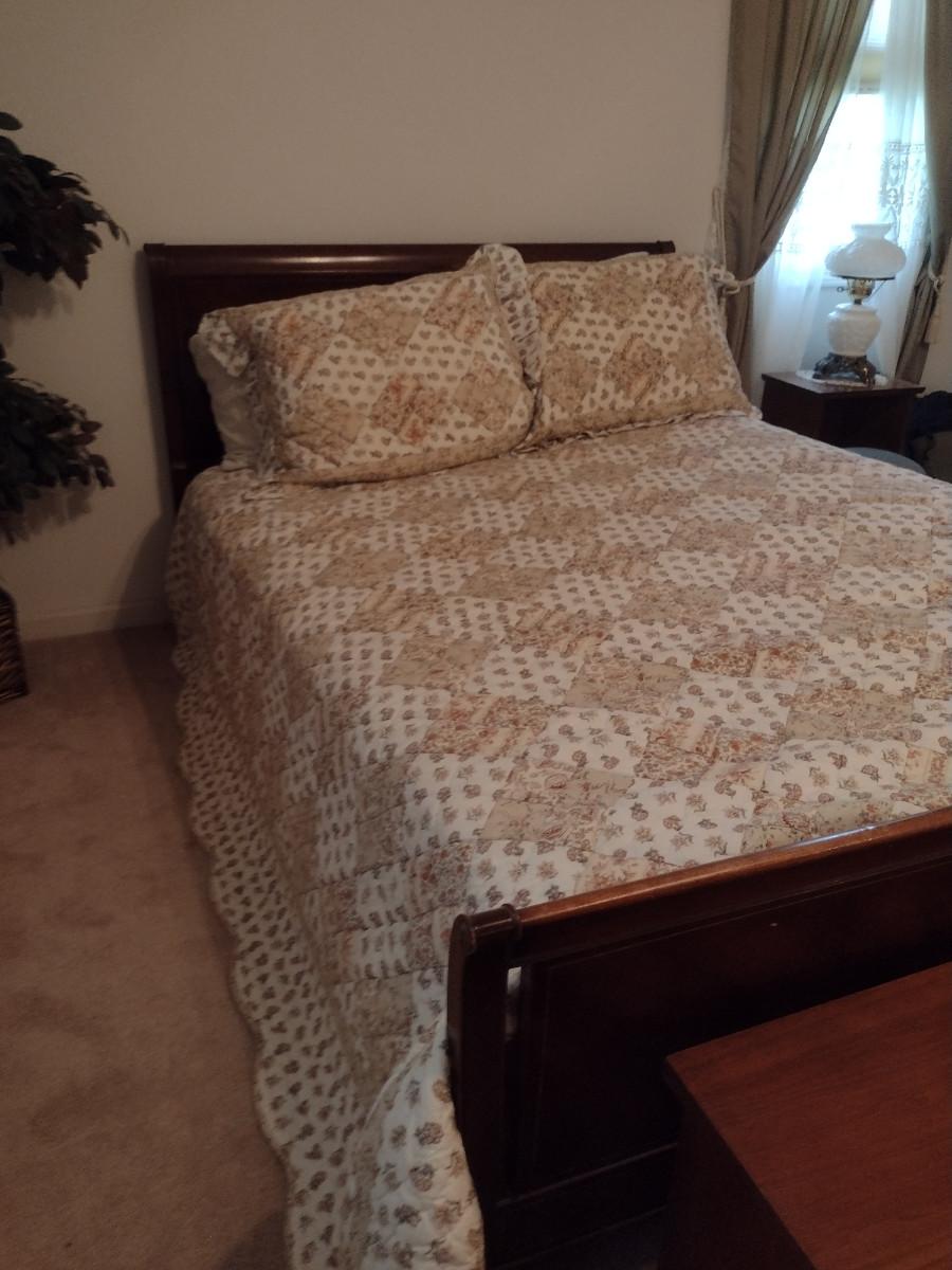 Vintage Wooden Full Size Sleigh Bed with Mattress- Approx 56" x 80" (Bedding Not Included). May need support slats.