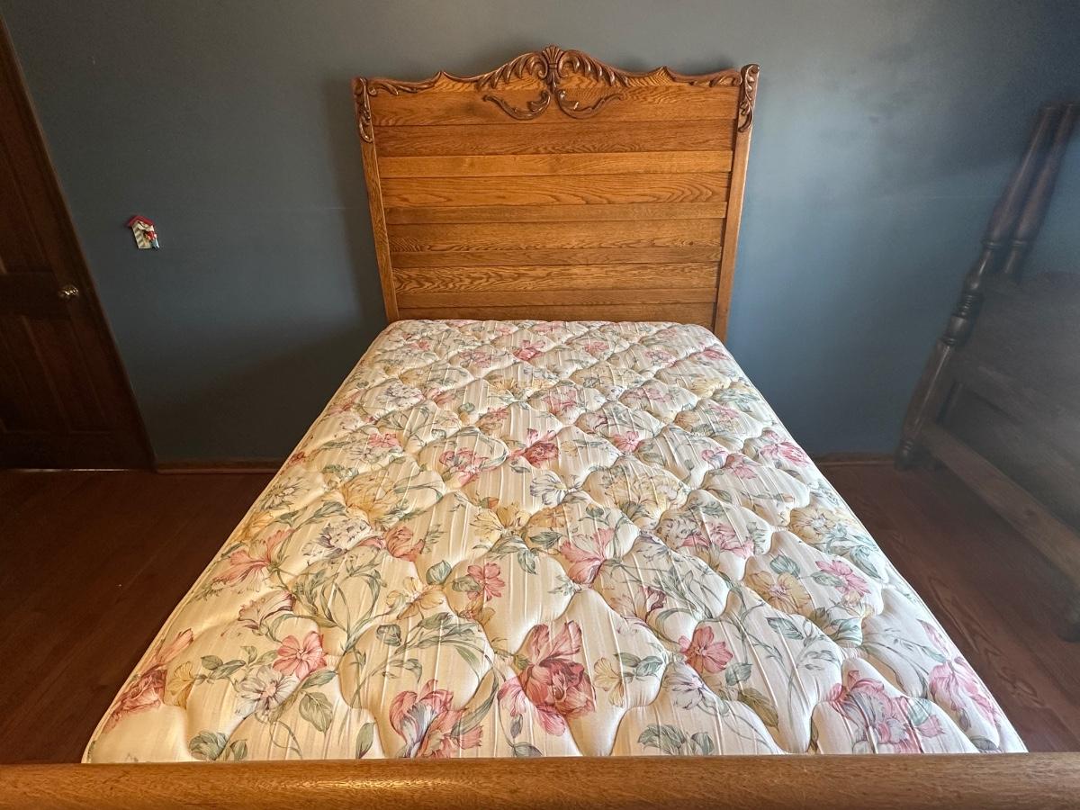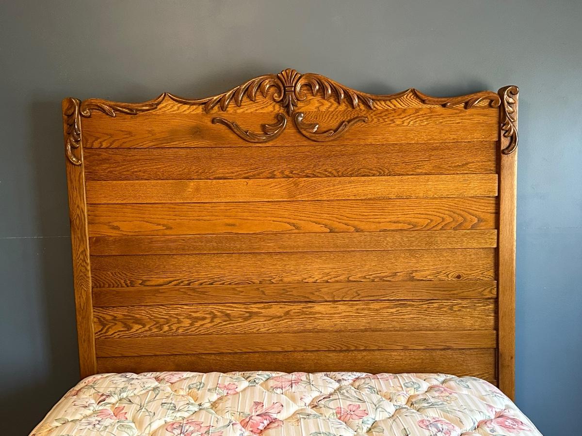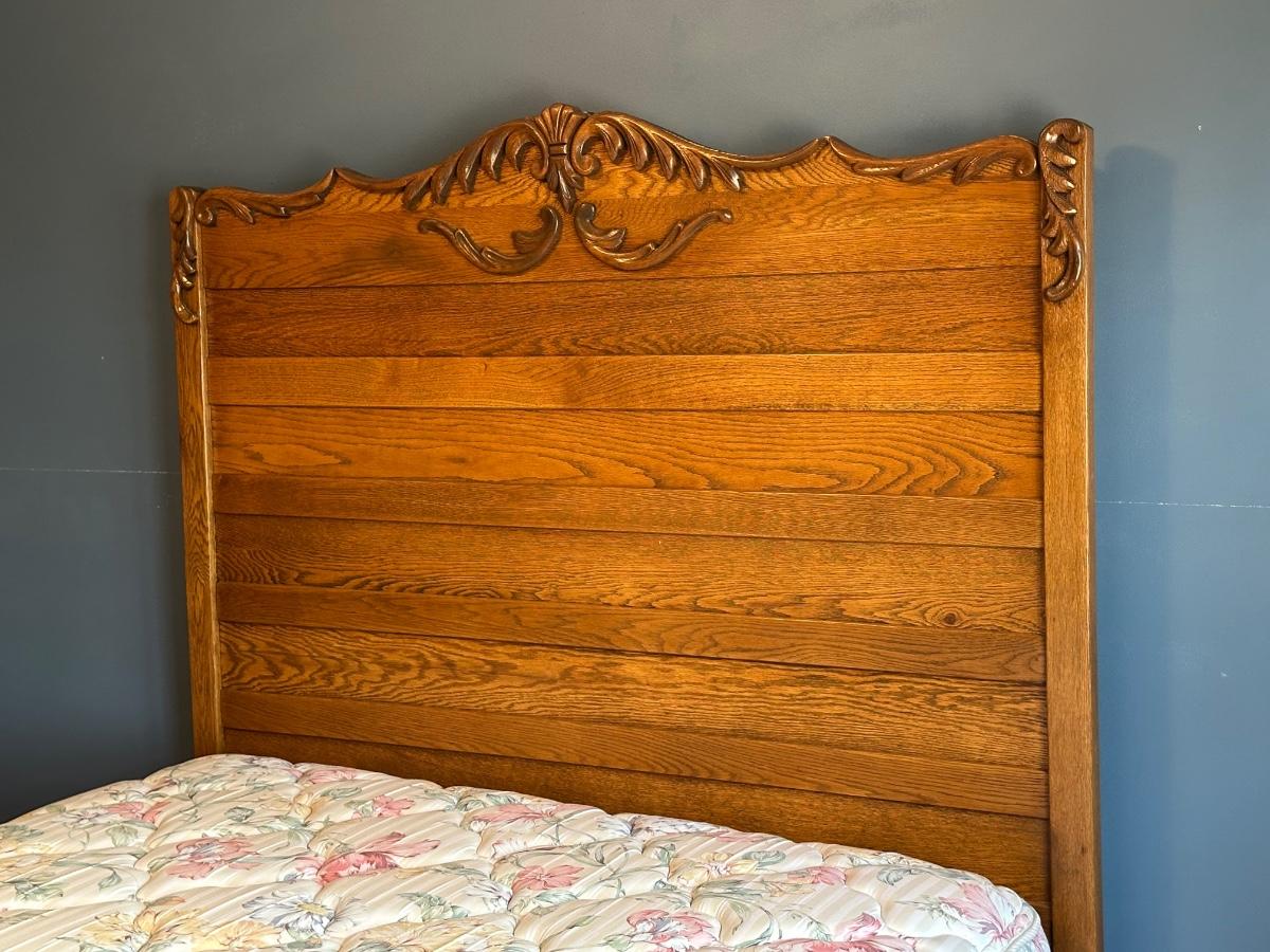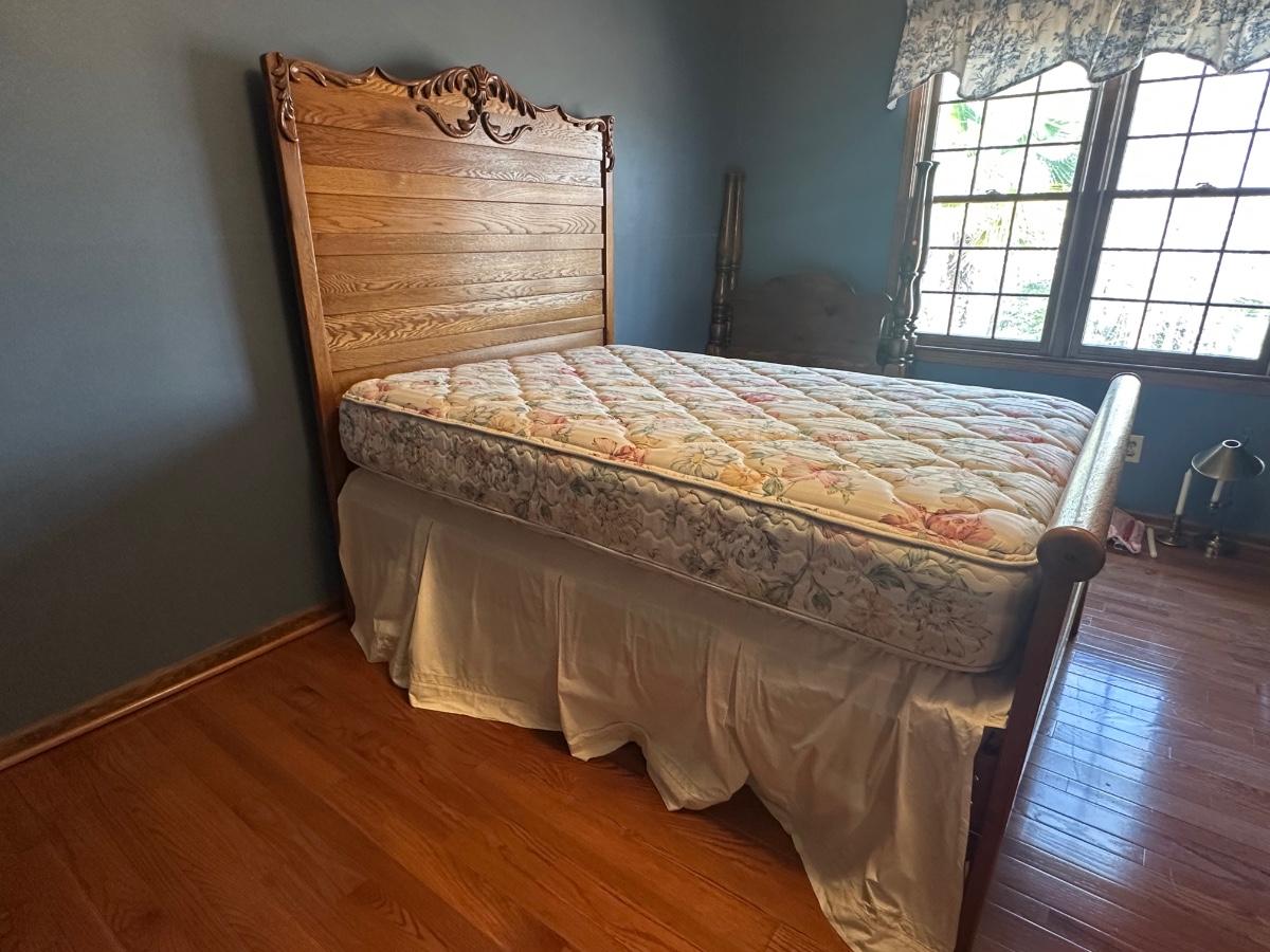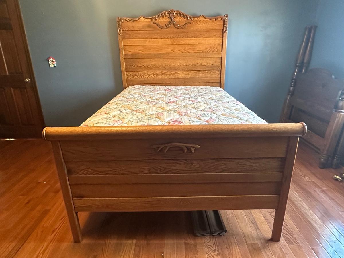 56.5” W x 78” Depth x 68” H to top of headboard / Winning bidder is welcome to the mattress and mattress box.
