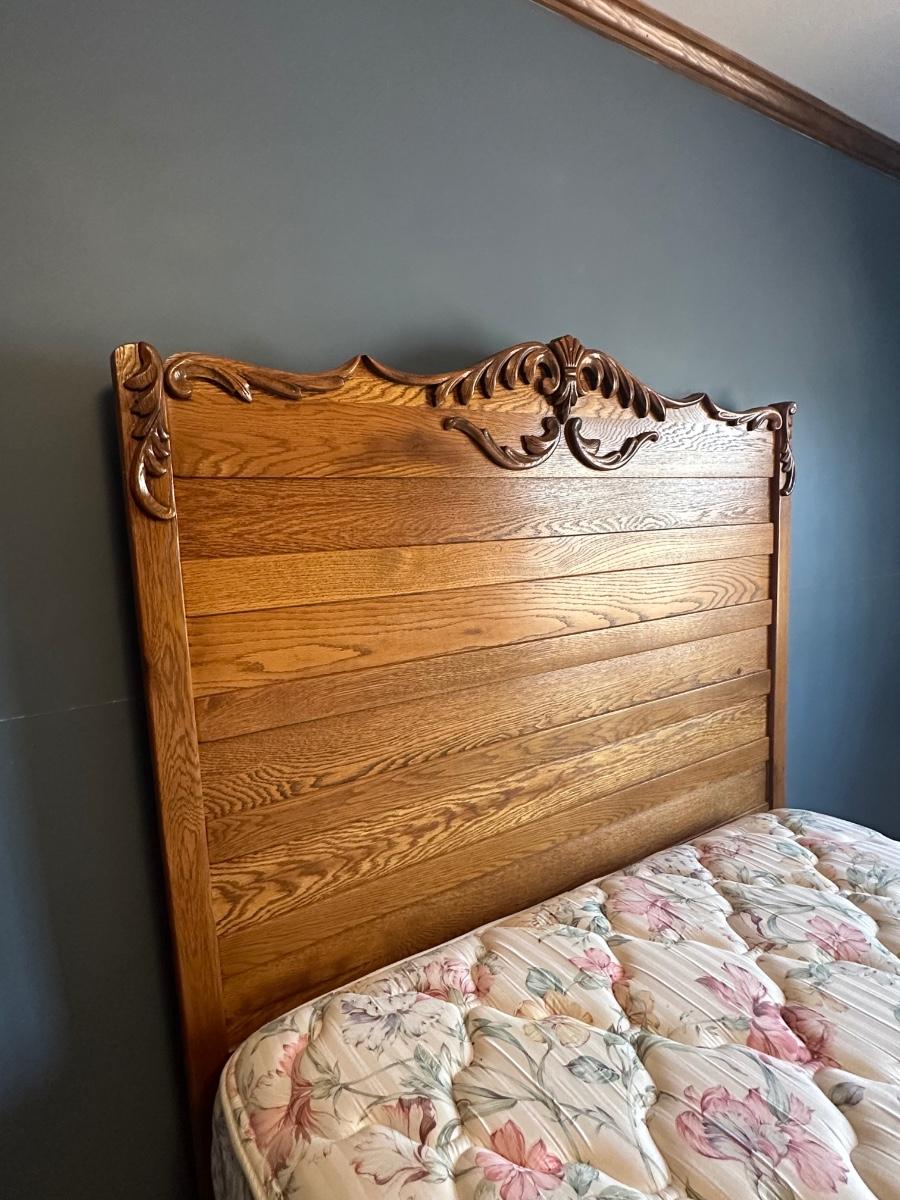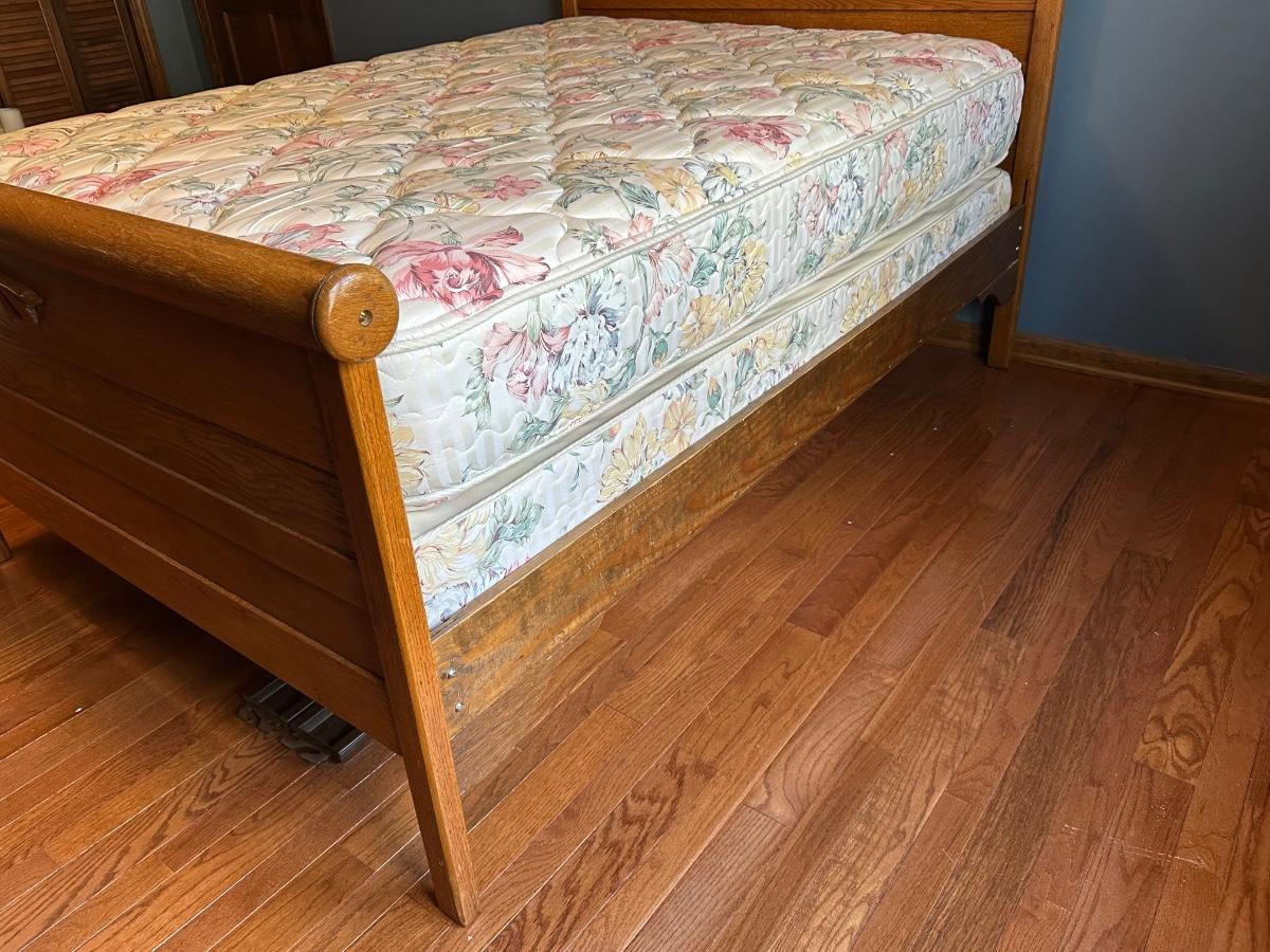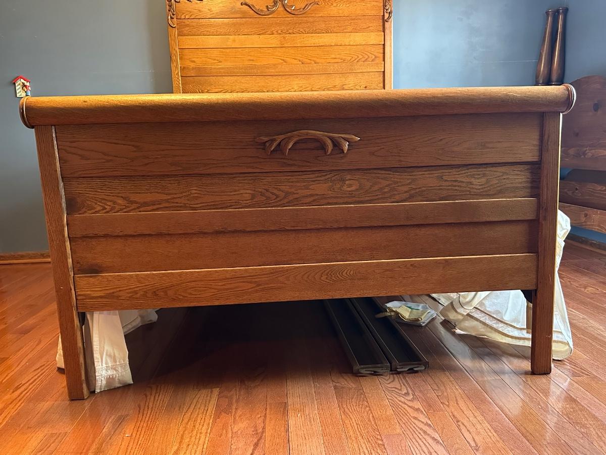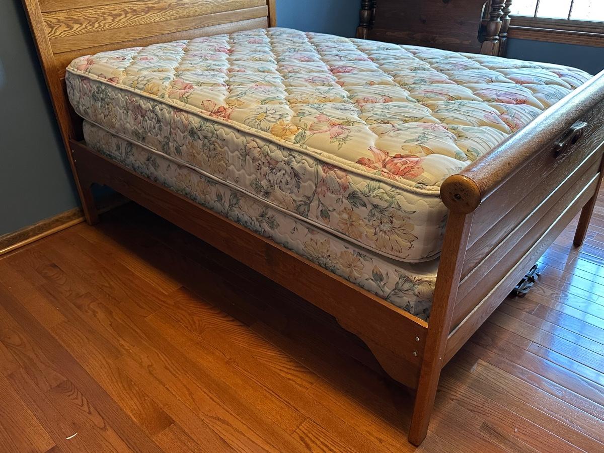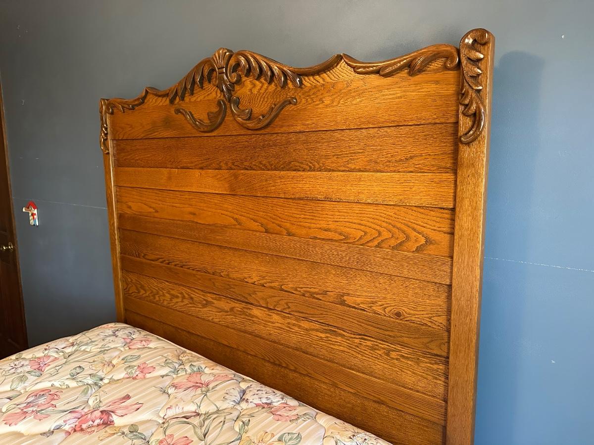 56.5” W x 78” Depth x 68” H to top of headboard / Winning bidder is welcome to the mattress and mattress box.