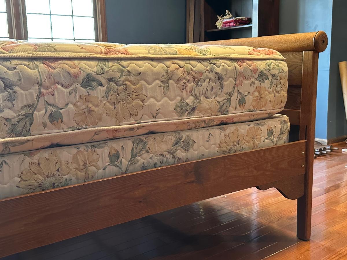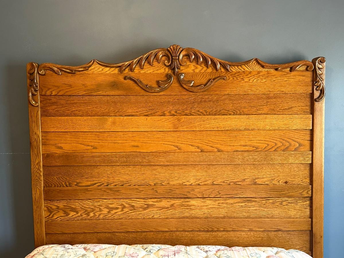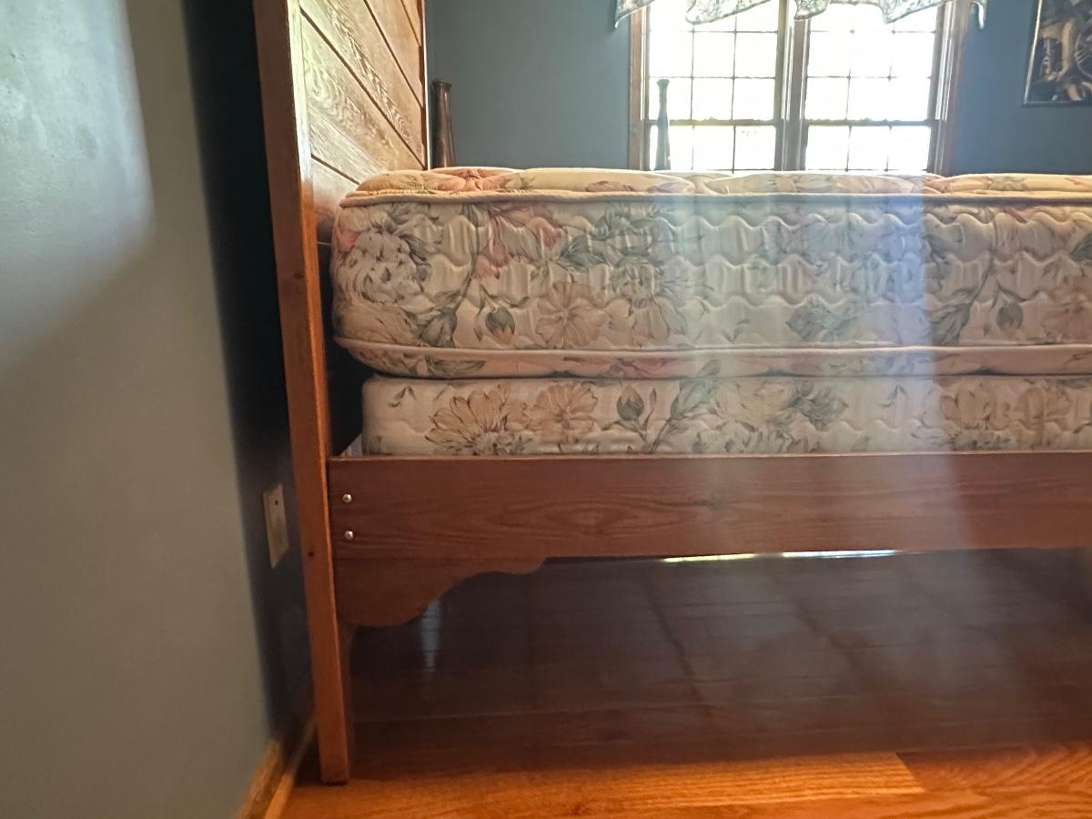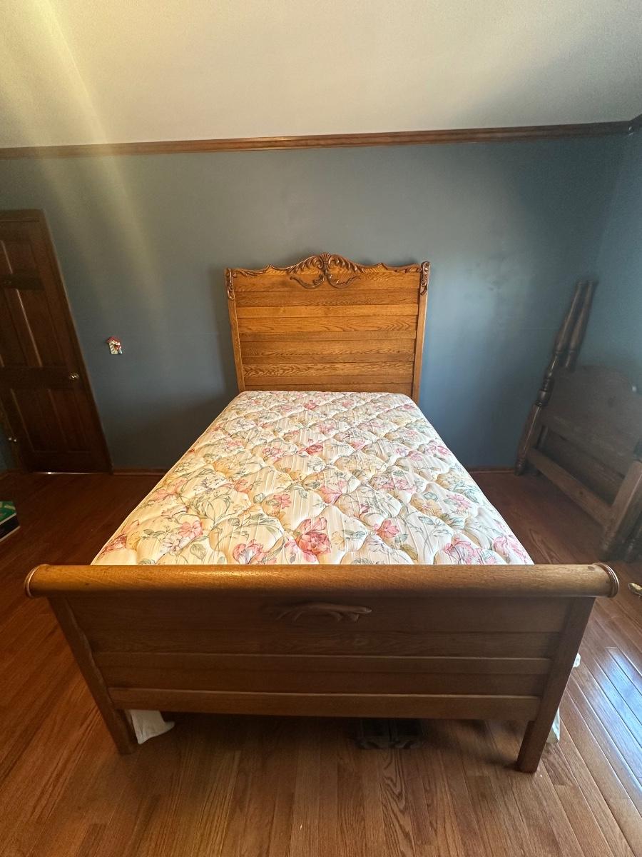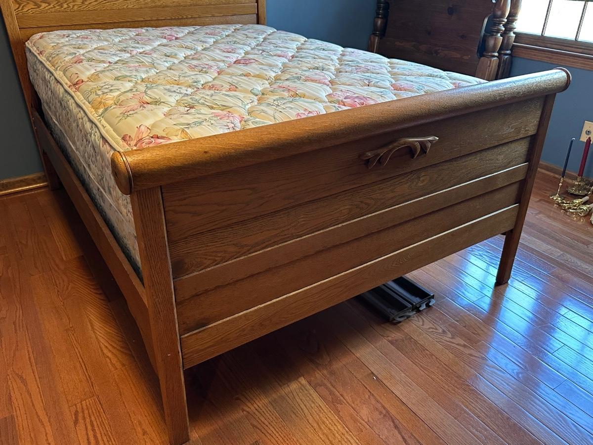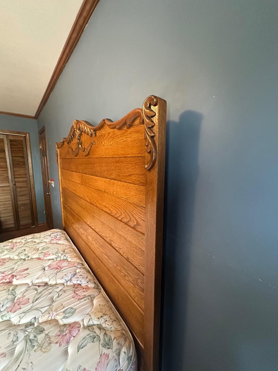 56.5” W x 78” Depth x 68” H to top of headboard / Winning bidder is welcome to the mattress and mattress box.