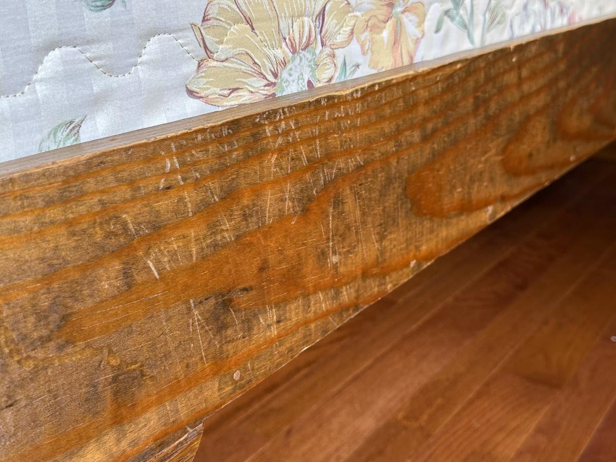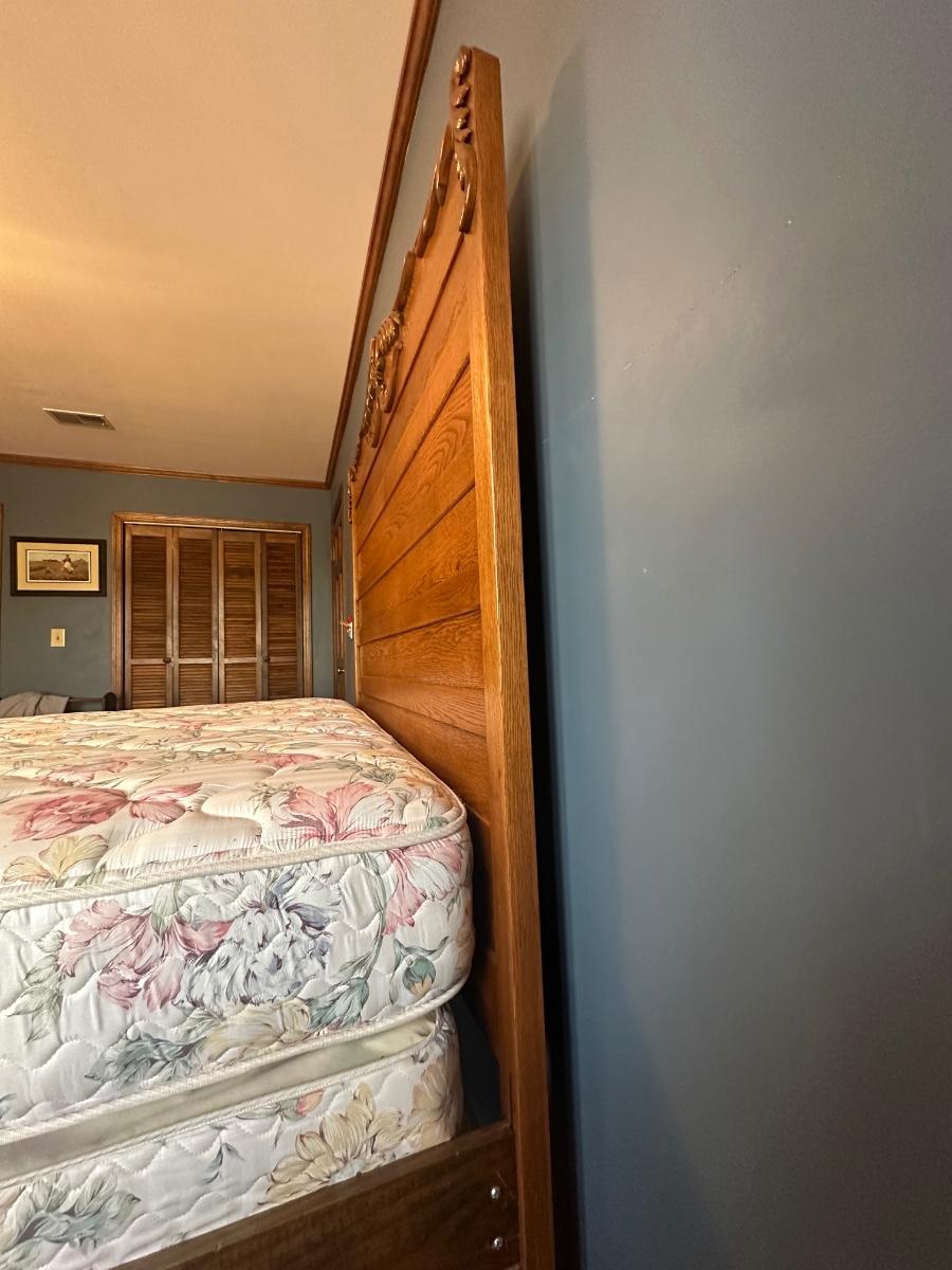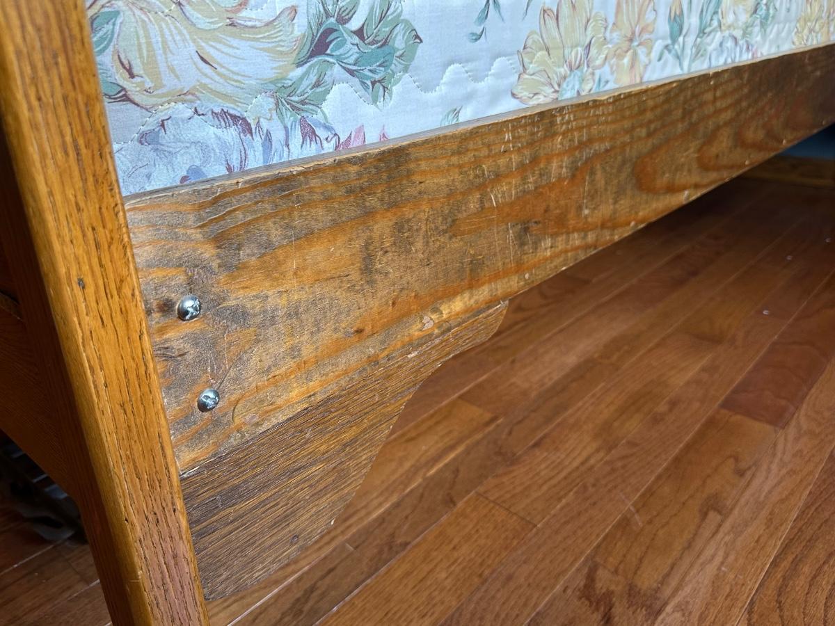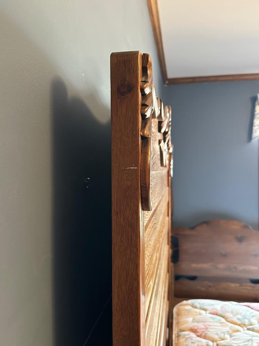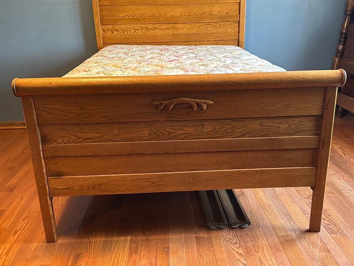 56.5” W x 78” Depth x 68” H to top of headboard / Winning bidder is welcome to the mattress and mattress box.