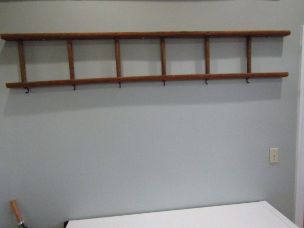 Vintage Wooden Ladder Used for Home Decor- With Coat Hooks