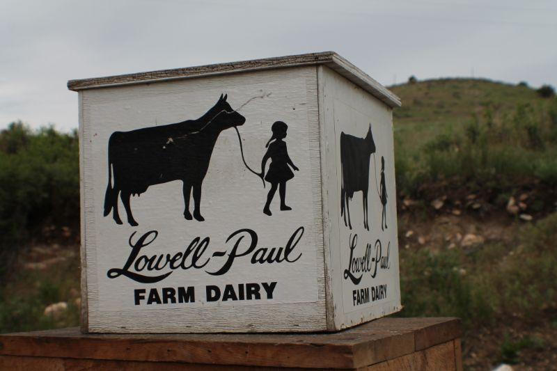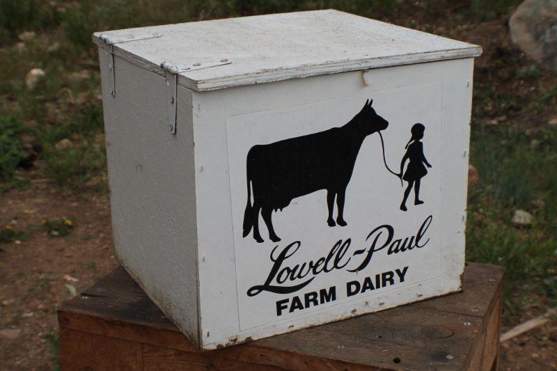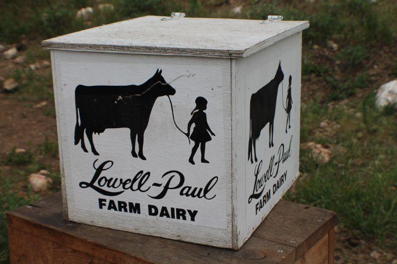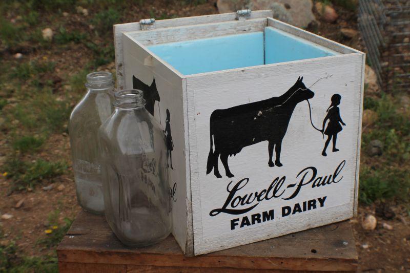 Lot #2: Vintage Wooden Lowell-Paul Farm Dairy Box w/ Milk Bottles