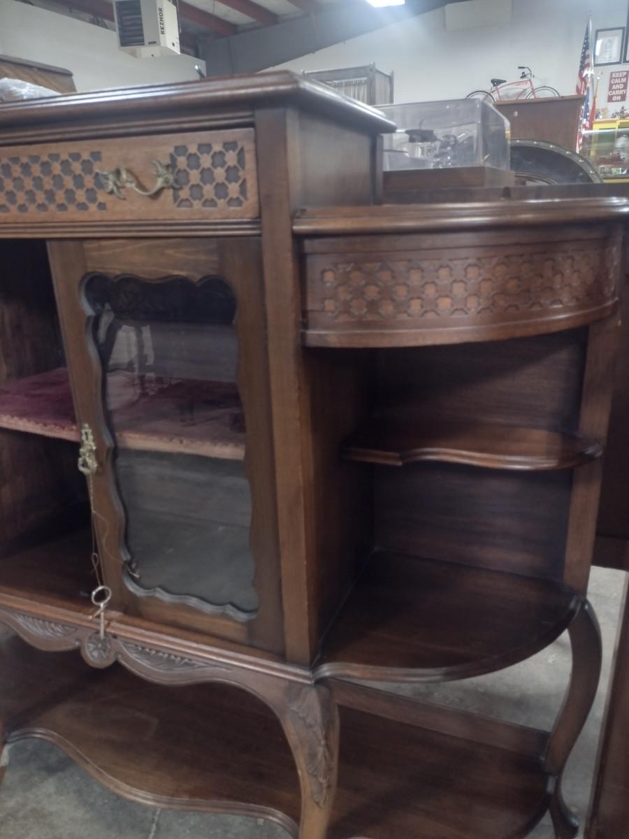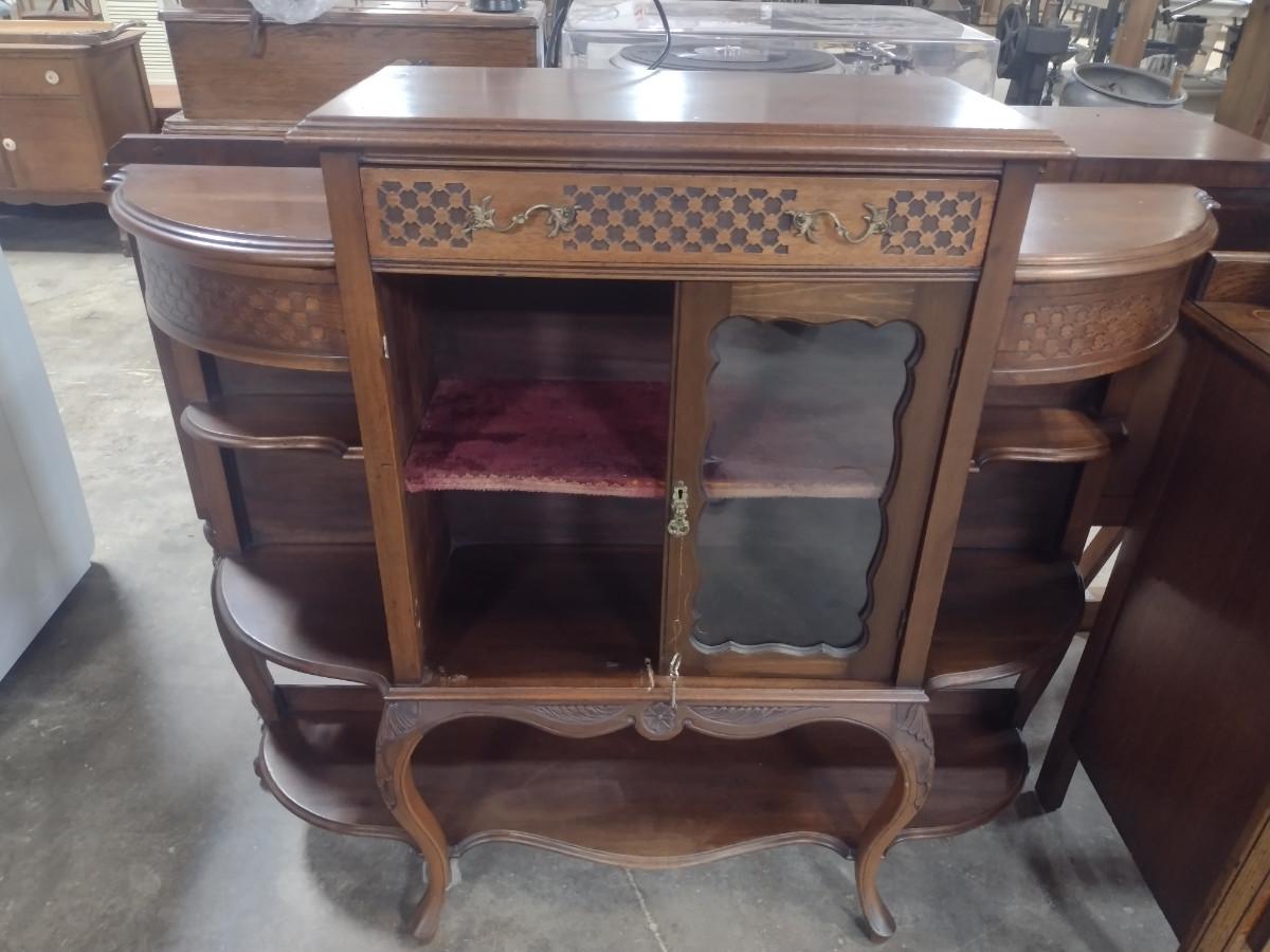 Vintage Wooden Multi-Level Display Cabinet- Missing One Door. Please see all pictures.